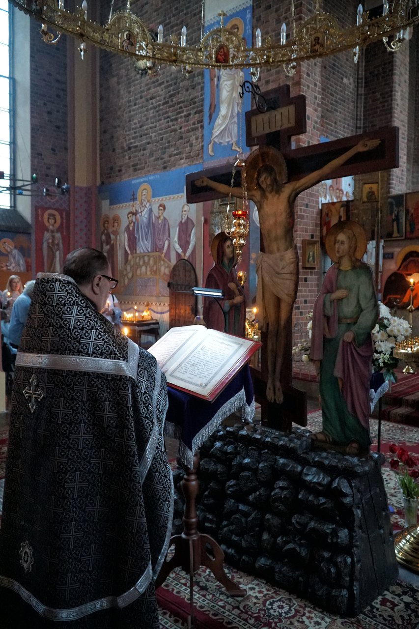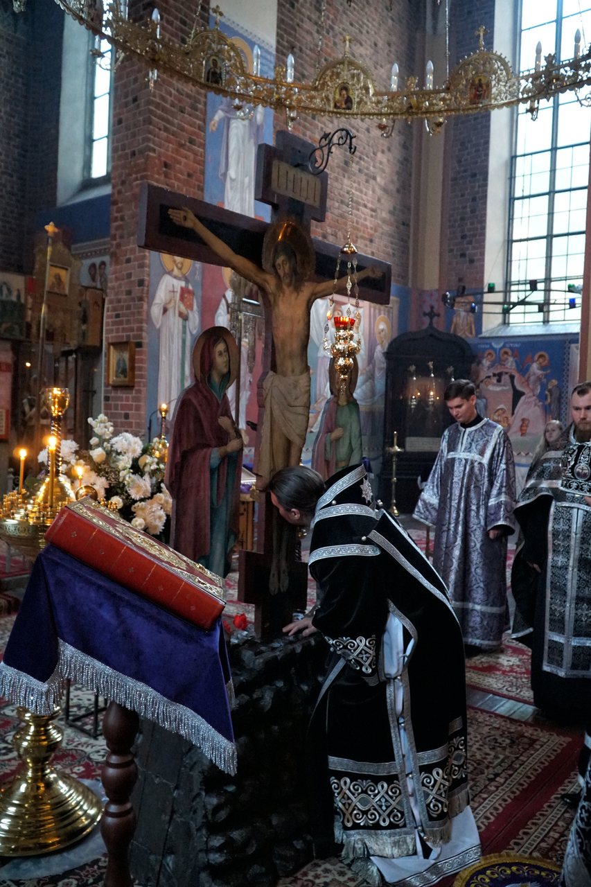 Po zakończeniu nabożeństwa licznie przybyli wierni, w ciszy i skupieniu podchodzili do stojącego na środku Cerkwi Ukrzyżowania, aby w milczeniu pokłonić się strasznemu cudowi - Bogu, który przyszedł umrzeć dla zbawienia zbuntowanych przeciwko Niemu ludzi.