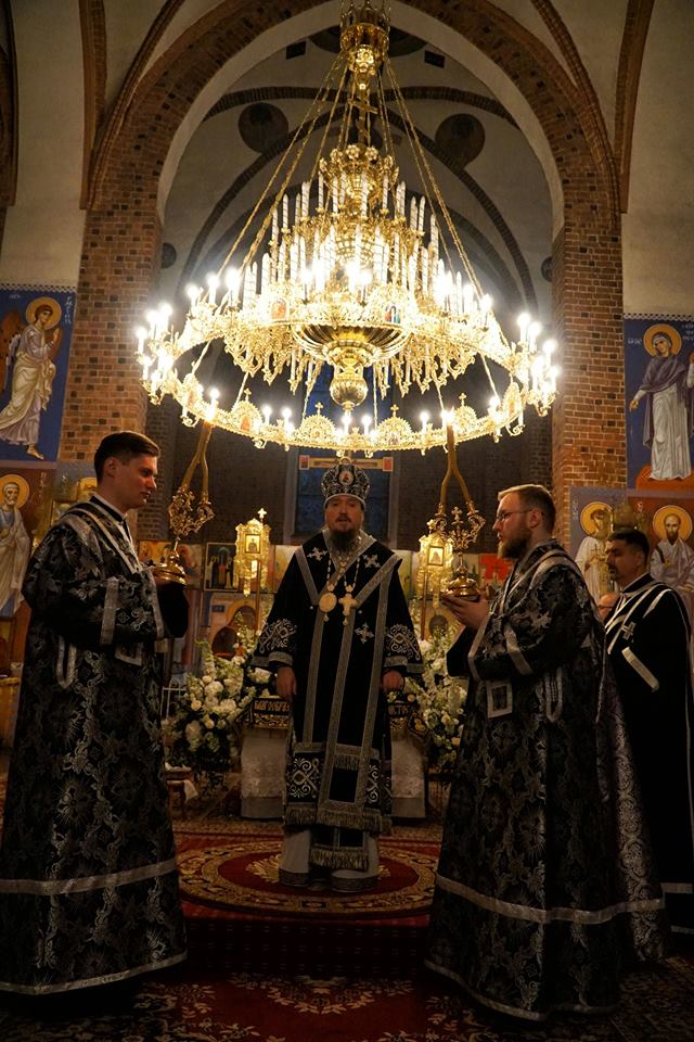 W Wielki Piątek rano we wrocławskiej katedrze sprawowane były wielkie godziny kanoniczne. Następnie o godzinie 14 sprawowana była wielka wieczernia, podczas której w uroczystej procesji na środek świątyni wyniesiona została płaszczennica (całun) – ikona z wizerunkiem Chrystusa złożonego do grobu. Po wielkiej wieczerni odprawiono małe powieczerze, a następnie o godzinie 18 sprawowana była jutrznia Wielkiej Soboty.