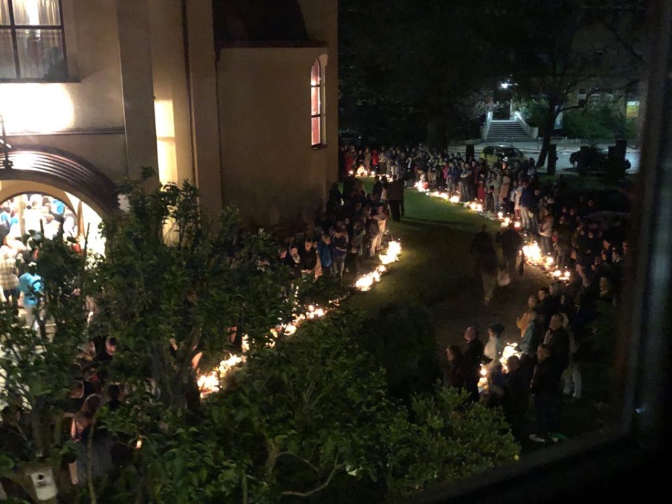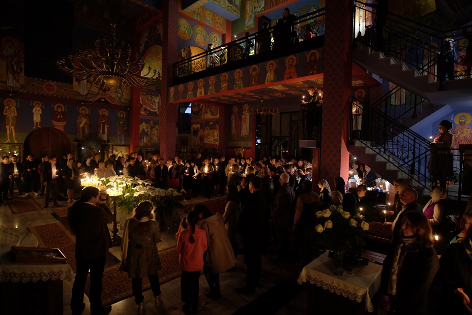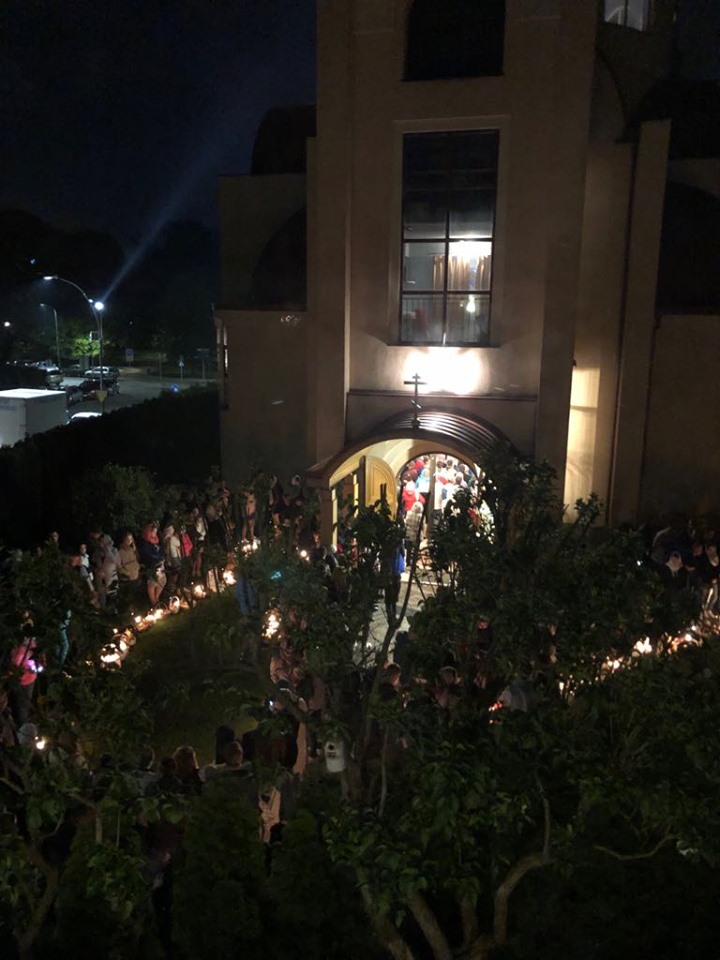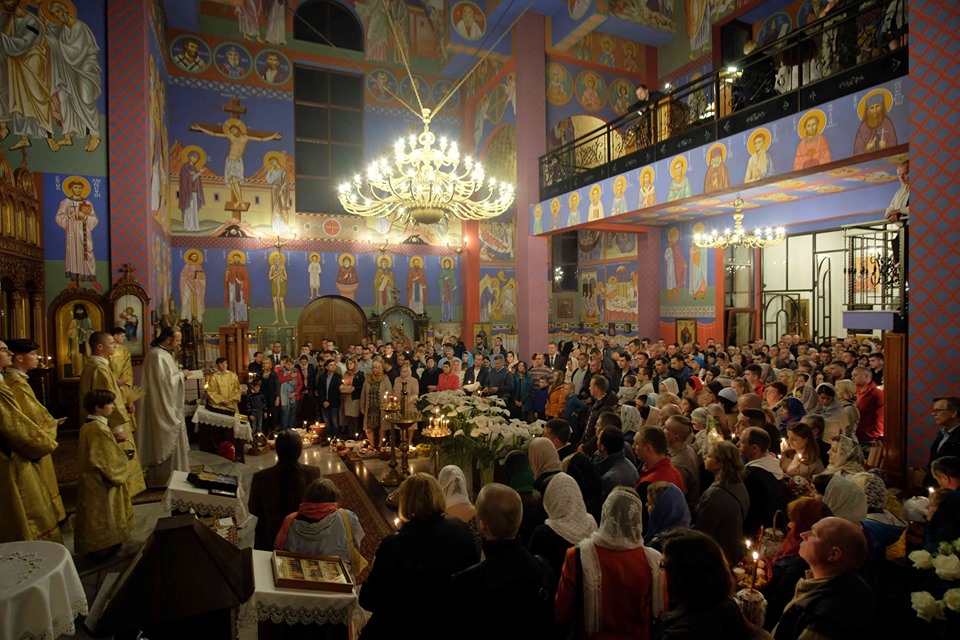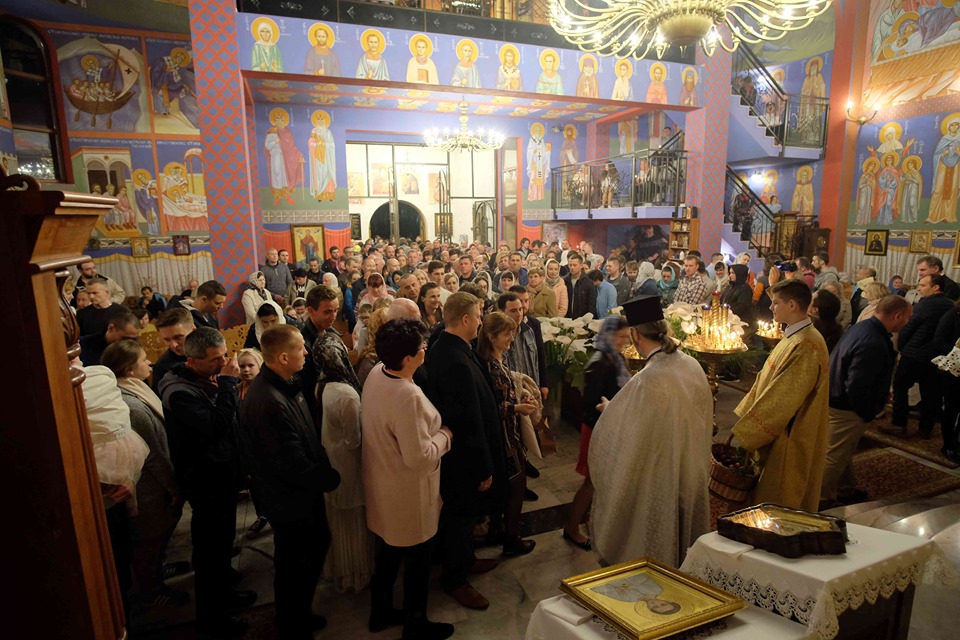 Uroczystości Paschalne rozpoczęły się o godzinie 23:30 Połunosznicą, podczas której w po brzegi wypełnionej szczecińskiej Cerkwi rozbrzmiewał kanon Wielkiej Soboty. Na chwilę przed północą Płaszczenica została wniesiona do ołtarza, po czym zgodnie z tradycją rozbrzmiała paschalna pieśń – stichira „Zmartwychwstanie Twoje Chryste Zbawicielu…”. Wszyscy zgromadzeni z zapalonymi świecami wyszli ze świątyni, aby w procesji trzykrotnie okrążyć Cerkiew. Śpiewom stichiry towarzyszyło bicie dzwonów.