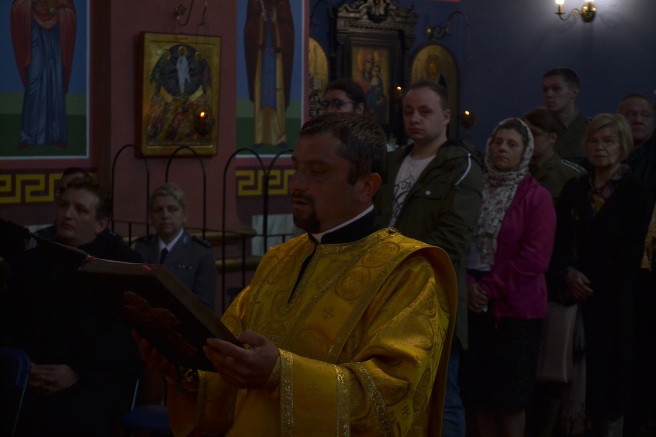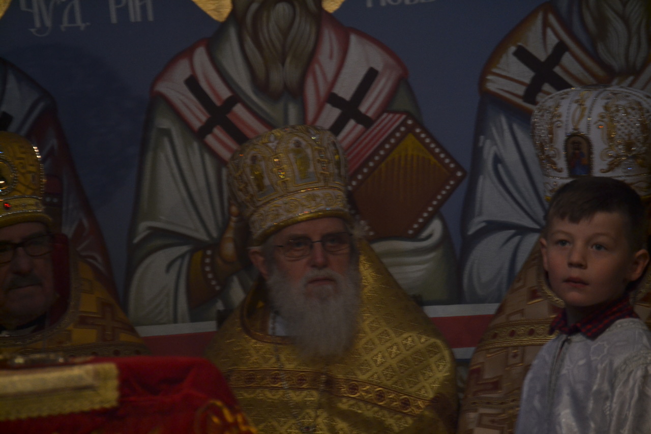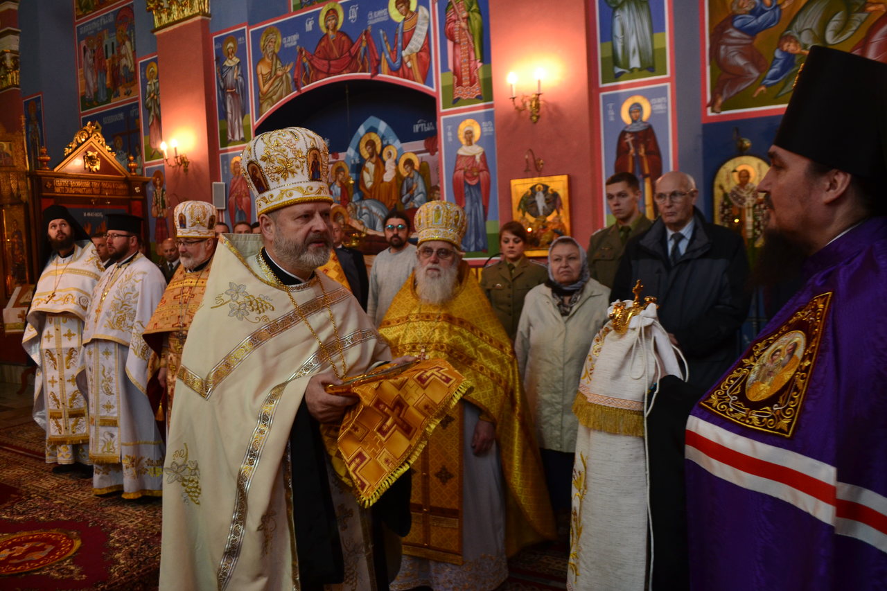 W narteksie świątyni, dzieci, wraz ze starostą parafii ppłk Edwardem Dziewońskim, powitali Arcypasterza, którego następnie proboszcz parafii ks. mitrat płk Eugeniusz Bójko, poprosił o przewodniczenie świątecznej eucharystii, dla zgromadzonych wiernych. Na świąteczną synaksę przyjęli zaproszenie dowódcy i komendanci Garnizonu wrocławskiego, WP, Policji, Straży Pożarnej i Straży Miejskiej. Obecny był także proboszcz rzymsko–katolickiej Parafii NMP na Piasku. Z AWL przybyli prawosławni podchorążowie uczelni. Licznie przybyli na święto przedstawiciele społeczności Bułgarskiej. Podczas „ Małego wejścia” arcybiskup Jerzy, dokonał przyznania godności noszenia mitry dla ks. prot. Piotra Sokołowskiego, ks. prot Grzegorza Cebulskiego - palicy i ks. Genadiuszowi Sahajdakowi - kamiławki.