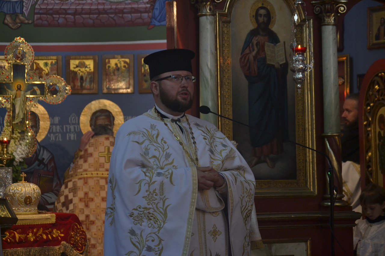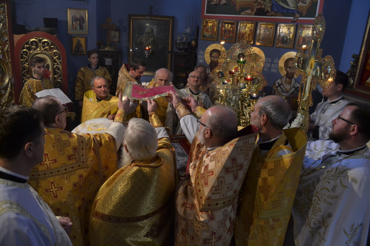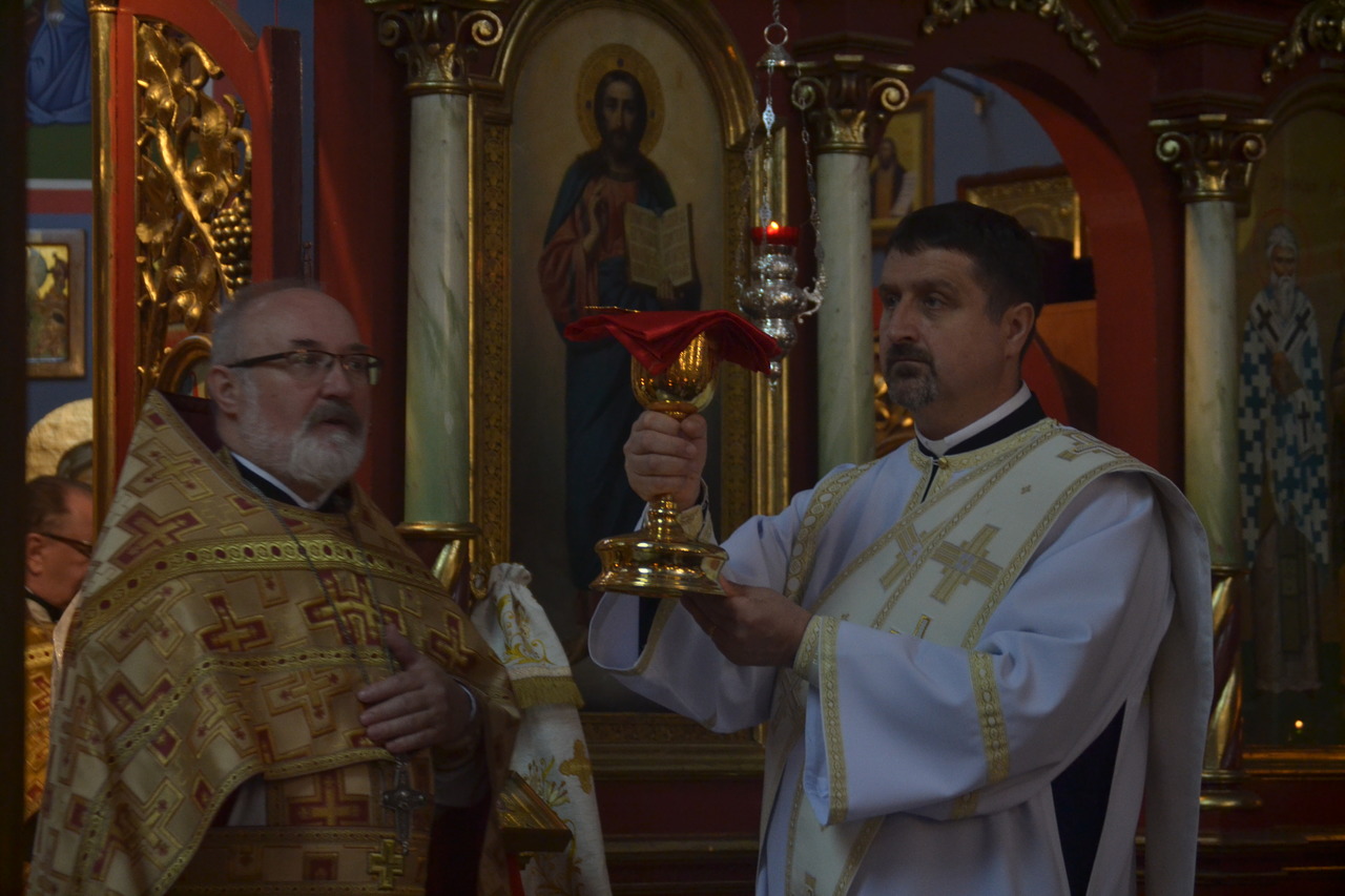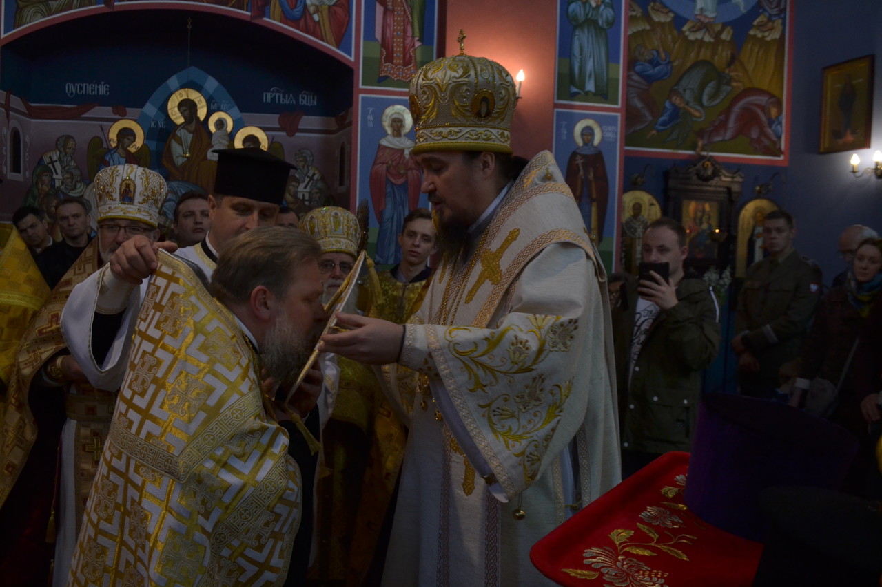 W narteksie świątyni, dzieci, wraz ze starostą parafii ppłk Edwardem Dziewońskim, powitali Arcypasterza, którego następnie proboszcz parafii ks. mitrat płk Eugeniusz Bójko, poprosił o przewodniczenie świątecznej eucharystii, dla zgromadzonych wiernych. Na świąteczną synaksę przyjęli zaproszenie dowódcy i komendanci Garnizonu wrocławskiego, WP, Policji, Straży Pożarnej i Straży Miejskiej. Obecny był także proboszcz rzymsko–katolickiej Parafii NMP na Piasku. Z AWL przybyli prawosławni podchorążowie uczelni. Licznie przybyli na święto przedstawiciele społeczności Bułgarskiej. Podczas „ Małego wejścia” arcybiskup Jerzy, dokonał przyznania godności noszenia mitry dla ks. prot. Piotra Sokołowskiego, ks. prot Grzegorza Cebulskiego - palicy i ks. Genadiuszowi Sahajdakowi - kamiławki.