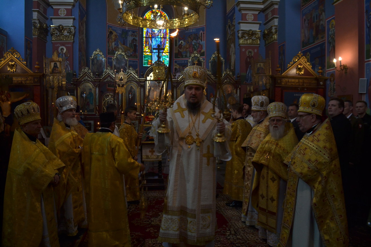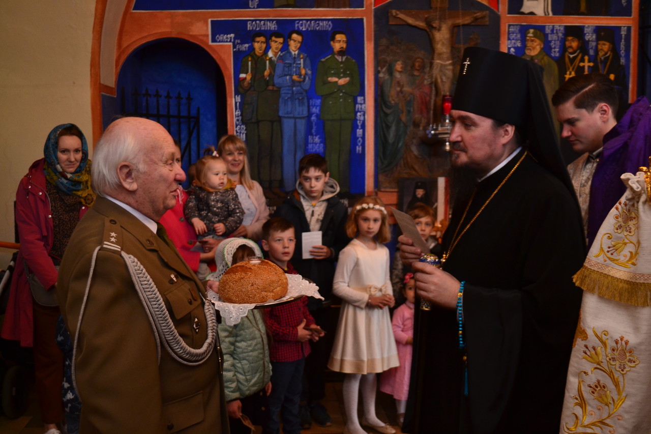 Boska Liturgia zakończyła się śpiewem stichir Paschy wraz wygłoszeniem życzeń „Wielu Lat” dla duchowieństwa, wojska i obecnych wiernych. Arcybiskup Jerzy po udzieleniu błogosławieństwa zgromadzonym, zwrócił się ze słowem w którym przedstawił istotę i powód pozostawienia języka słowiańskiego w liturgicznym życiu poszczególnych lokalnych Cerkwi, także w Polsce. Według słów Władyki, modlitwa w tym języku towarzyszy od dziecka aż po kres życia; dzisiejsza praca translatorska zawsze będzie niedoskonała, choć oczywiście wskazana i nieodzowna. Na świętość i leksykalną wyjątkowość tego języka, jak i „powołania” go do życia, miała wpływ duchowa formacja jego Twórców. Pokora, modlitwa, kontemplacja, roztropność, wiedza teologiczna i filozoficzna - rozłożona w obydwu Bożych sługach, równomiernie według potrzeb apostolstwa, wytoczyła potoki źródła z którego niewyczerpanie do dziś korzystamy.