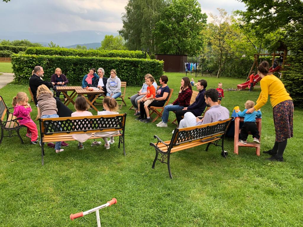 W piątkowy wieczór, po pierwszym wspólnym posiłku, pedagog pani Beata Poleszczuk wyjaśniła jakie trudności pojawiają się w przypadku nieprawidłowej komunikacji, jak możemy temu zaradzić i co robić, aby relacje rodzinne były przejrzyste i przepełnione szacunkiem, miłością i zrozumieniem. Paralelnie dzieci, pod opieką Matuszek Elżbiety Bójko i Barbary Kiślak, spędziły wieczór na grach i zabawach na świeżym powietrzu.