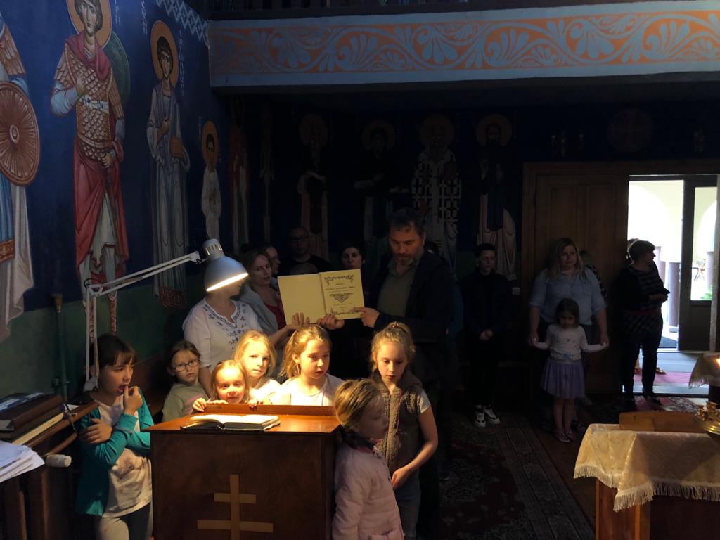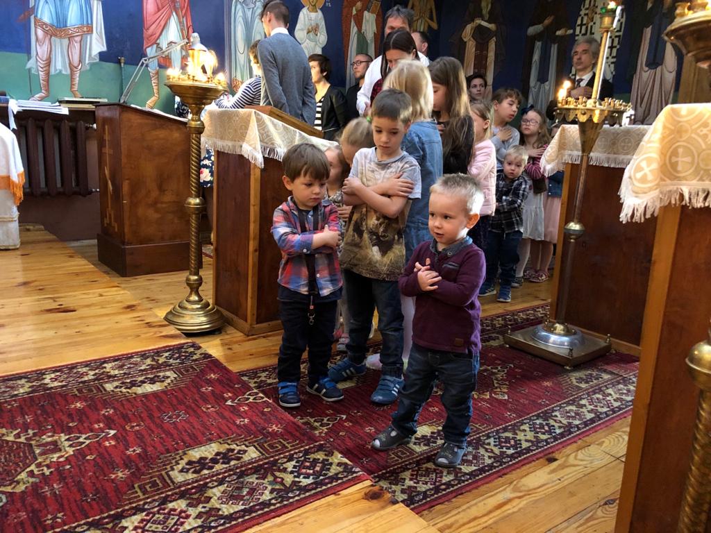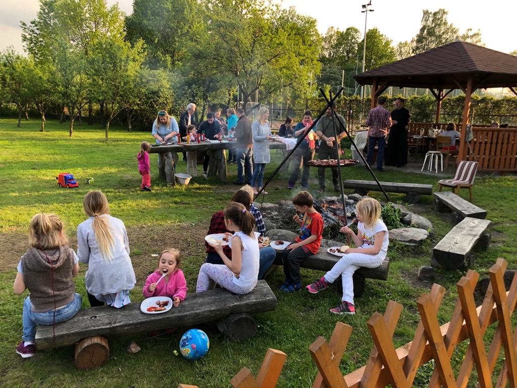 Podczas całego pobytu dzieci wraz z rodzicami aktywnie uczestniczyli w nabożeństwach poprzez śpiew i czytanie. Po Wieczerni, w ramach kolacji oraz zacieśnianiu więzi rodzinnych i koleżeńskich ze śpiewem na ustach, spędziliśmy wieczór przy ognisku na wspomnieniach oraz poznawaniu kultury i tradycji przybyłych rodzin. Niedzielną Św. Liturgię upiększył śpiew dzieci i dorosłych. Po śniadaniu dzieci, łapiąc promienie słoneczne wzięły o. Eugeniusza w ogień pytań. Na zagadnienia z niemalże każdej dziedziny, baciuszka starał się dać satysfakcjonującą młodych ludzi odpowiedź (poddał się jedynie przy pytaniu o dinozaurach).