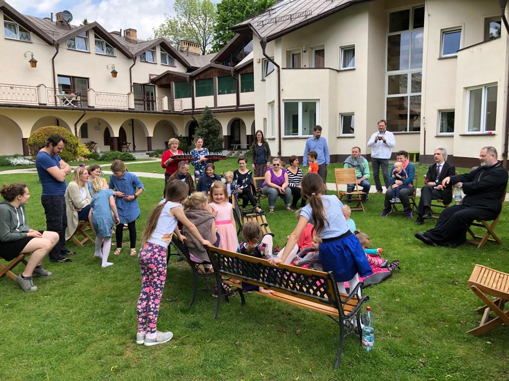 Za aktywne uczestnictwo w dyskusji i z okazji Dnia Matki, dzieci dostały od Matuszki Elżbiety deser lodowy. W podziękowaniu Mamom, dzieci odśpiewały gromkie Mnohaja lita oraz sto lat. Przeznaczając każdą wolną chwilę na zabawę, najmłodsi również przed obiadem skorzystali z atrakcji oferowanych przez Dom św. Stefana, dając tym samym czas rodzicom na rozmowy z duchownym. Podsumowując i kończąc III familijne spotkanie, ustaliliśmy termin następnego, IV już spotkania, które odbędzie się w dniach 13-15.09.2019r. tradycyjnie w Cieplicach. Serdecznie zapraszamy!