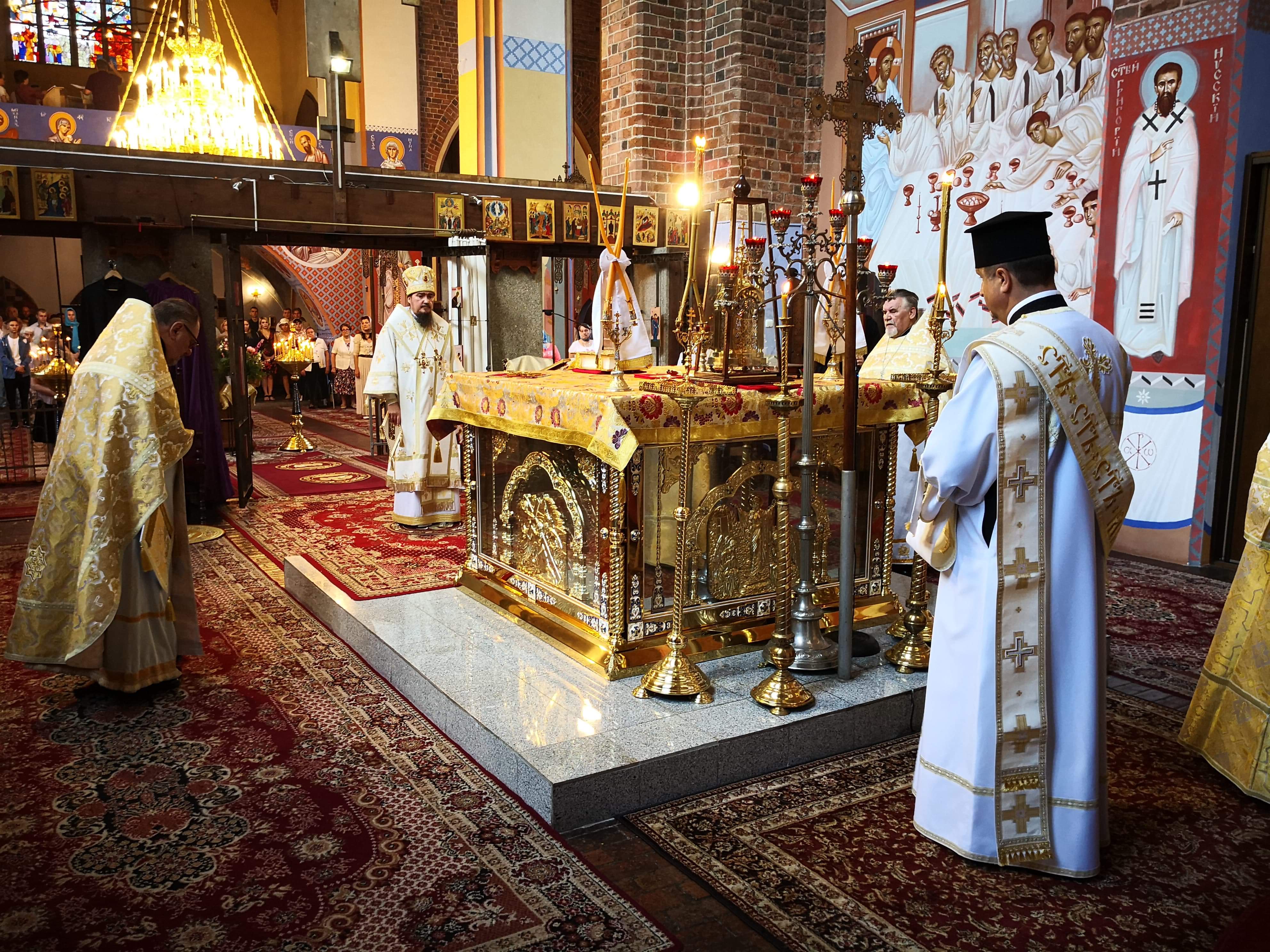 Nabożeństwom V Niedzieli po Pięćdziesiątnicy (20-21 lipca br) we wrocławskiej Katedrze Narodzenia Najświętszej Bogurodzicy – Całonocnemu Czuwaniu i Boskiej Liturgii – przewodniczył ordynariusz diecezji wrocławsko-szczecińskiej arcybiskup Jerzy w asyście katedralnego duchowieństwa. W niedzielę, po odczytaniu fragmentu ewangelii wg św. Mateusza (8, 28-9, 1) o uzdrowieniu dwóch opętanych w okolicy miasta Gadaryny, abp Jerzy zwrócił się do wiernych z okolicznościową homilią. Odniósł się w niej do treści przeczytanej ewangelii, do różnic w synoptycznych ewangeliach w tym opisie, zwracając uwagę przede wszystkim na realną obecność w życiu człowieka nieczystych sił. W ślad za św. Janem Chryzostomem, podał powód, dla którego Jezus Chrystus wysłuchał prośby demonów i pozwolił im wejść w stado świń. Stało się tak z trzech przyczyn – jak powiedział. Po pierwsze po to, aby pokazać, jak niezwykle niszczycielską jest siła demonów, skoro doprowadziła do zagłady ogromnego stada świń. Po drugie, bez przyzwolenia Bożego, demon nie może się zbliżyć nawet do stada świń, a co dopiero do człowieka, a po trzecie, jeśli demony doprowadziły do zagłady takiej ilości zwierząt, to co mogłyby uczynić z człowiekiem, jeśliby nie działanie opatrzności Bożej. Władyka przybliżył wiernym również inne aspekty „demonologii” w oparciu o naukę św. Ojców naszej Cerkwi. Zwrócił także uwagę na niebezpieczeństwo wynikające z oglądania przez dzieci i młodzież niektórych filmów i bajek z pogranicza okultyzmu i magii, w których prezentowane są człekokształtne i zniekształcone postaci wymyślonych bohaterów. Większość wiernych obecnych w Katedrze przystąpiła tradycyjnie do eucharystycznego kielicha Ciała i Krwi Jezusa Chrystusa.