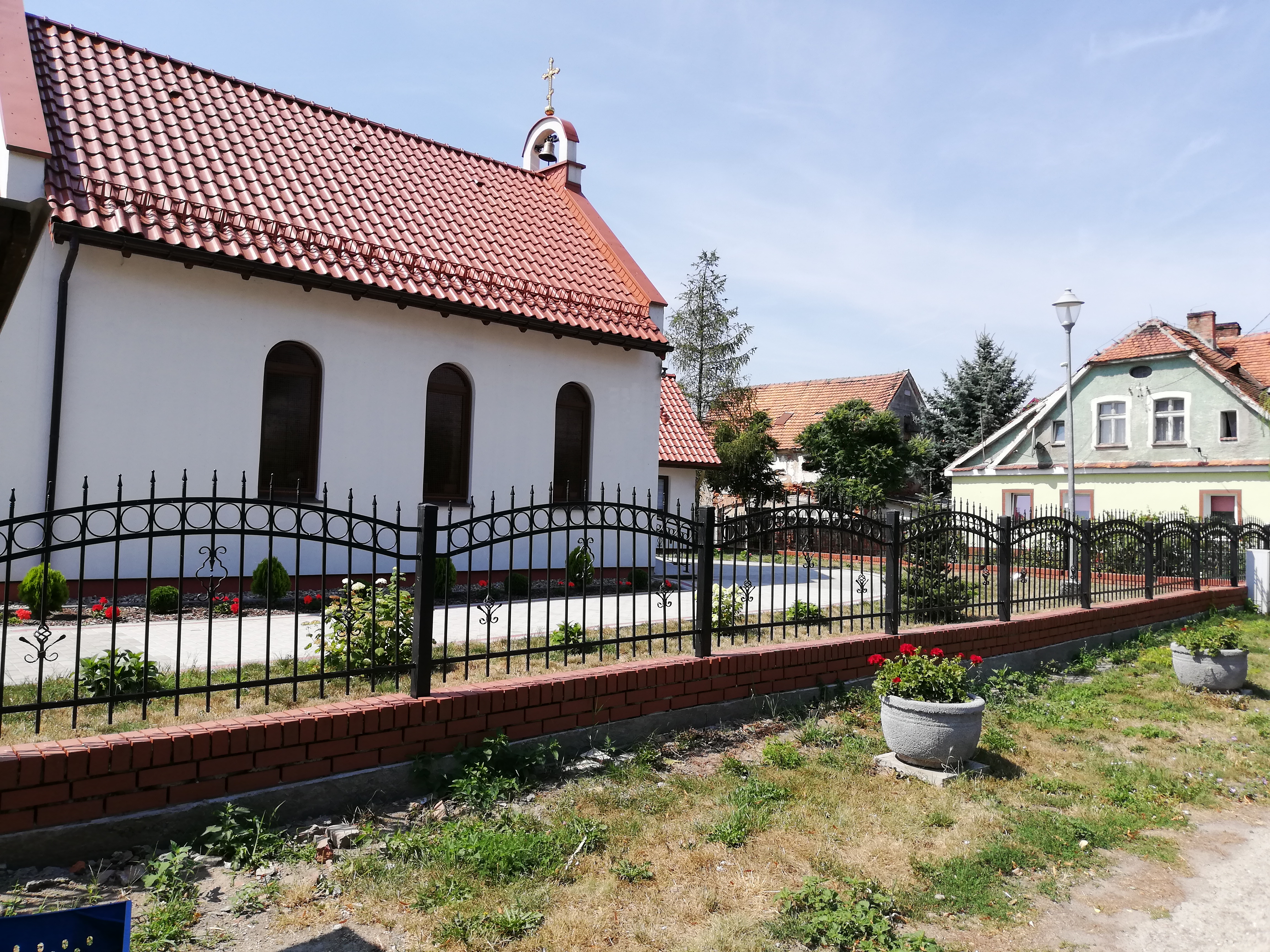 Dzięki ofiarodawcom i zaangażowaniu parafian samborskiej wspólnoty udało się zakończyć kolejny etap prac wokół świątyni. Stalowe ogrodzenie zostało wykończone podmurówką z klinkieru. Dzięki tym pracom teren wokół świątyni nabrał pięknego wyglądu licującego z powagą miejsca.