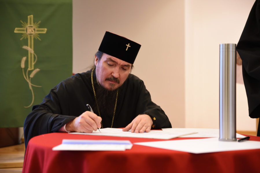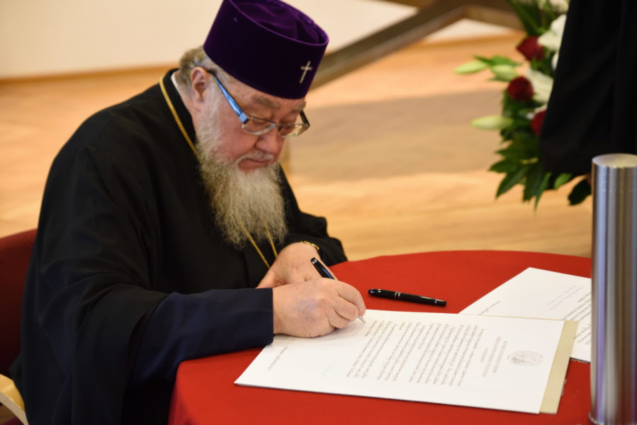 Na zakończenie nabożeństwa odbyła się ceremonia podpisania aktu erekcyjnego, przeznaczonego do wmurowania w fundamenty nowej siedziby ChAT, wznoszonej u zbiegu ulic Duracza i Broniewskiego. Podpisy pod dokumentem złożyli: Jego Eminencja Metropolita Sawa, zwierzchnicy pozostałych Kościołów zrzeszonych w Polskiej Radzie Ekumenicznej oraz władze Akademii.