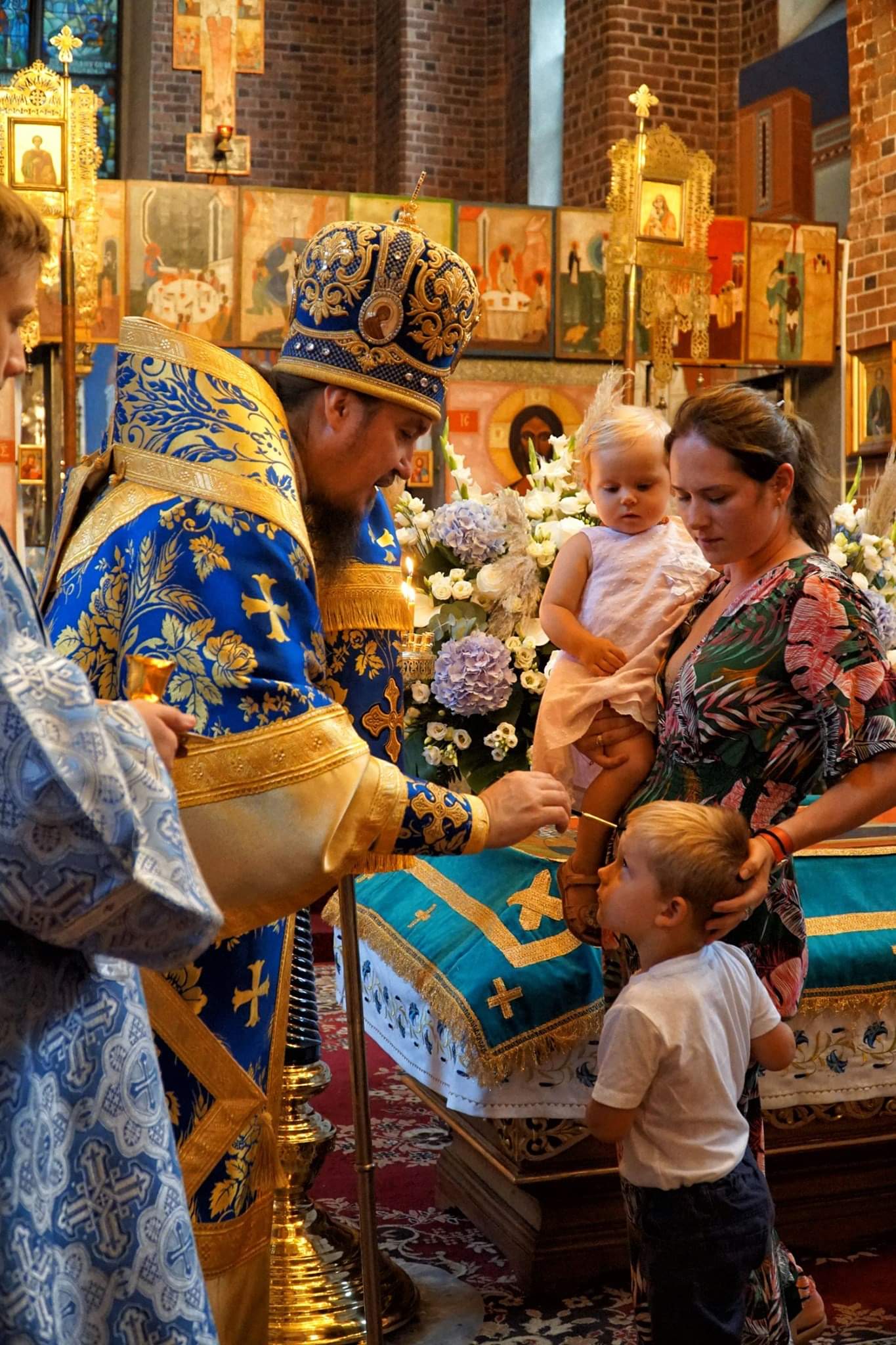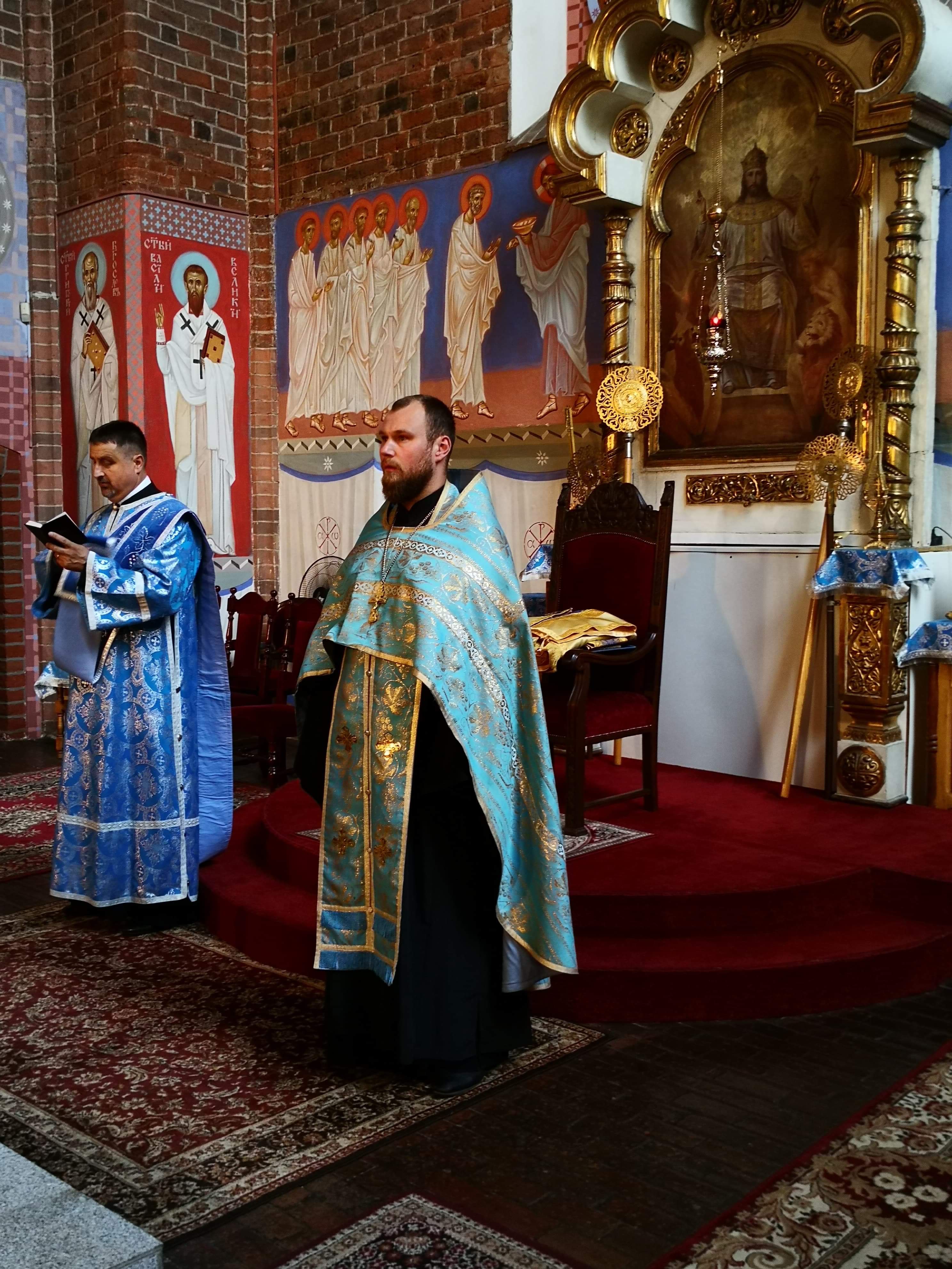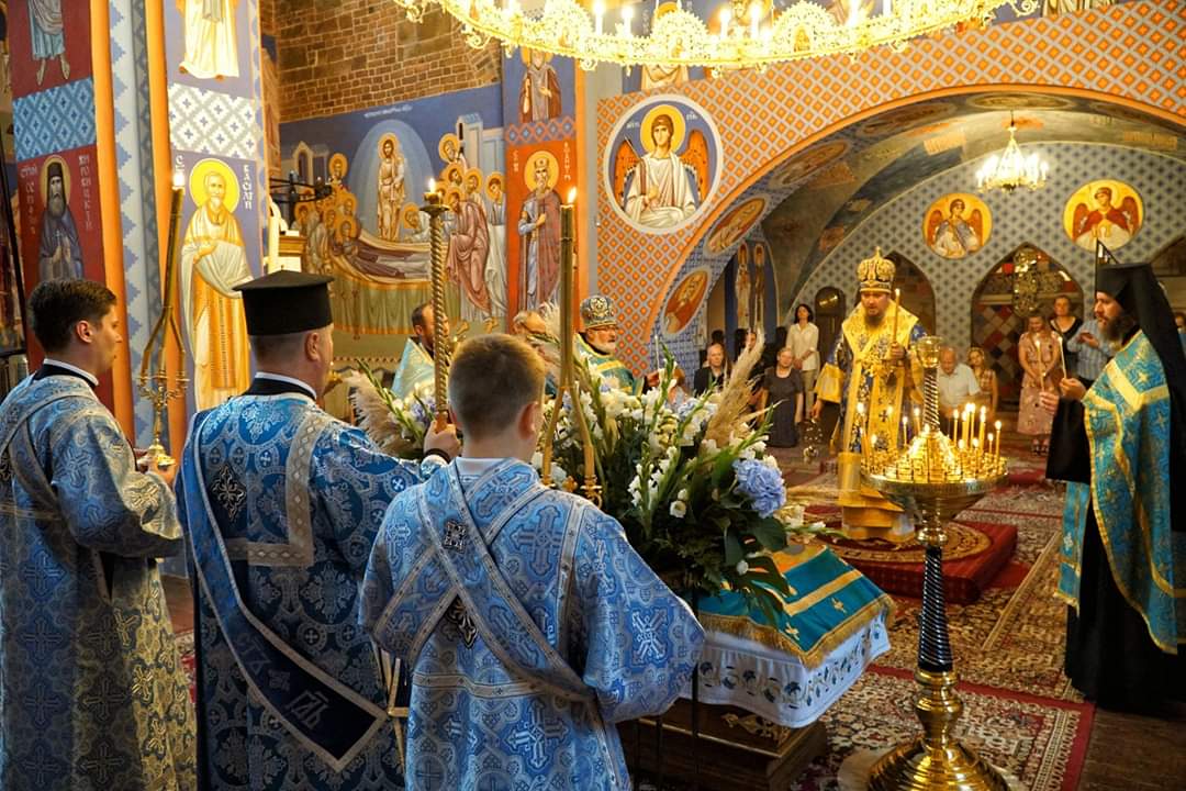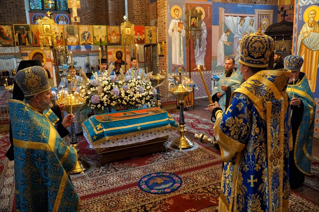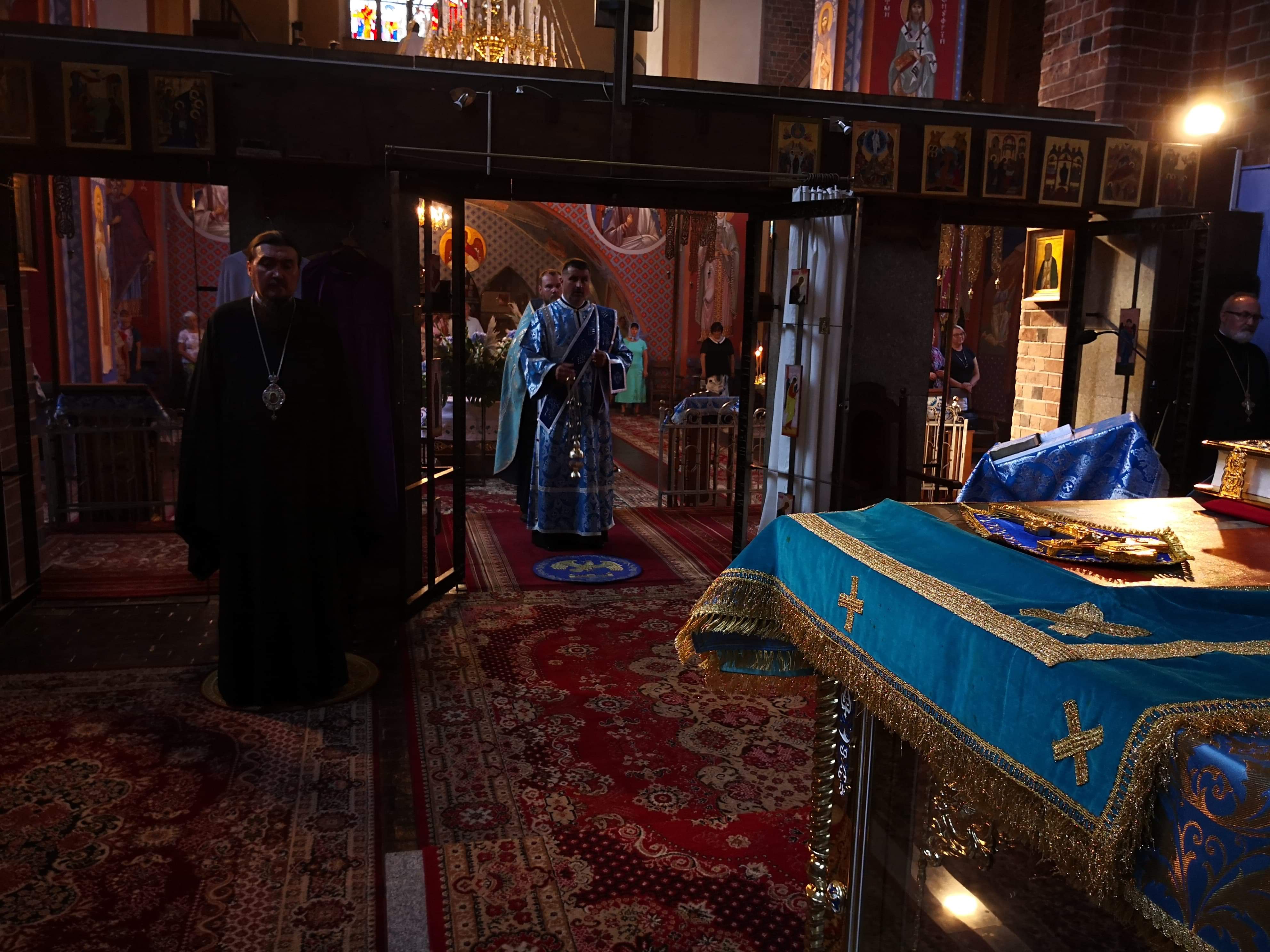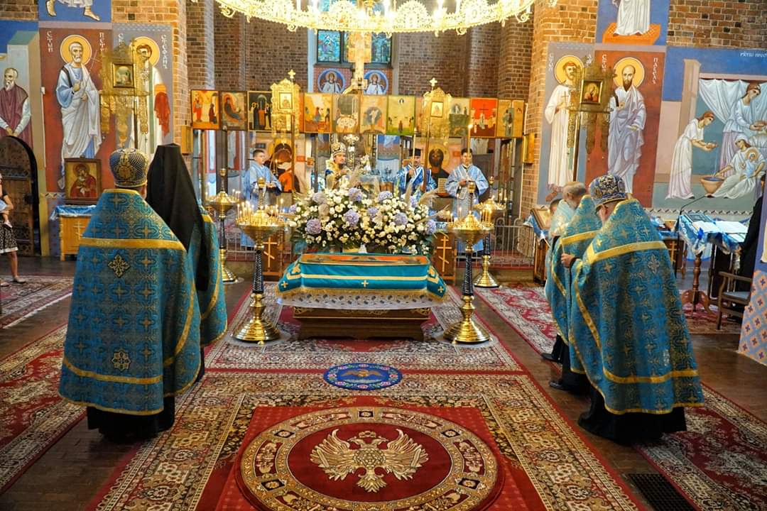 Troparion tonu 1: W narodzeniu dziewictwo zachowałaś, w zaśnięciu świata nie porzuciłaś, Bogurodzico. Odeszłaś bowiem do życia, Matką będąc Życia, i Twymi modłami wybawiasz od śmierci dusze nasze.