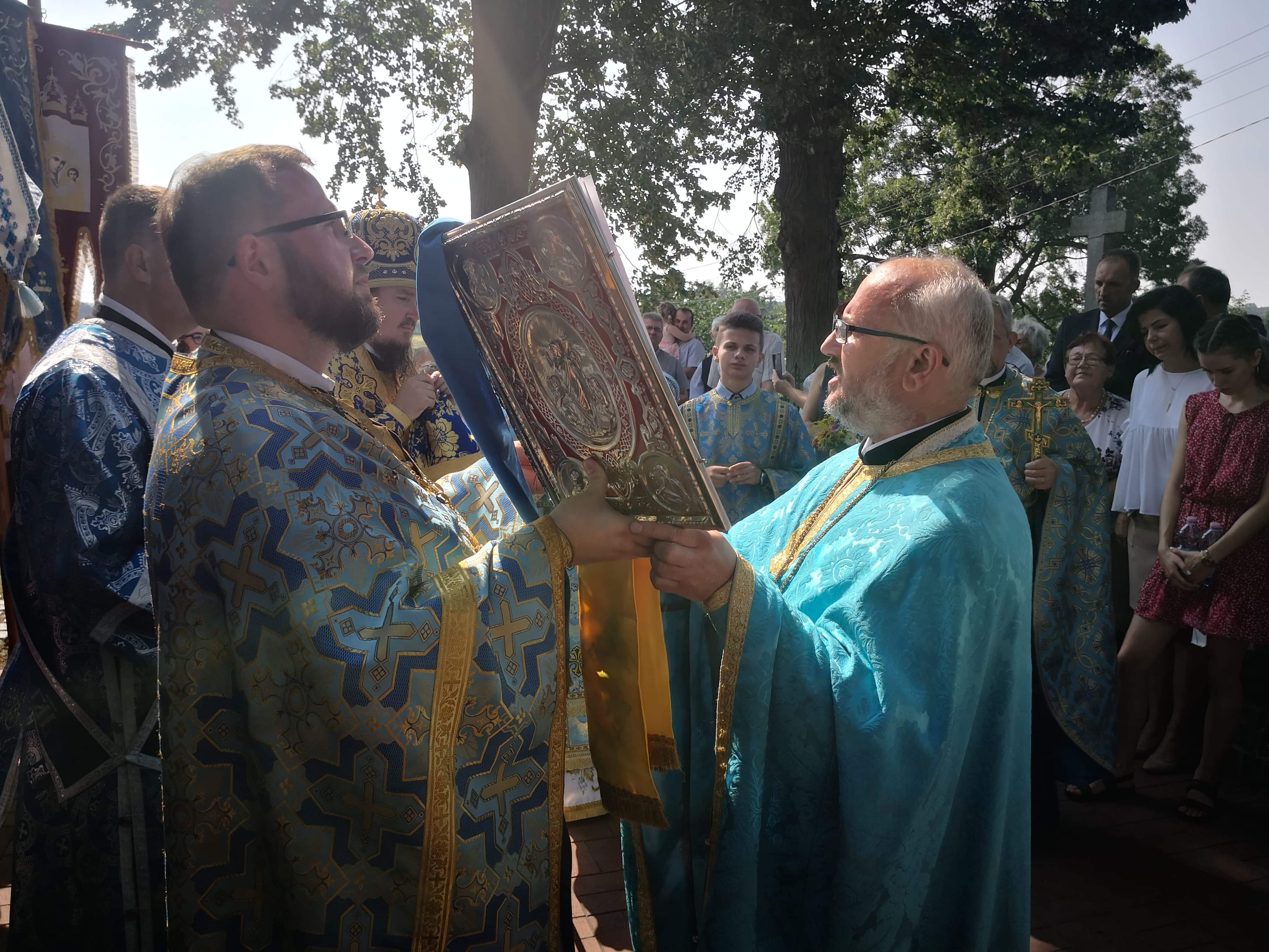 Liturgia zakończyła się uroczystą procesją, poświęceniem zbóż, ziół i kwiatów którego dokonał Władyka.