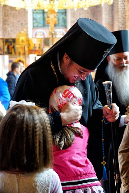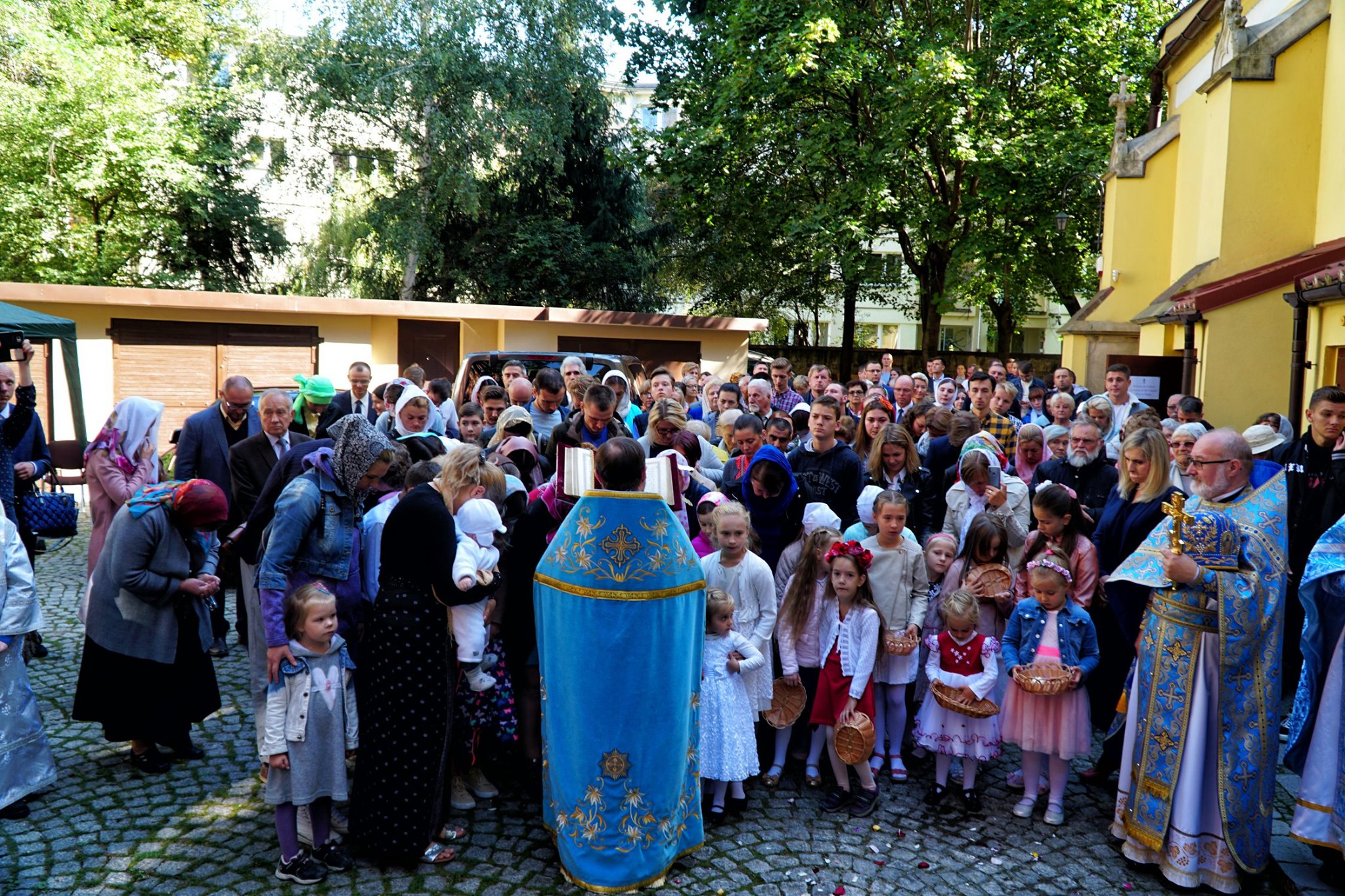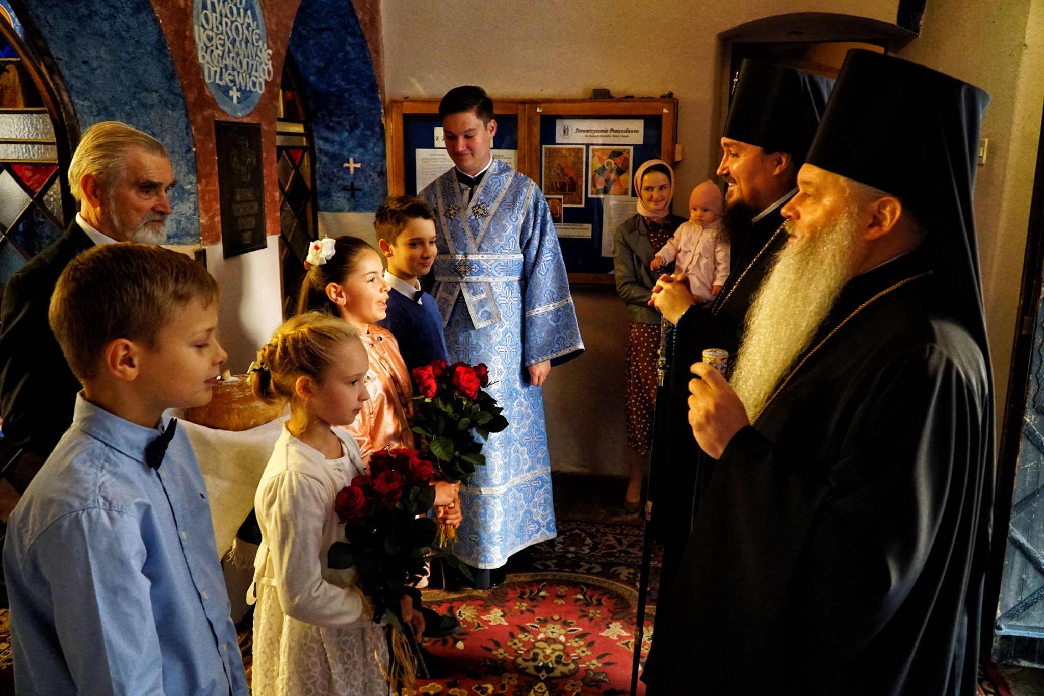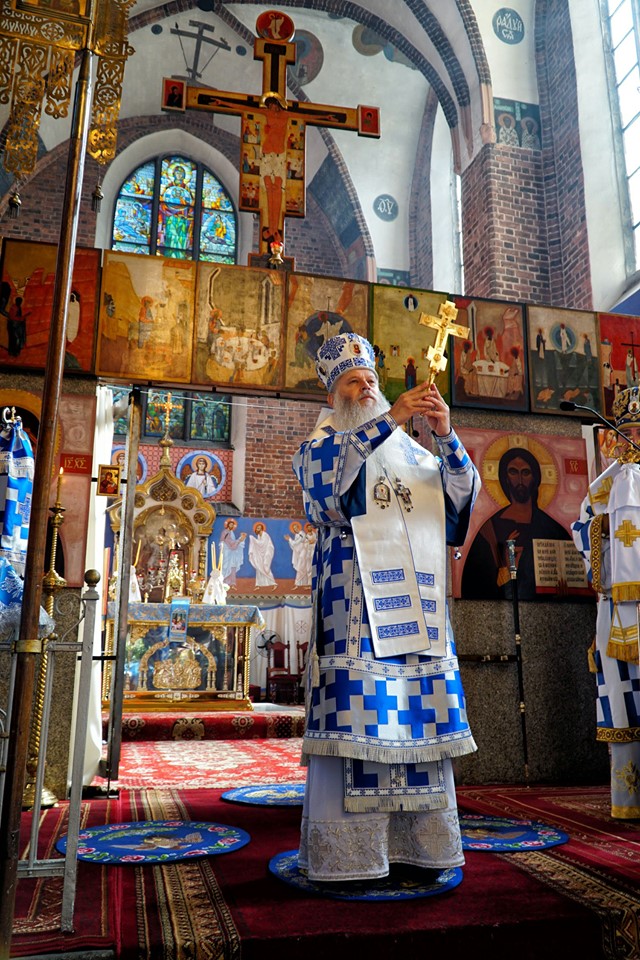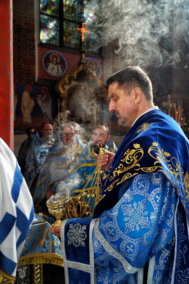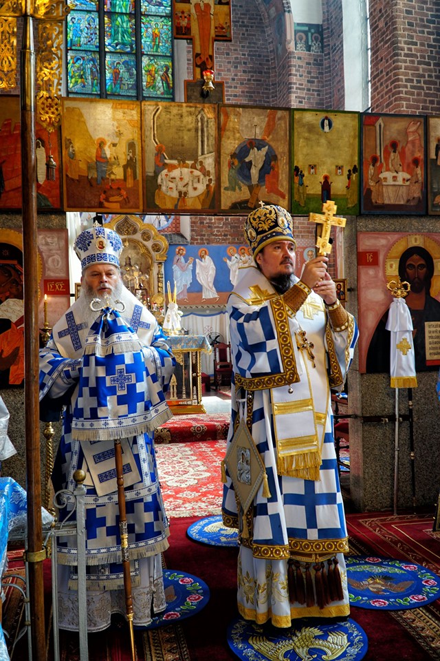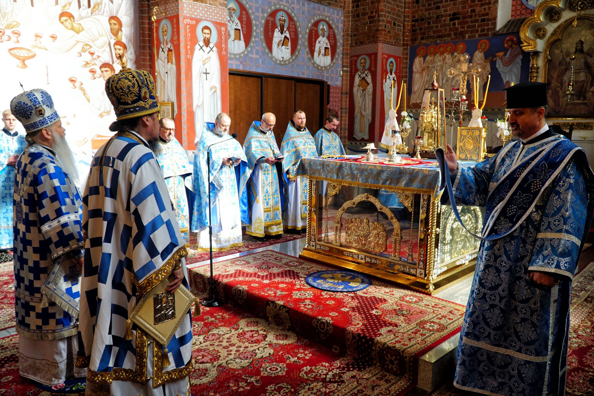 W drzwiach świątyni hierarchów powitały kwiatami dzieci, chlebem i solą starosta cerkiewny pan Mikołaj Zołotariew oraz proboszcz katedry ks. mitrat Jerzy Szczur wraz z licznie zgromadzonym duchowieństwem dekanatu wrocławskiego. Przed rozpoczęciem Liturgii dziekan okręgu wrocławskiego ks. mitrat Aleksander Konachowicz dokonał obrzędu oświęcenia wody.