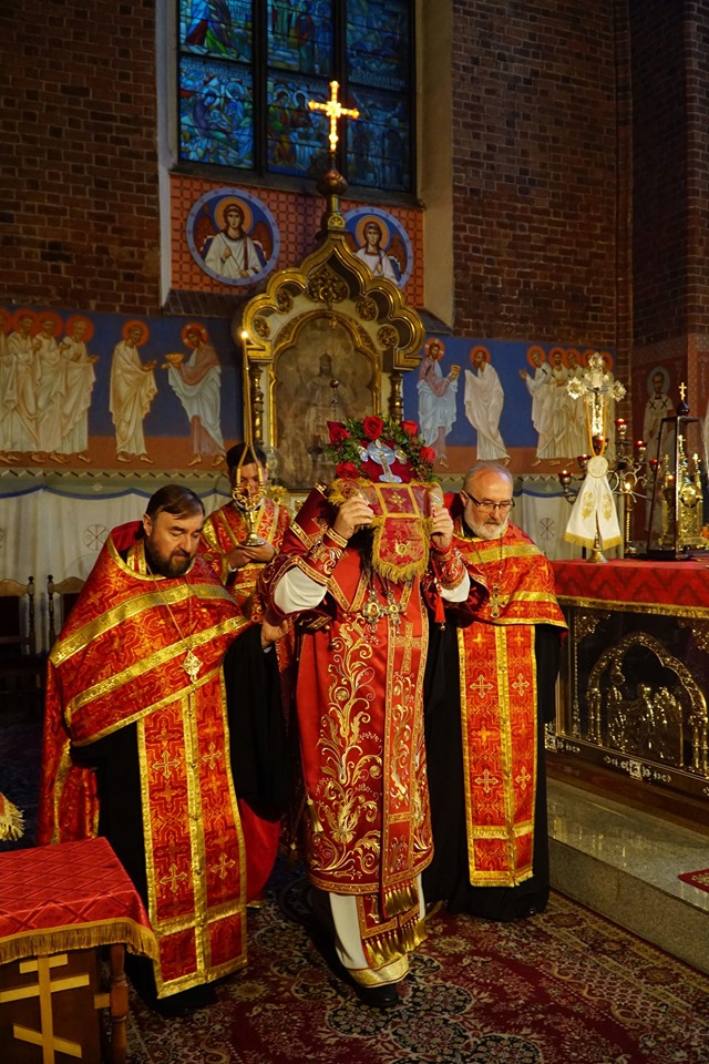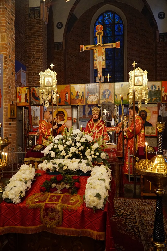 W sam dzień święta Jego Ekscelencja Władyka Jerzy przewodniczył Boskiej Liturgii. W homilii Władyka zwrócił uwagę na rys historyczny święta. Wspomniał o poszukiwaniach drzewa Świętego Krzyża prowadzonych w IV wieku przez św. Helenę, o cudzie związanym z rozpoznaniem Krzyża Chrystusowego oraz jego uroczystym Podwyższeniu przez miejscowego biskupa Makarego. Mówiąc o mocy Krzyża abp Jerzy zwrócił uwagę na to, że krzyż jest nie tylko znakiem, ale i mocą. Władyka podkreślił jak ważnym jest, aby znak krzyża towarzyszył nam na co dzień, nie tylko w domu, ale również w pracy, w szkole, czy gdziekolwiek będziemy.