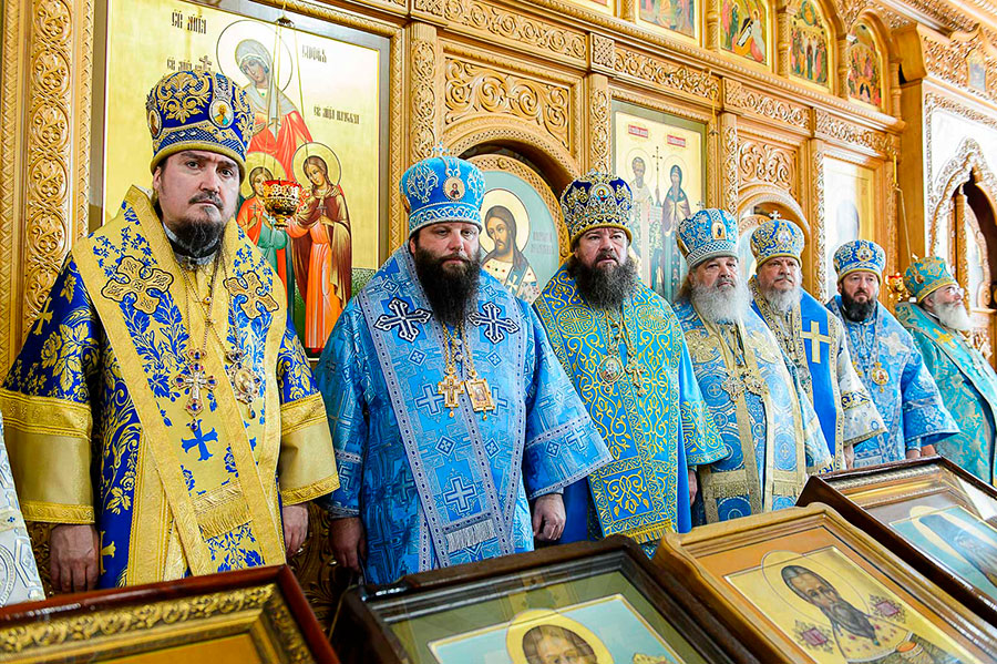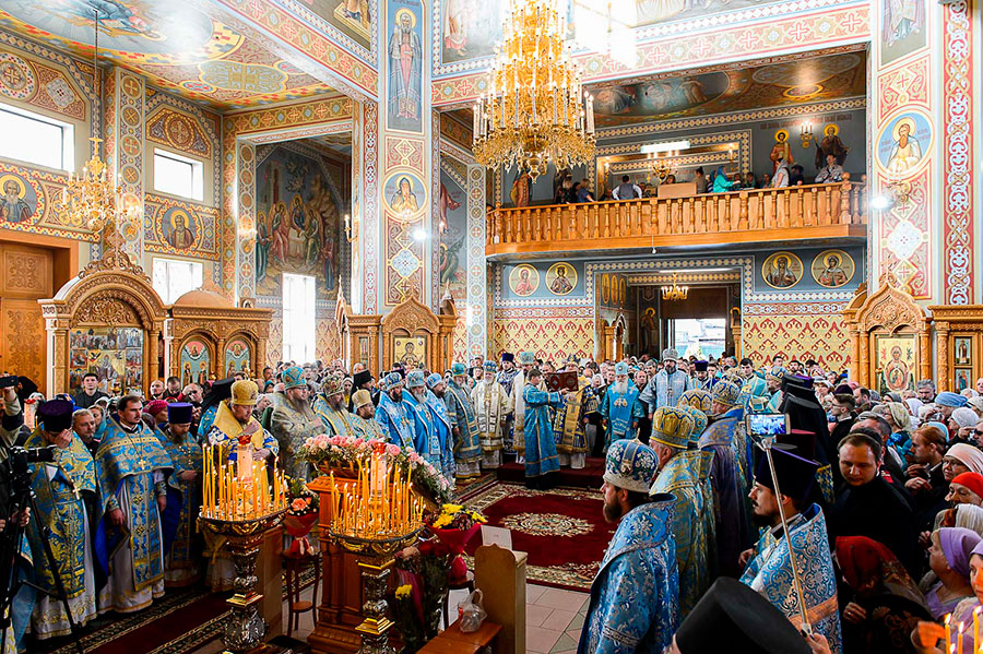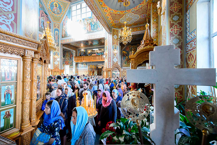 Świąteczna Liturgia miała miejsce w Sofijskim Soborze Iwiersko-Serafimowskiego monasteru. Nabożeństwu przewodniczył zwierzchnik Prawosławnej Cerkwi Kazachstanu Jego Ekscelencja metr. Astański i Kazachski Aleksander, z którym współsłużyło 23 biskupów z Kazachstanu, Polski, Mołdawii, Ukrainy i Rosji.