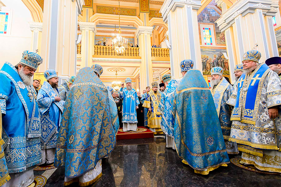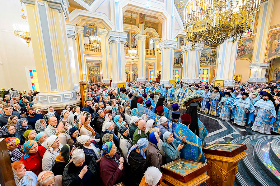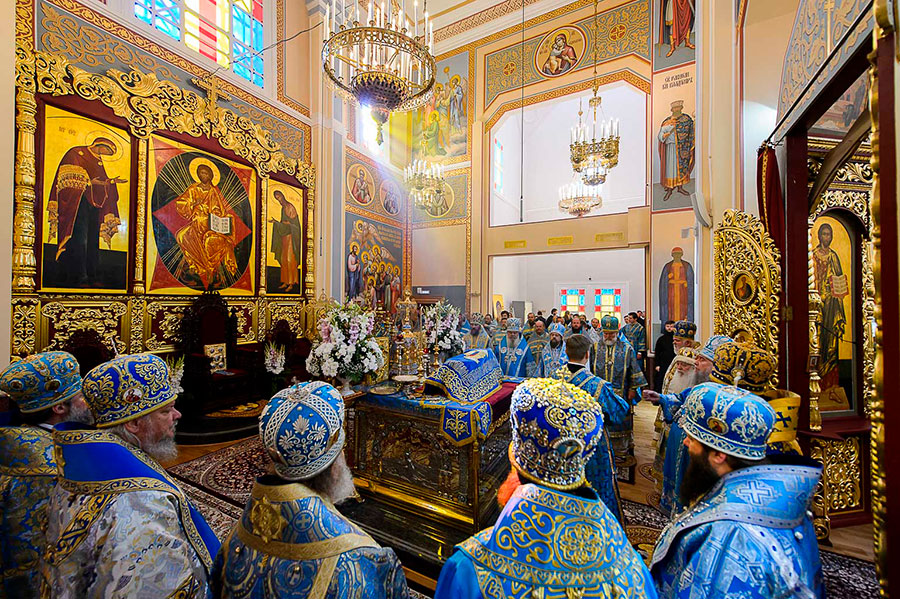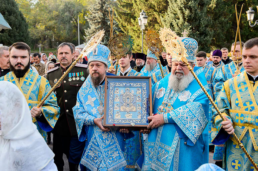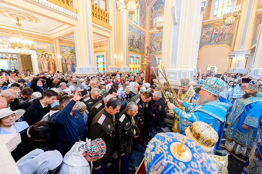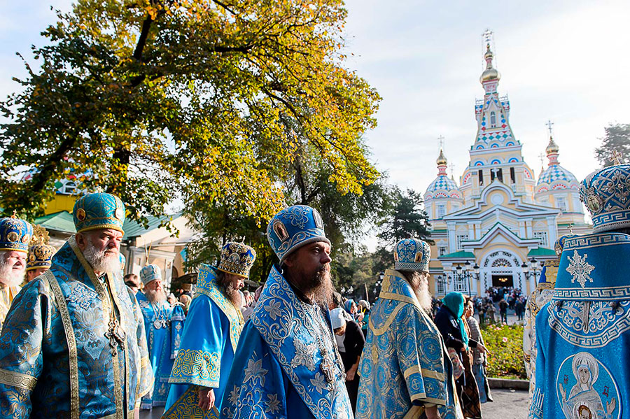 Przed rozpoczęciem nabożeństwa, któremu przewodniczył metr. Astański i Kazachski Aleksander, miała miejsce uroczysta procesja z Kursko-Korenną ikoną Bogurodzicy.