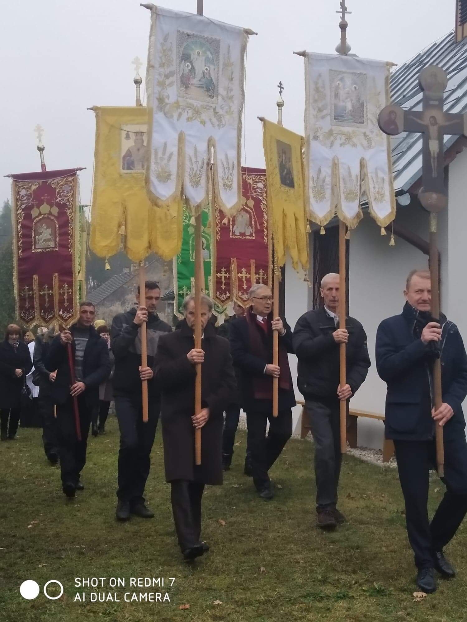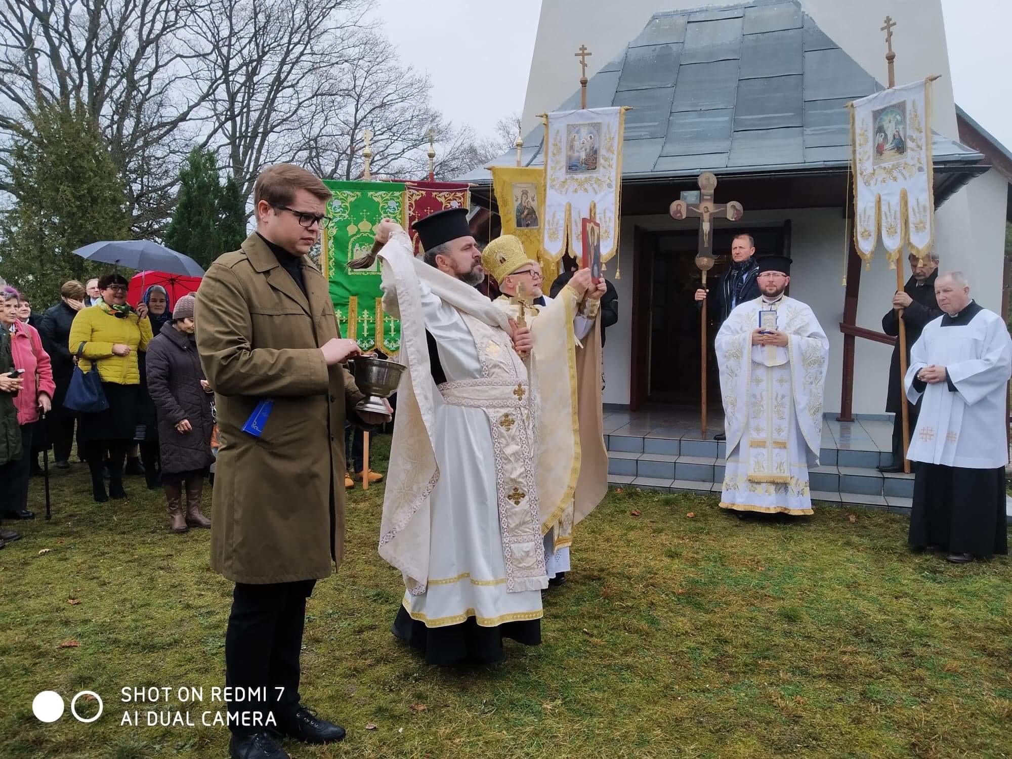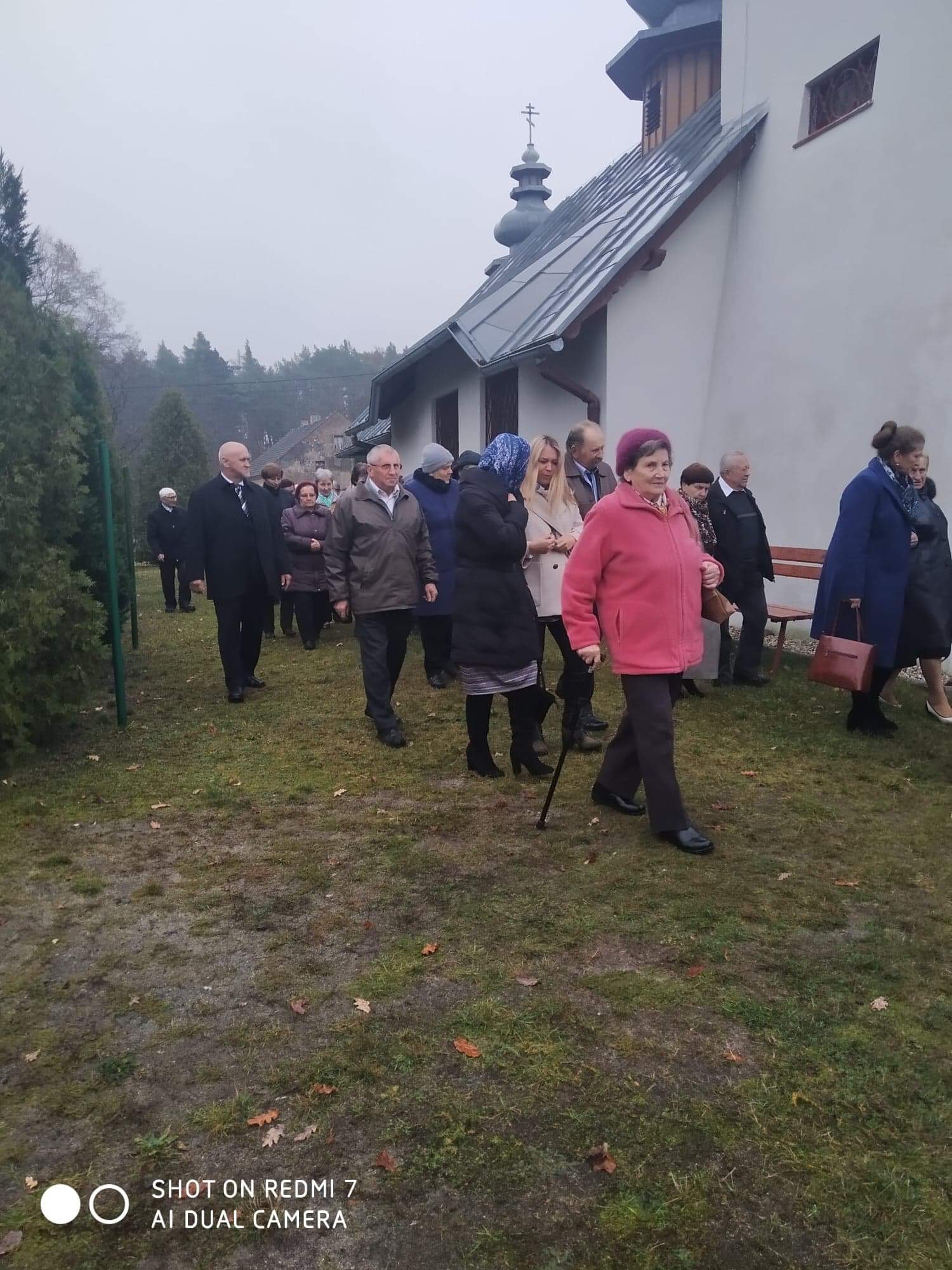 Na koniec, po procesji większość z zebranych na prośbę proboszcza ustawiła się do wspólnego zdjęcia na tle jedynej cerkwi wybudowanej w stylu łemkowskim na zachodzie polski.