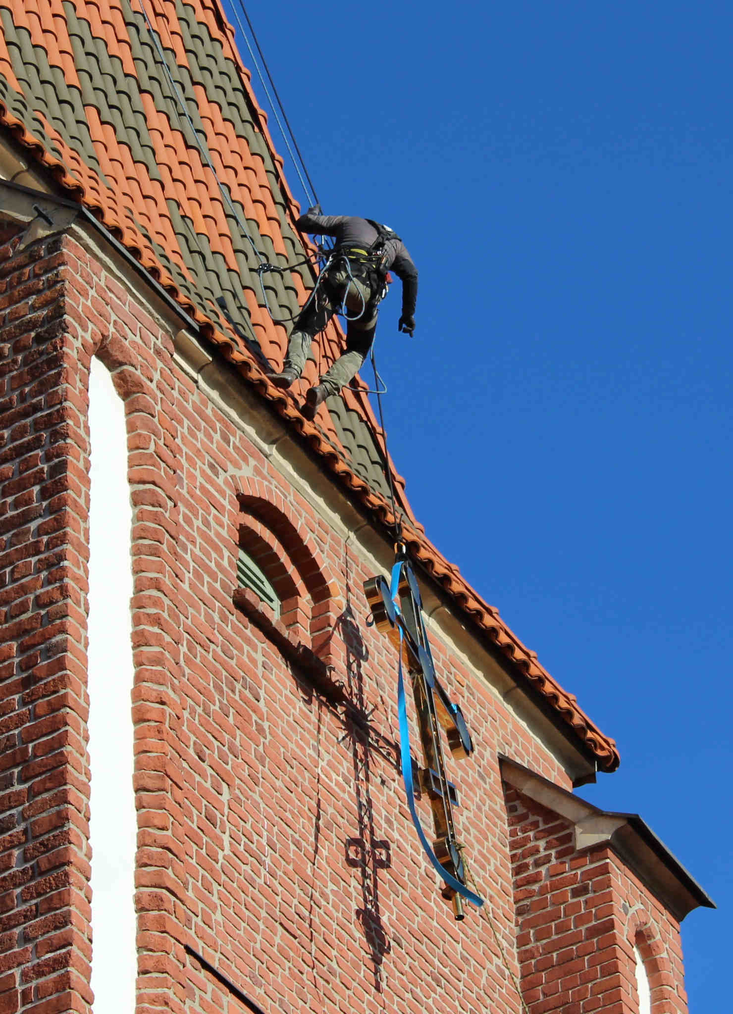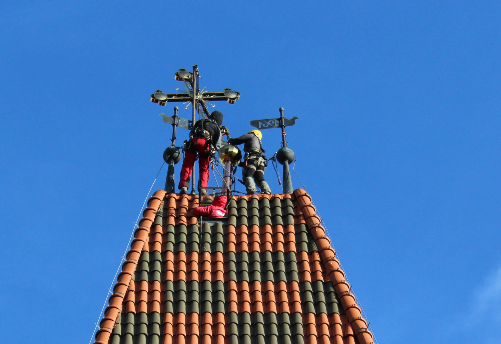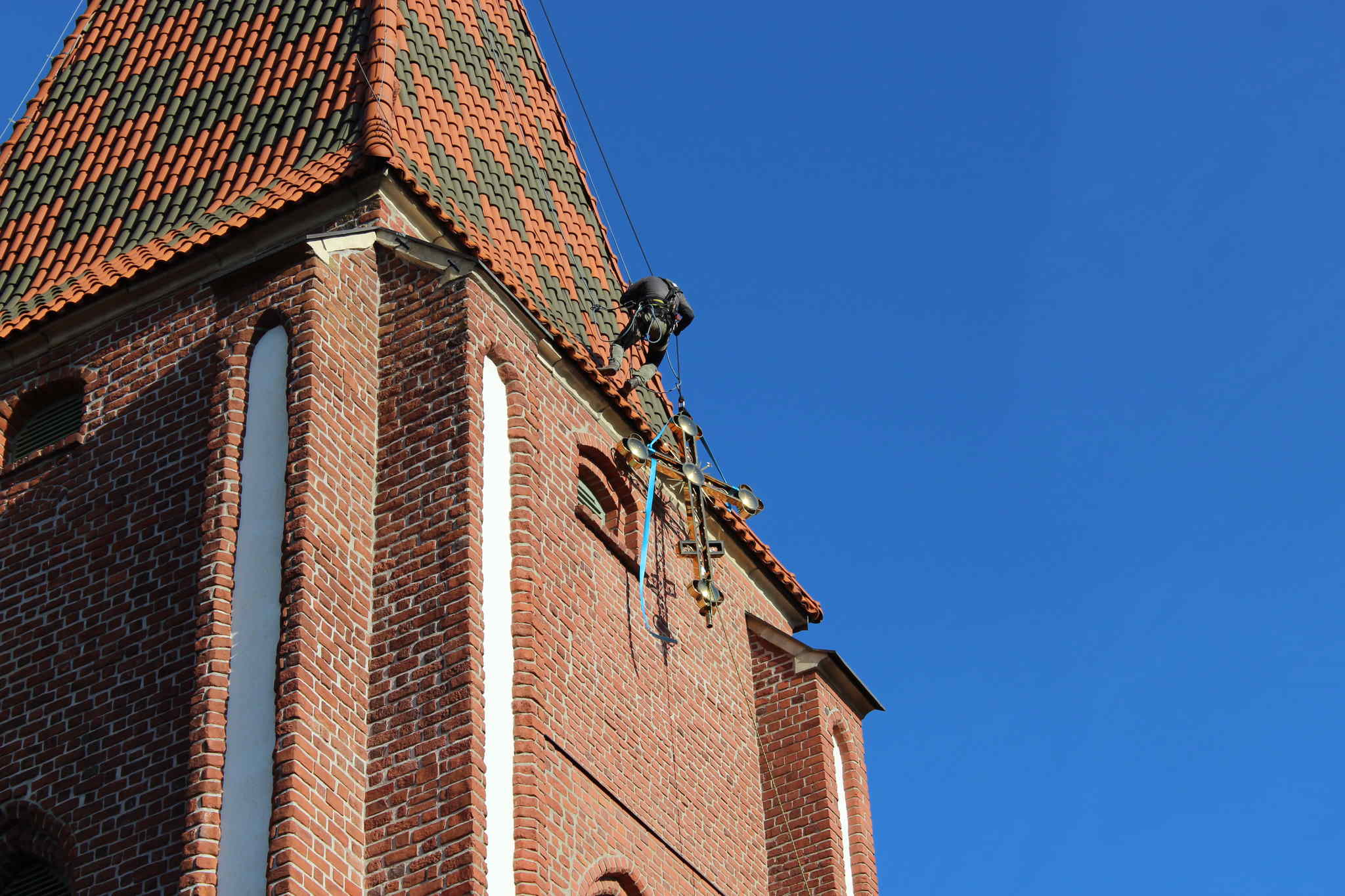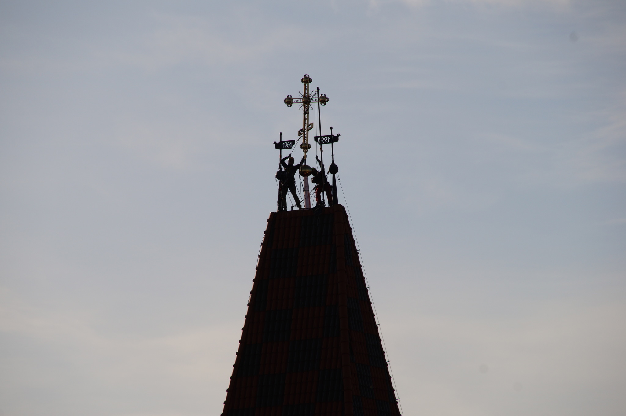 Dzięki staraniom proboszcza ks. mitrata Jerzego Szczura, po pokonaniu wielu problemów formalnych i konstruktorskich krzyż został umieszczony przez alpinistów na szczycie wieży.