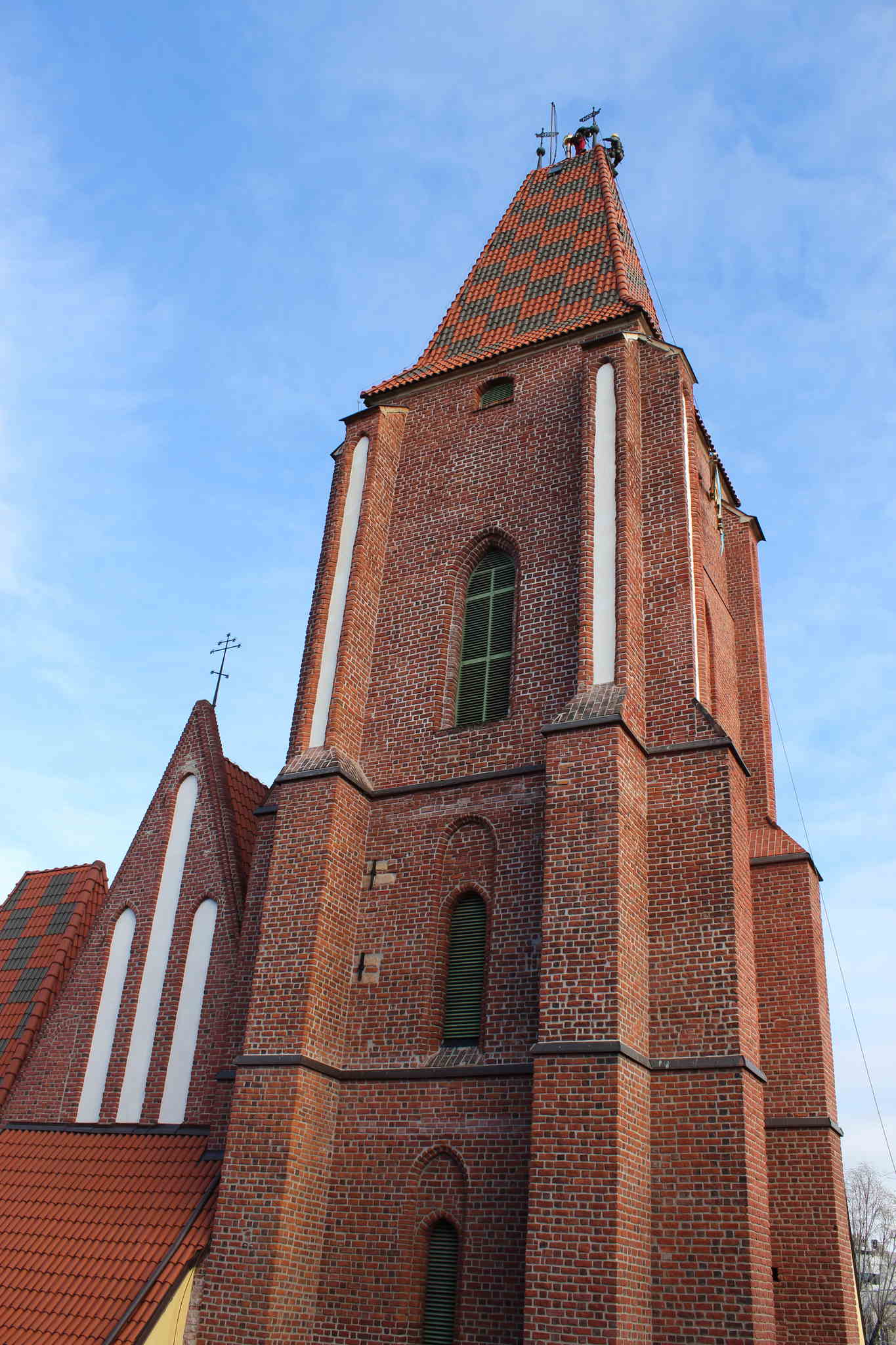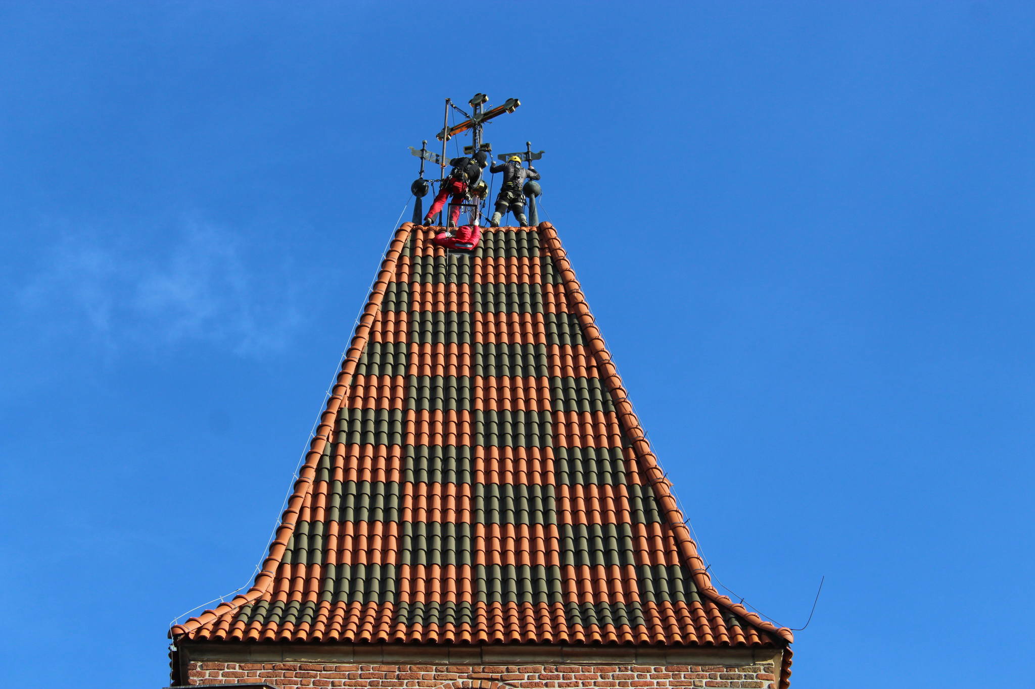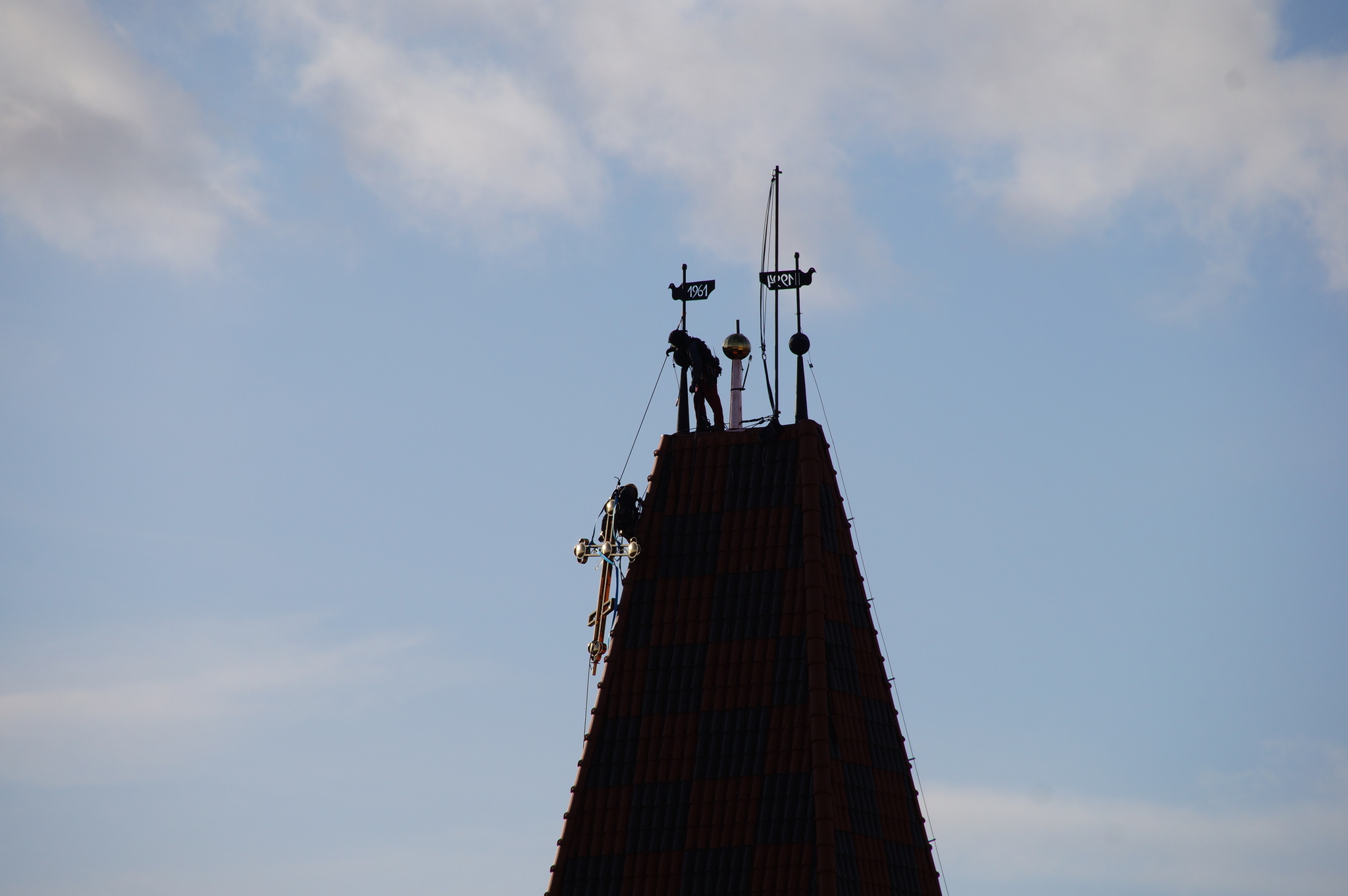 Dzięki staraniom proboszcza ks. mitrata Jerzego Szczura, po pokonaniu wielu problemów formalnych i konstruktorskich krzyż został umieszczony przez alpinistów na szczycie wieży.