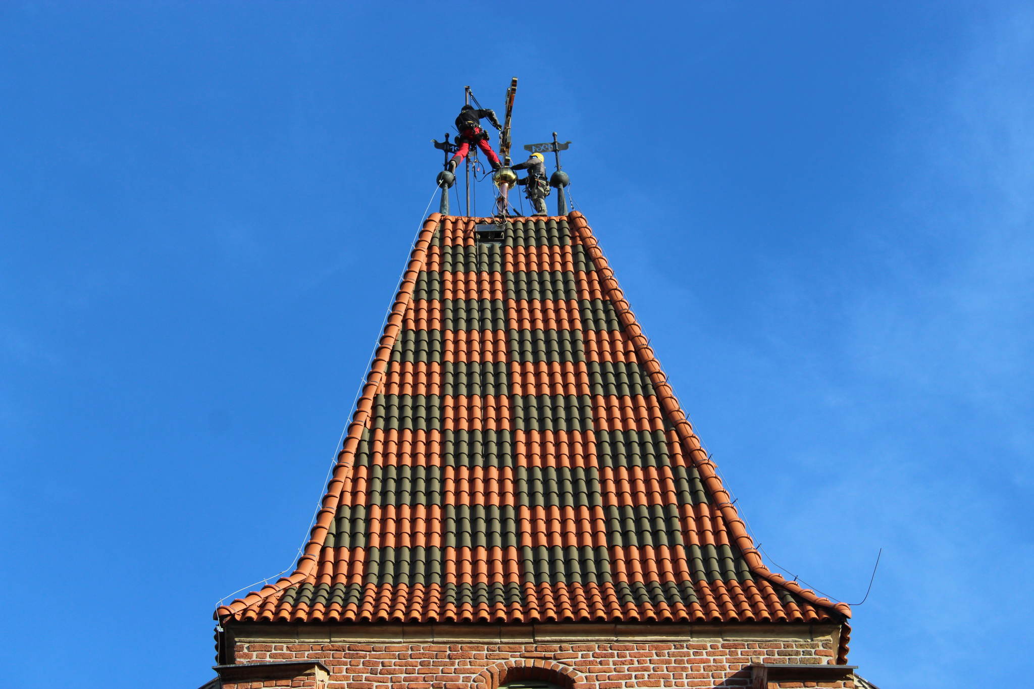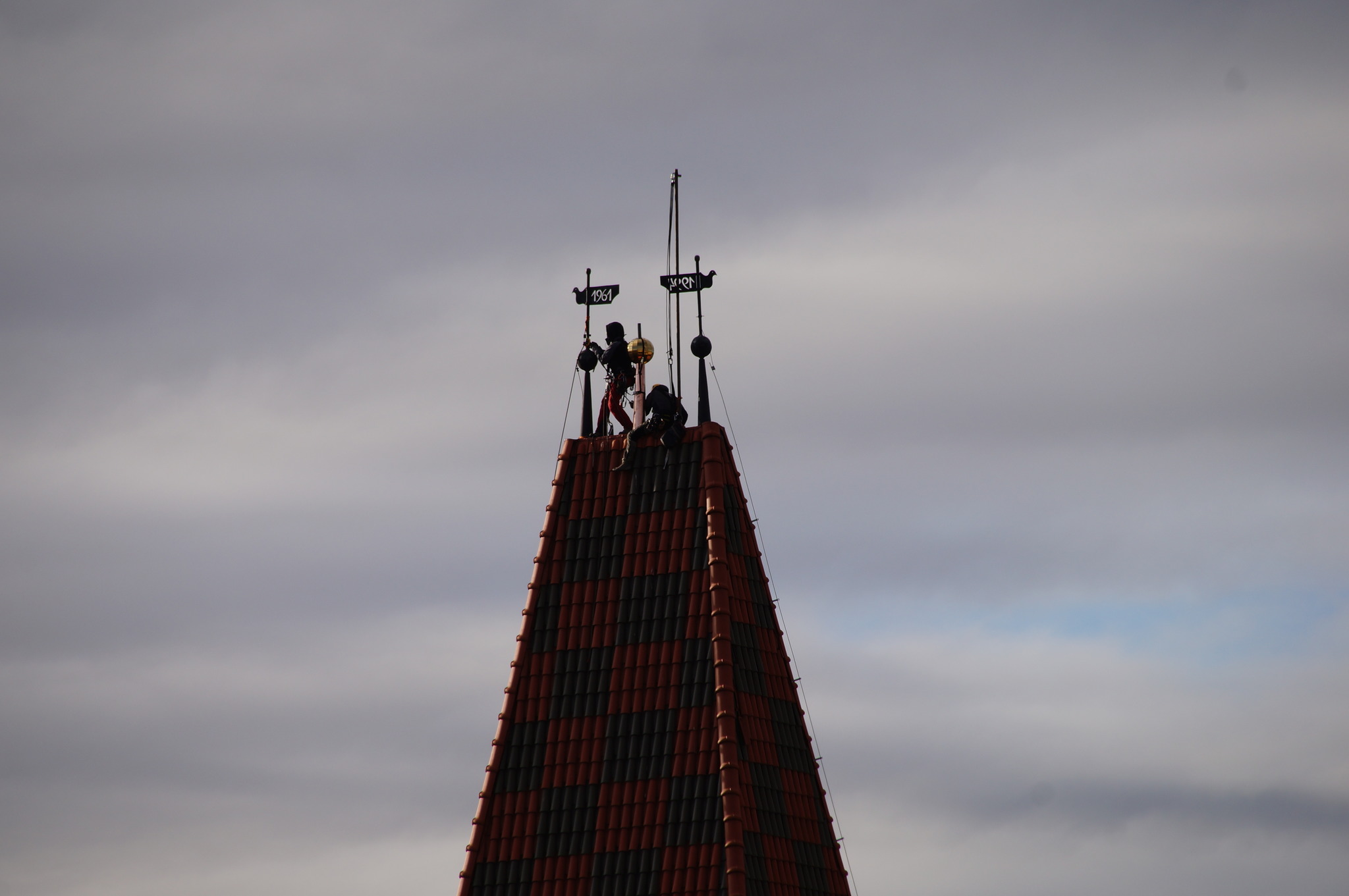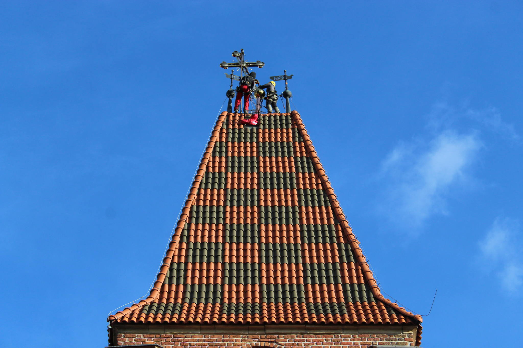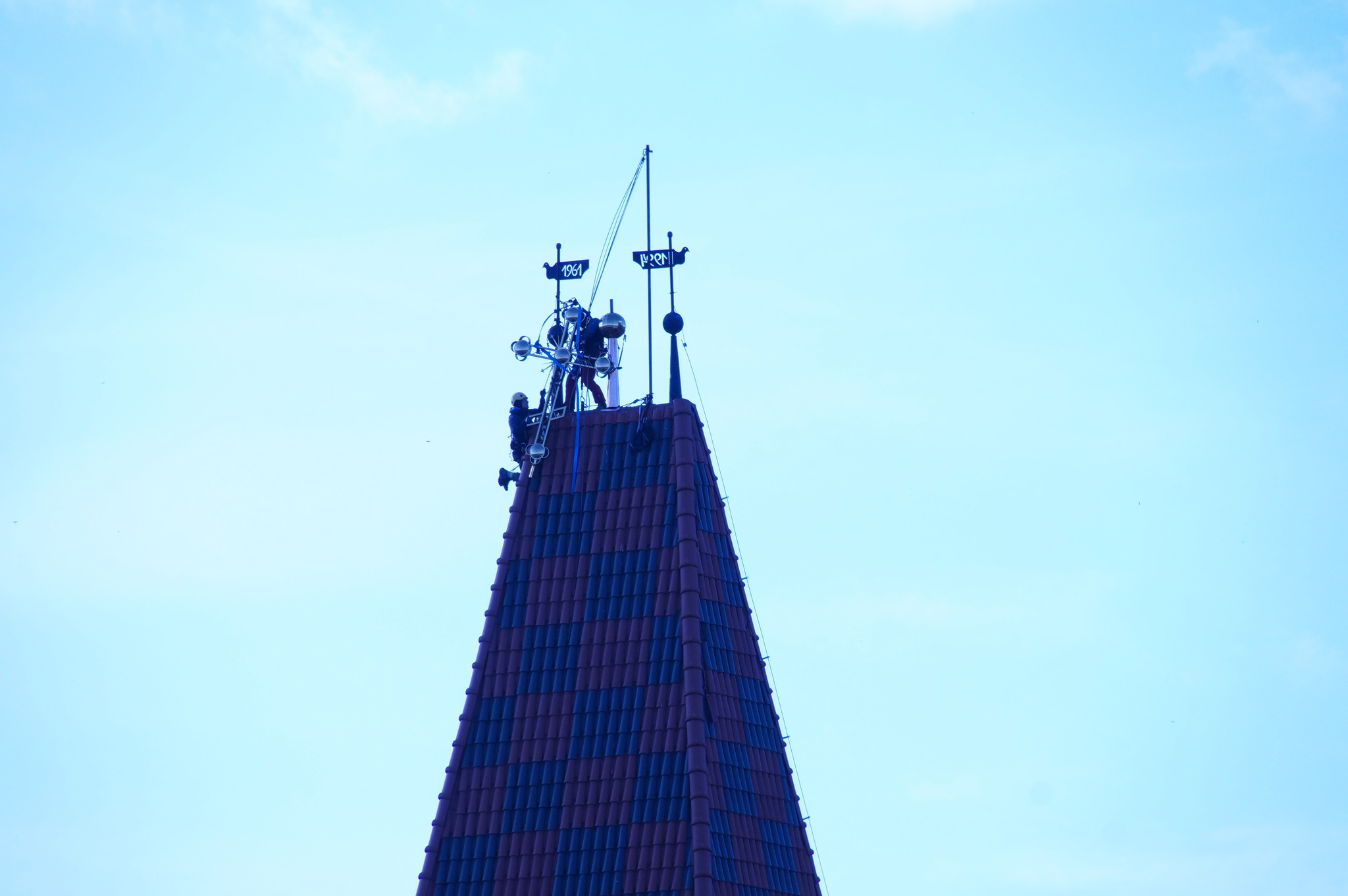 Dzięki staraniom proboszcza ks. mitrata Jerzego Szczura, po pokonaniu wielu problemów formalnych i konstruktorskich krzyż został umieszczony przez alpinistów na szczycie wieży.