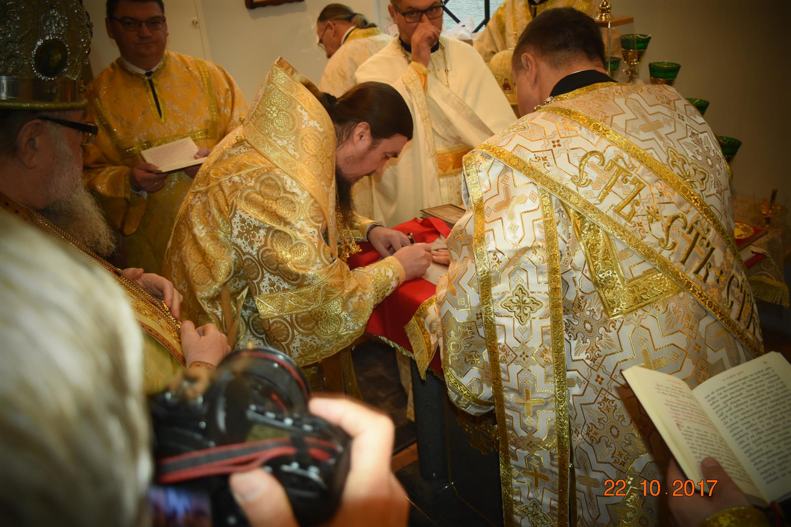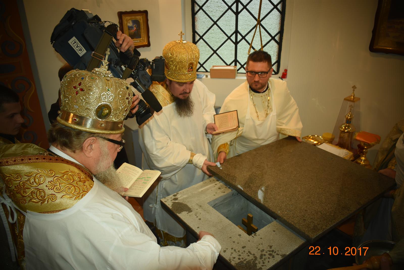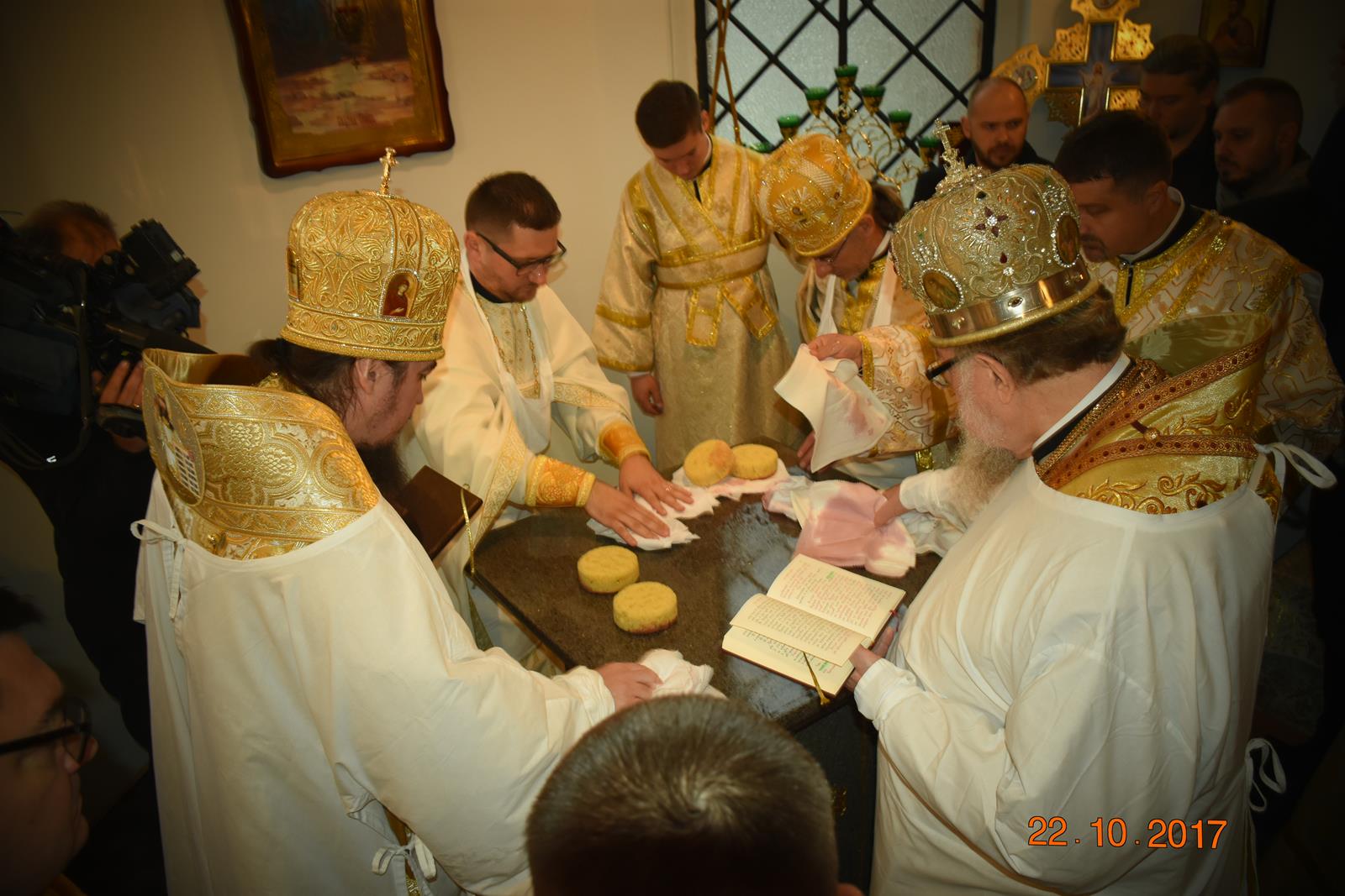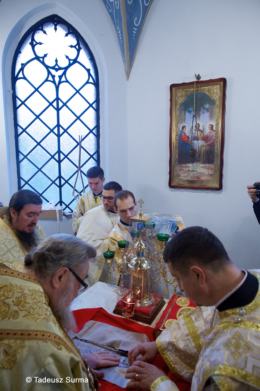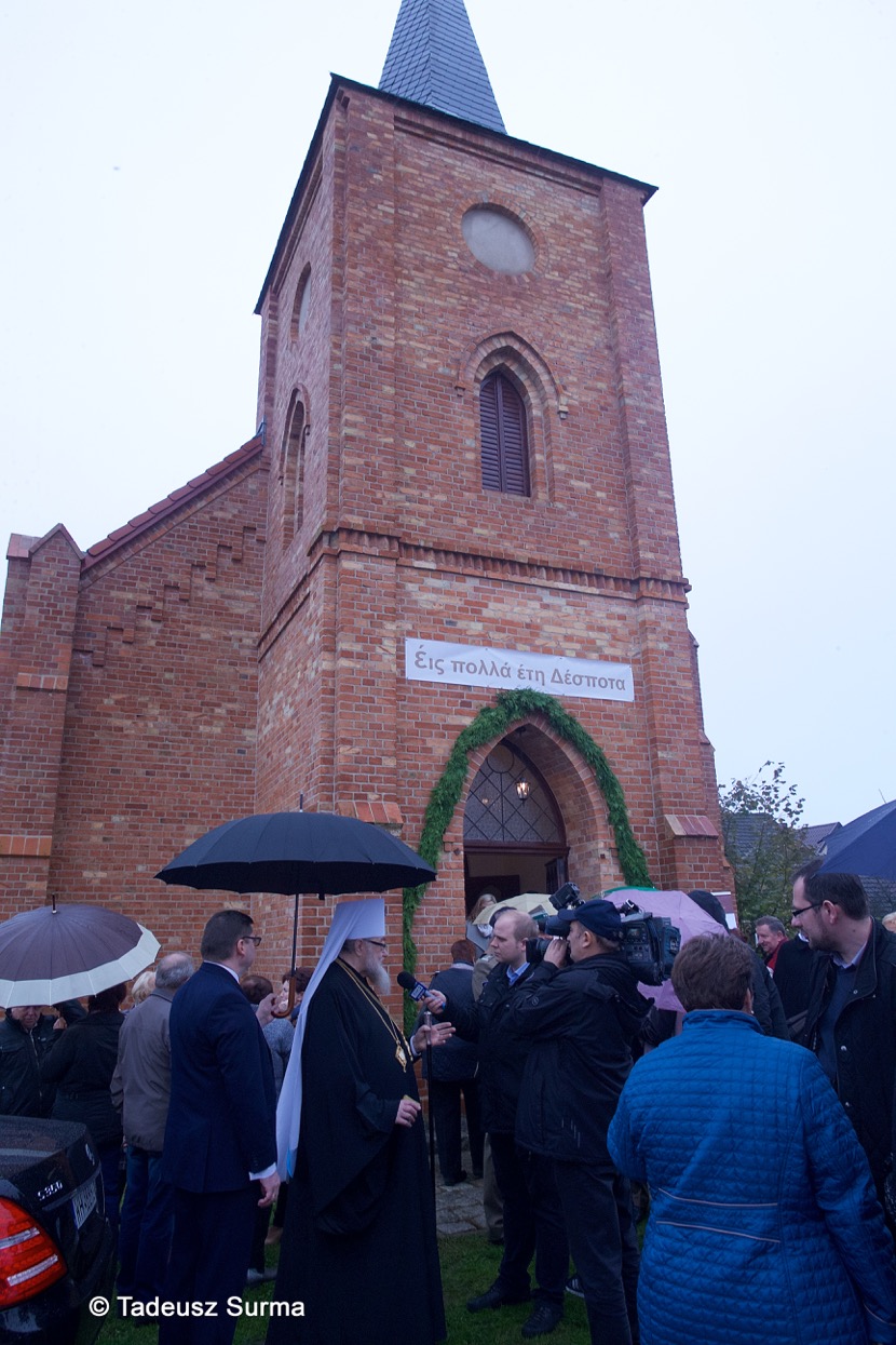 Po godzinie 9.00 rozpoczęto obrzęd poświęcenia świątyni. Była to wyjątkowa chwila szczególnie dla tych, którzy po raz pierwszy byli świadkami takiego wydarzenia. W prestole – ołtarzu złożono relikwie śww. Męczenników Betlejemskich. Następnie sprawowana była święta Liturgia, której przewodniczył metropolita Sawa, w asyście arcybiskupa Jerzego, ks. mitrata Piotra Żornaczuka, ks. mitrata Andrzeja Demczuka, ks. Jarosława Biryłko oraz protodiakonów Rościsława Gwizdaka i Mieczysława Oleśniewicza. Obecni byli przedstawiciele Kościoła rzymskokatolickiego w osobach: ks. Adama Staszczaka ze Stargardu i ks. Rafała Sorokowicza z Dobrzan.