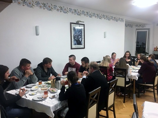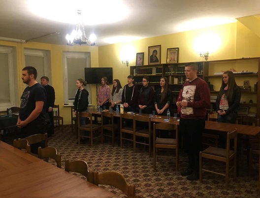 W piątkowy wieczór około godziny 17.00 zaczęli zjeżdżać się pierwsi uczestnicy zjazdu - wśród nich młodzież w różnym wieku oraz z różnych parafii naszej diecezji. W tym roku mieliśmy również zaszczyt gościć członków Centralnego Zarządu Bractwa Młodzieży Prawosławnej w Polsce. Po zakwaterowaniu i pysznej kolacji, rozpoczęto spotkanie tematyczne „100 pytań do”. Poprowadzili je zaproszeni przez młodzież ksiądz Grzegorz Cebulski oraz ksiądz Mariusz Kiślak - gospodarz ośrodka. W czasie spotkania ojcowe wykazali się ogromną wiedzą nie tylko teologiczną, ale i historyczną – odpowiadali na wszystkie, niekiedy trudne pytania dotyczące najczęściej sytuacji prawosławia w dzisiejszym świecie, odwołując się ponadto do przeszłości i ważnych dla prawosławnych wiernych wydarzeń, jak np. akcja “Wisła”. Wiedza zdobyta podczas spotkania z całą pewnością pozostanie przydatna. Dzień zakończyły modlitwy wieczorne, po nich była zaś chwila na odpoczynek młodzieży, która przy rozmowach i śpiewie miała szansę się zintegrować.