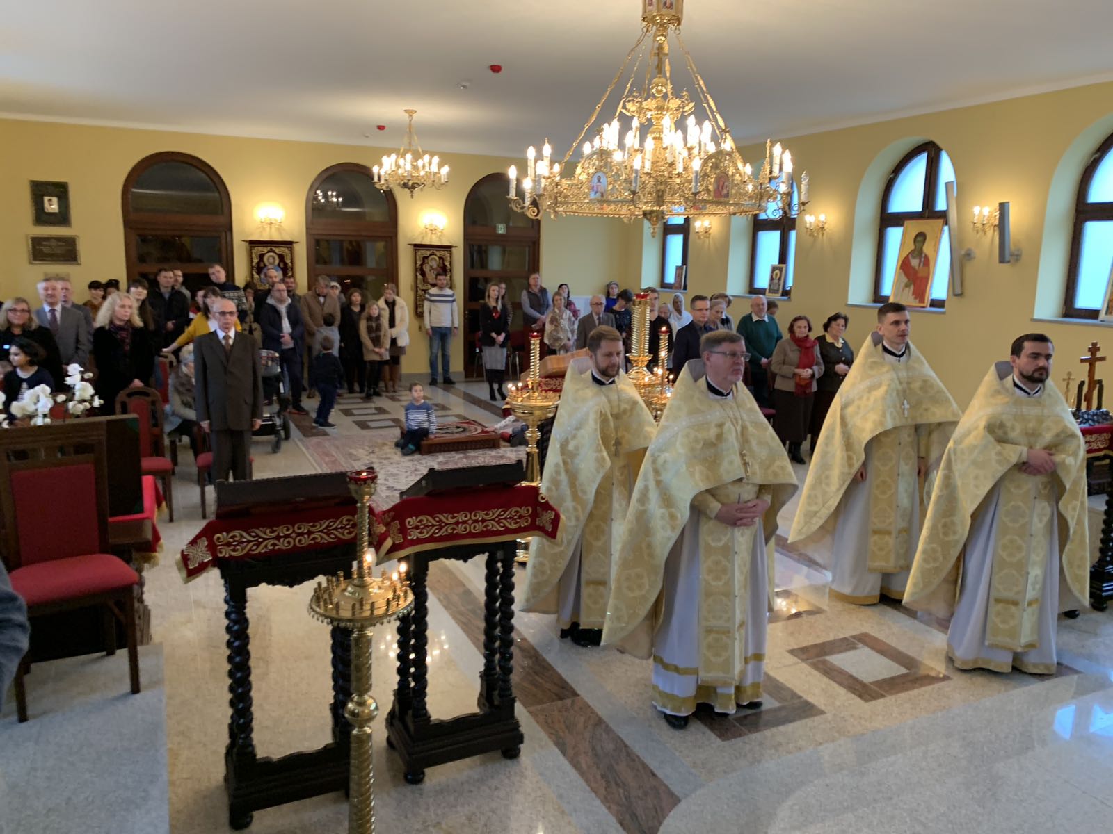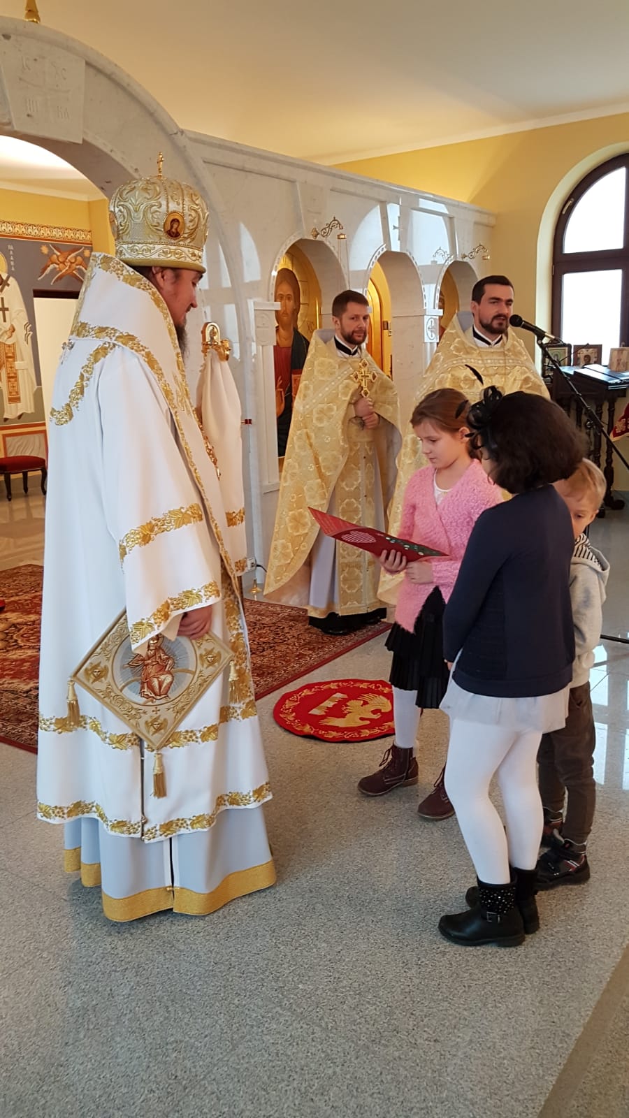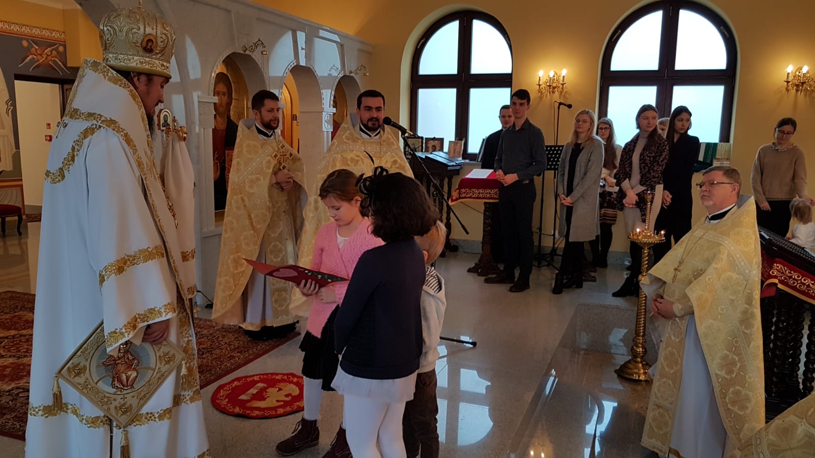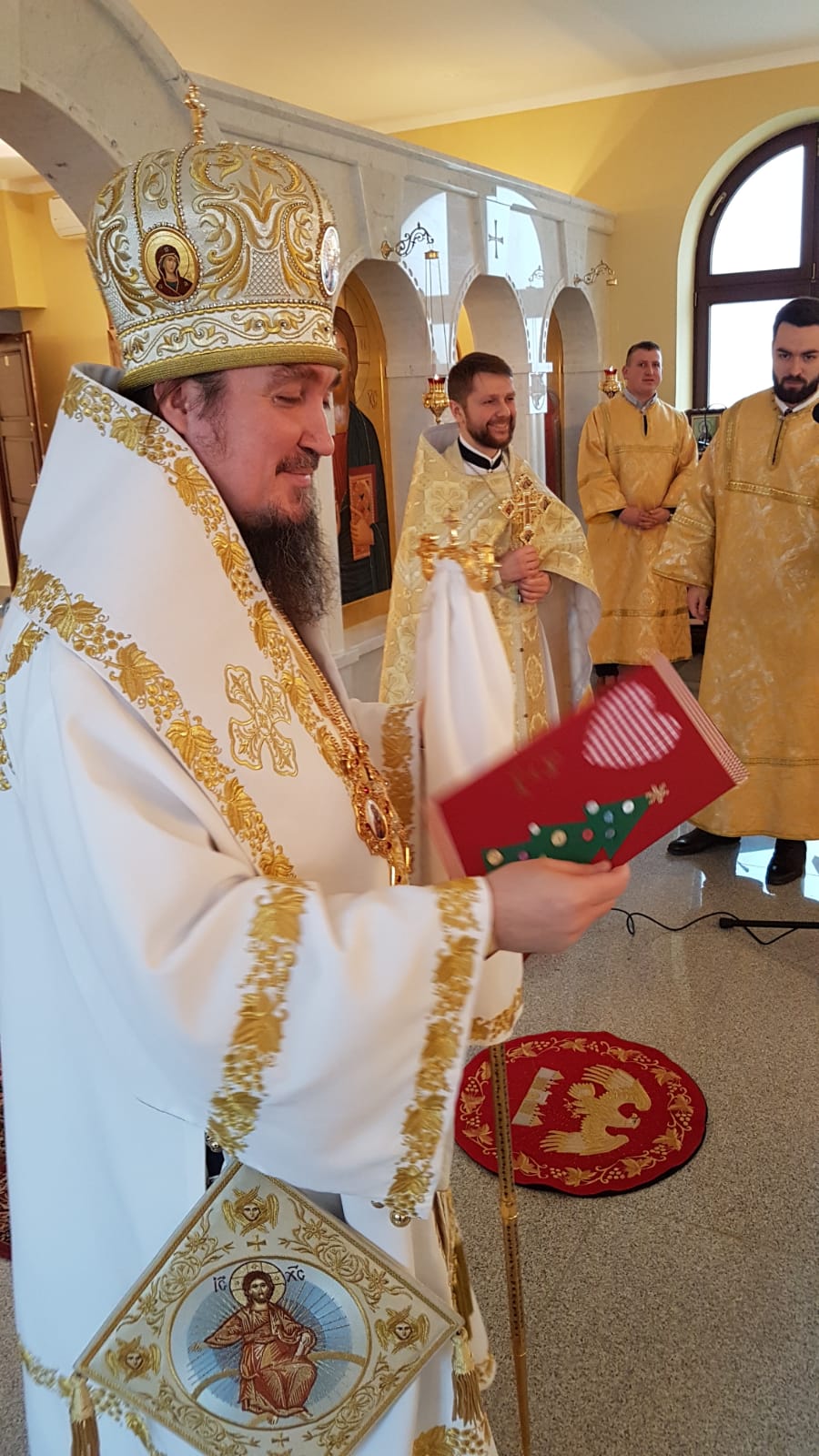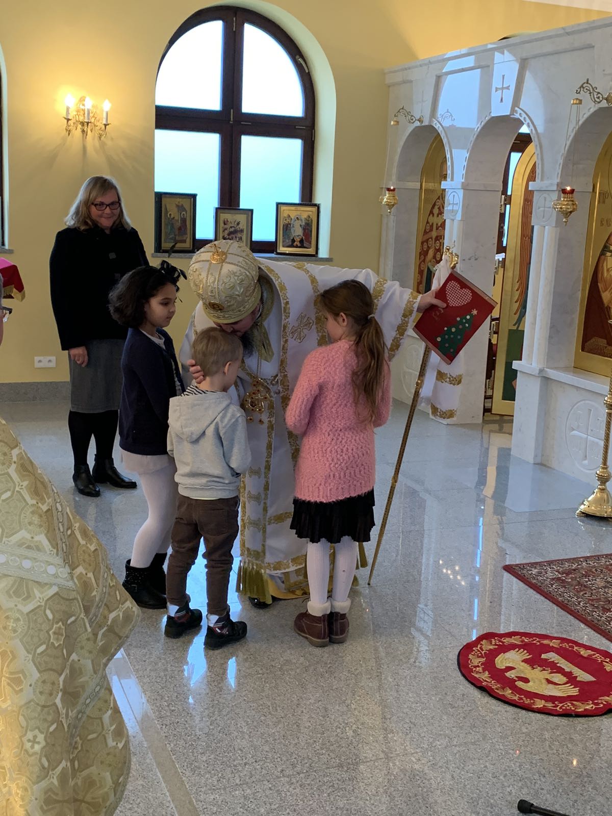 Po liturgii abp Jerzy pozdrowił Jubilata ks. prot. Tomasza Rubczewskiego z 40 rocznicą urodzin. Dzieci z punktu katechetycznego zaś przygotowały Władyce świąteczną laurkę, którą wręczyły w imieniu własnym, rodziców i katechetów. Po wszystkim wierni spotkali się na niedzielnej kawie w refektarzu ordynariatu. Zdjęcia: Marta Łuksza, Damian Dmitruk