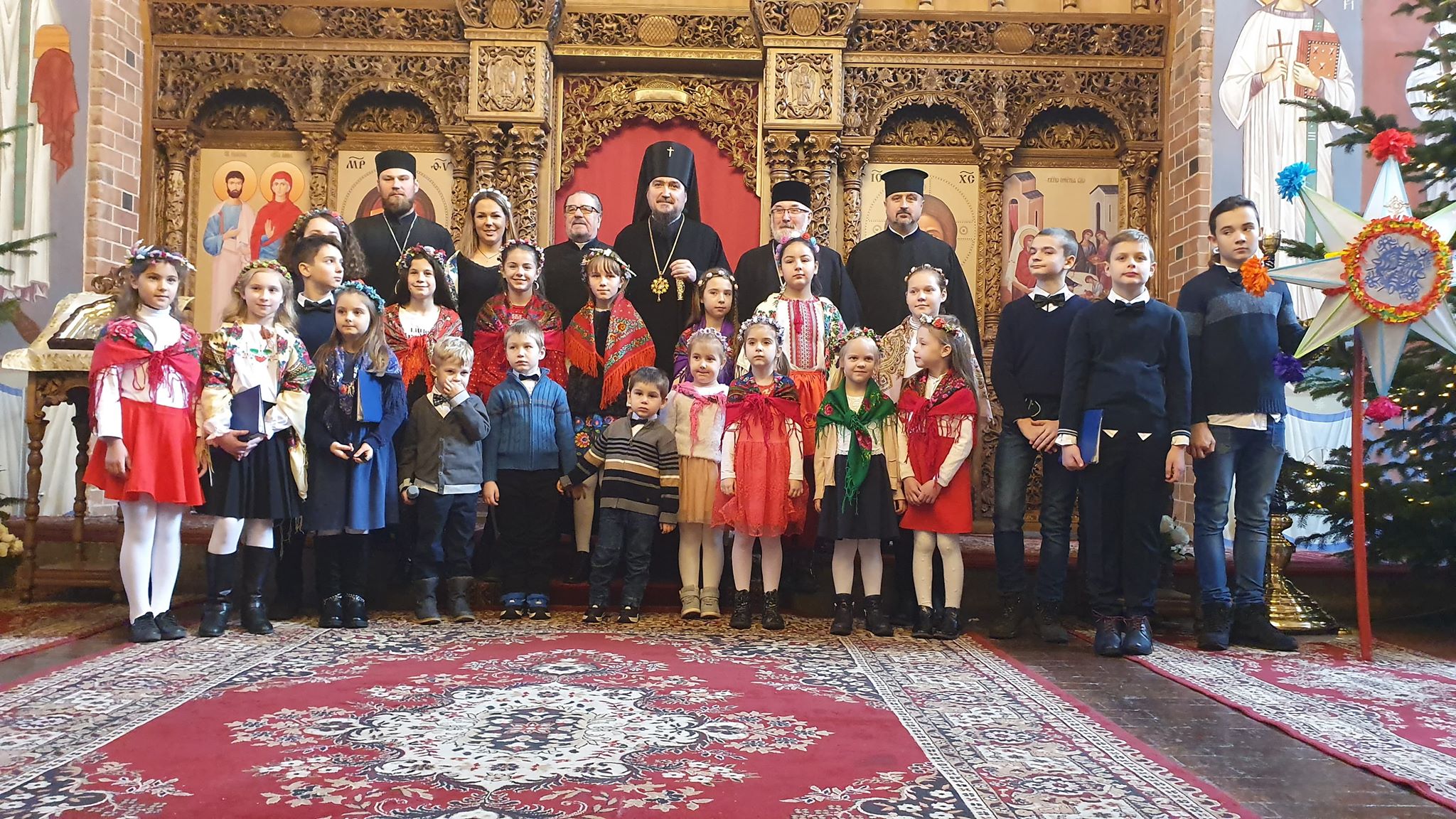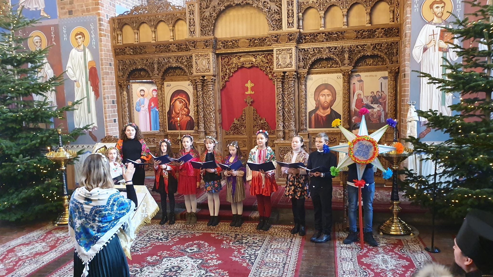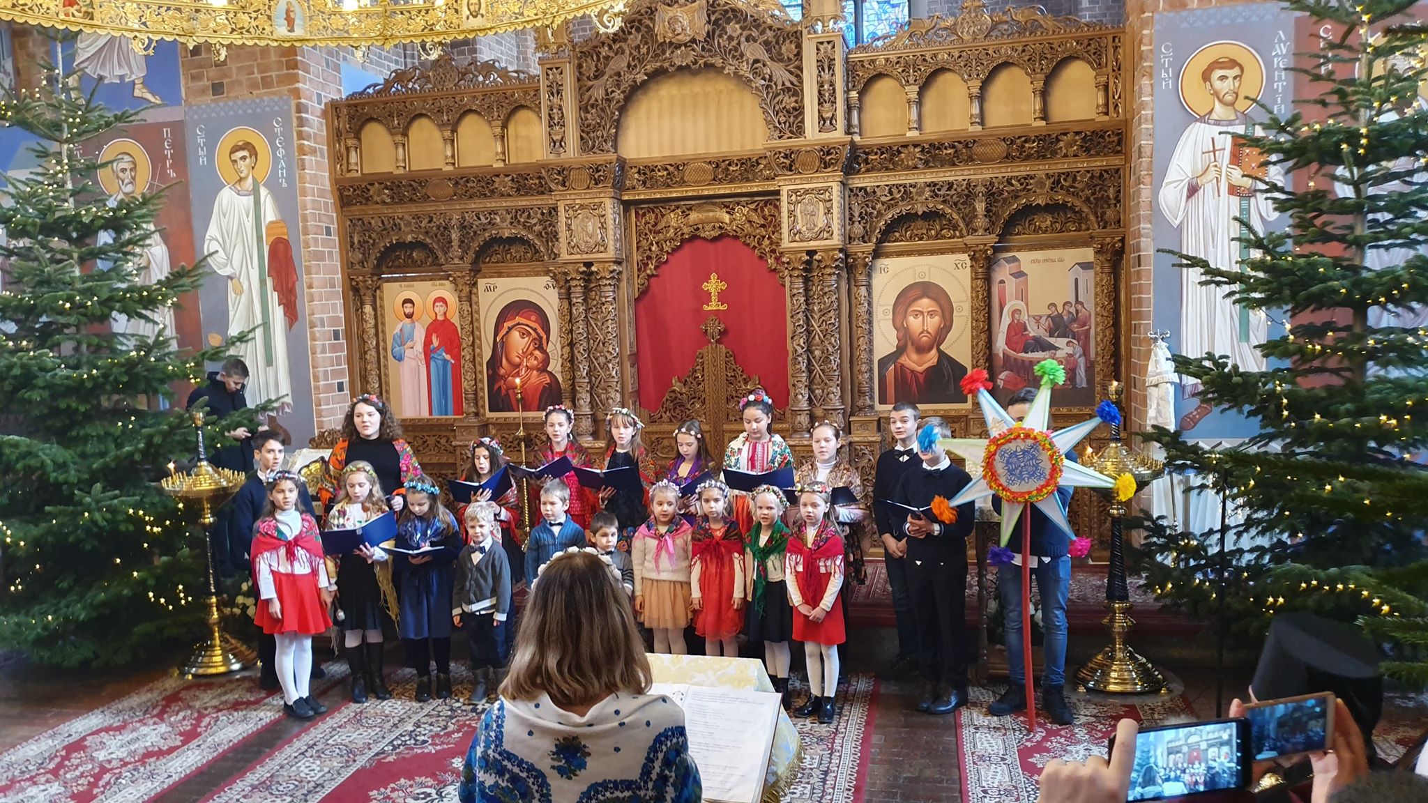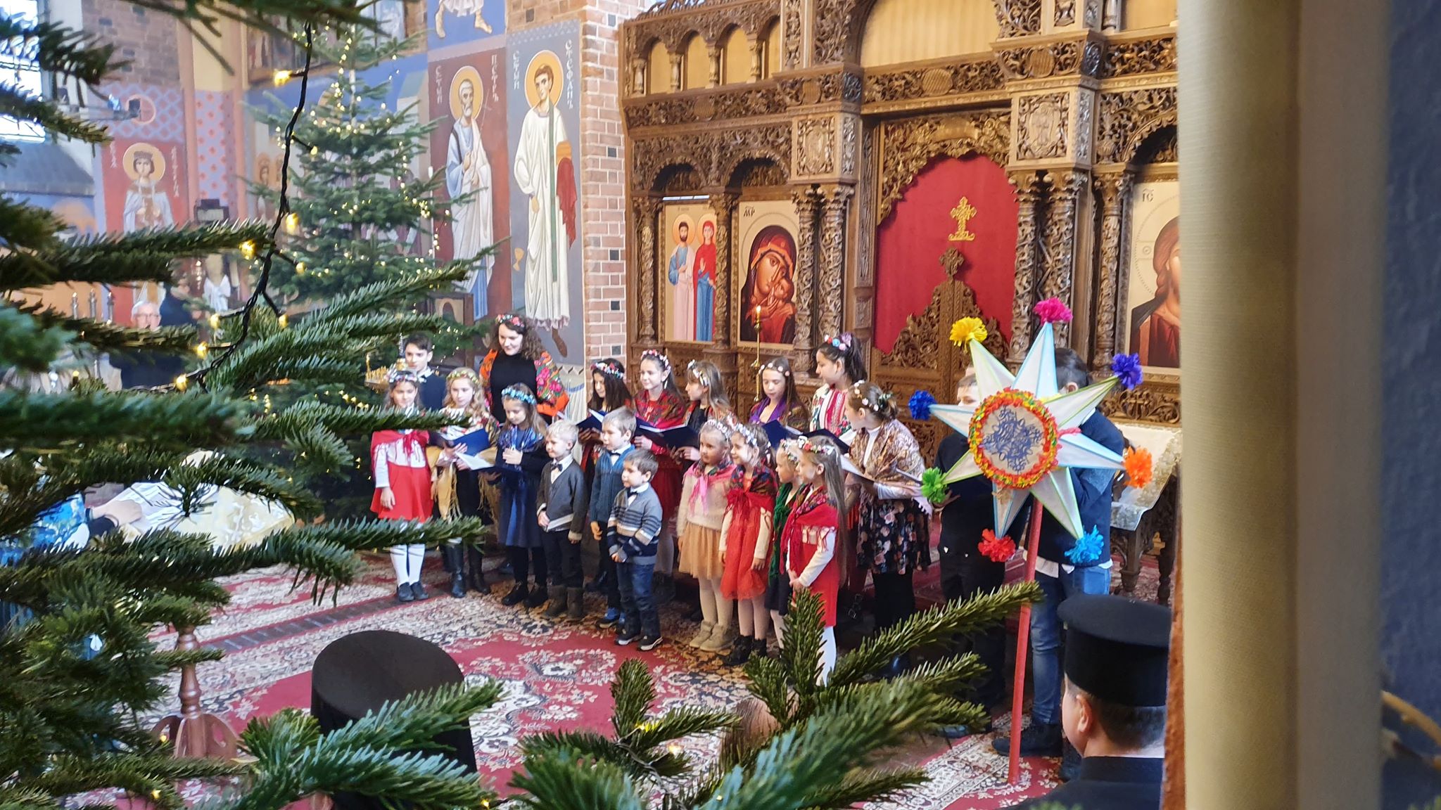 W tym roku dzieci wykonały szereg utworów, rozpoczynając od troparionu święta. Kolędy przeplatane z wierszykami i życzeniami od najmłodszych wywołały podziw i łzy wzruszenia. Dzieci śpiewały w trzech konfiguracjach, grupa młodsza i starsza oraz obie połączone w jeden chór. Pięknym akcentem było wspólne wykonanie przez wszystkich obecnych w Cerkwi kolędy “Nebo i zemla”.