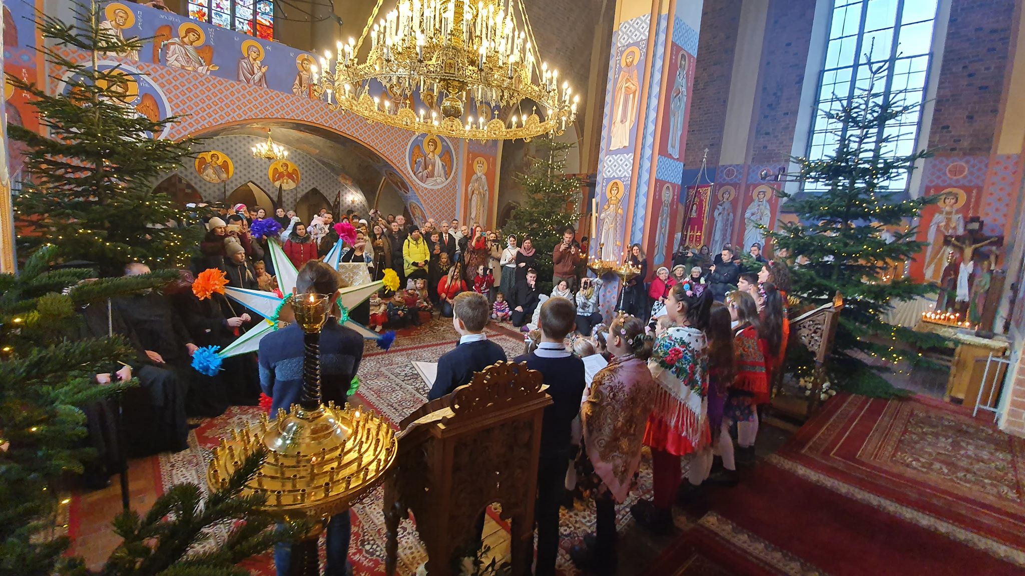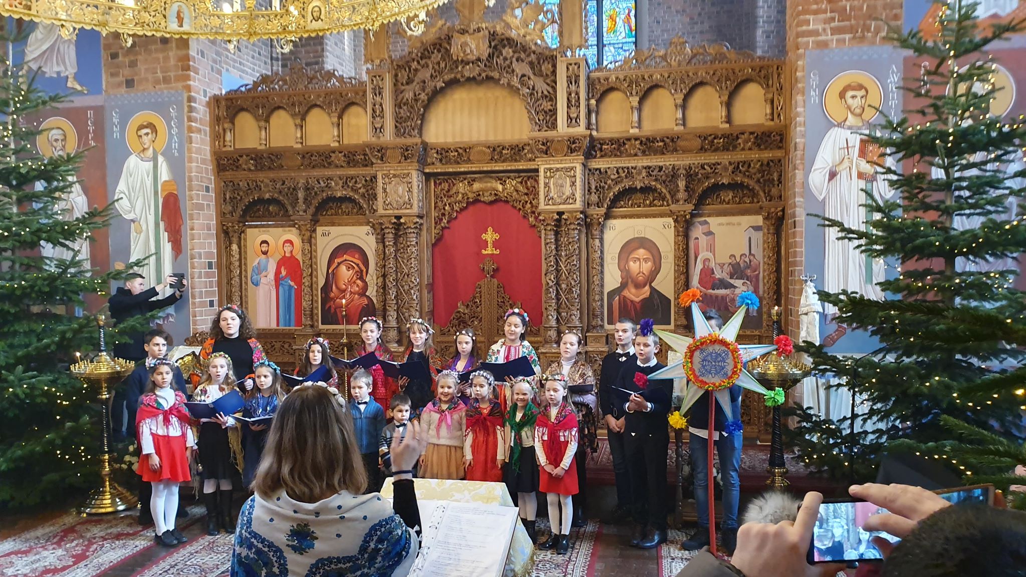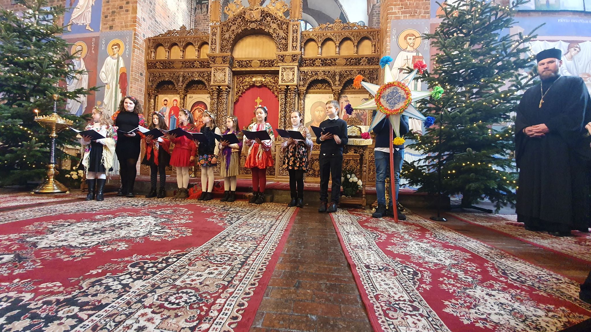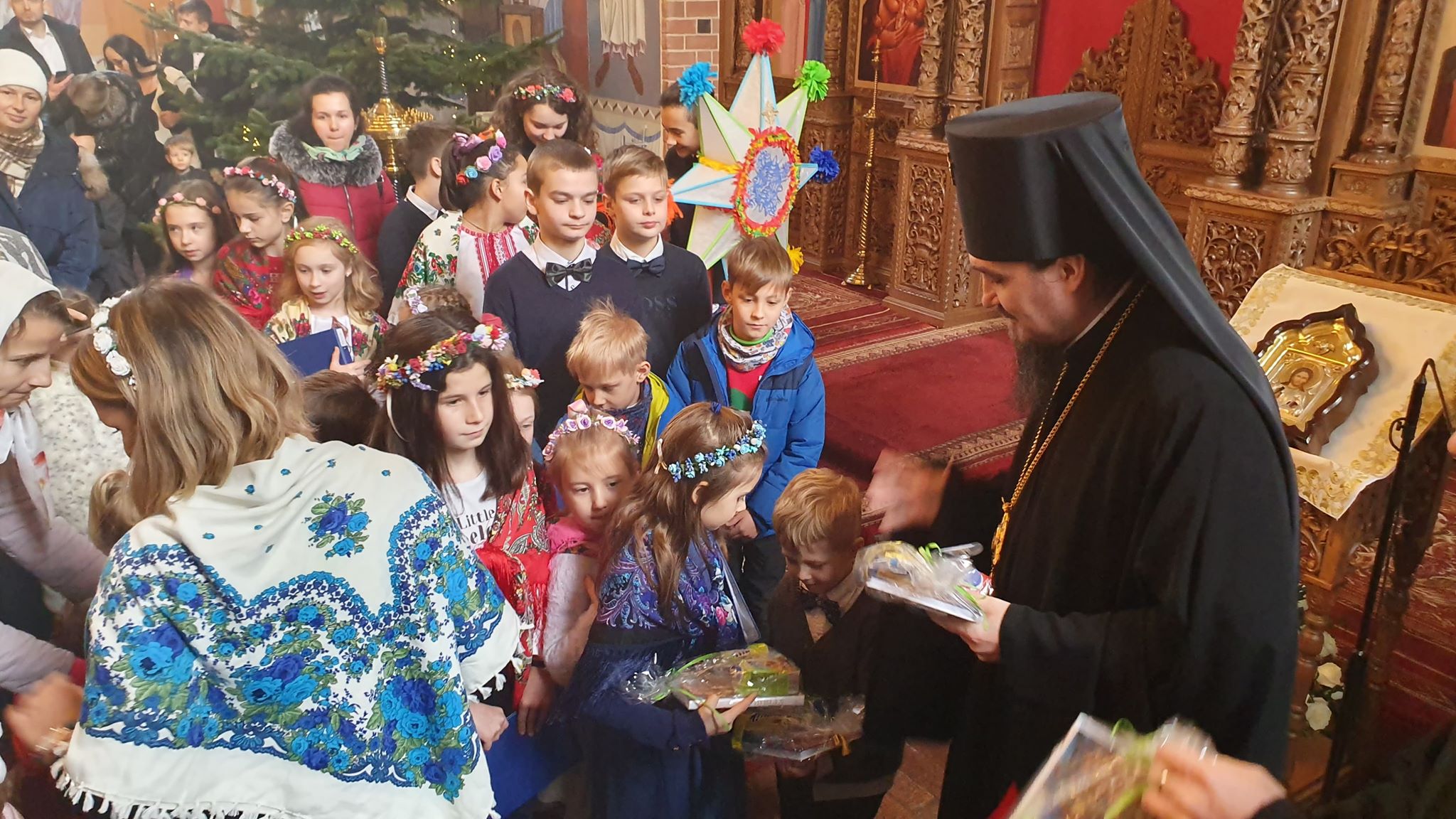 W tym roku dzieci wykonały szereg utworów, rozpoczynając od troparionu święta. Kolędy przeplatane z wierszykami i życzeniami od najmłodszych wywołały podziw i łzy wzruszenia. Dzieci śpiewały w trzech konfiguracjach, grupa młodsza i starsza oraz obie połączone w jeden chór. Pięknym akcentem było wspólne wykonanie przez wszystkich obecnych w Cerkwi kolędy “Nebo i zemla”.