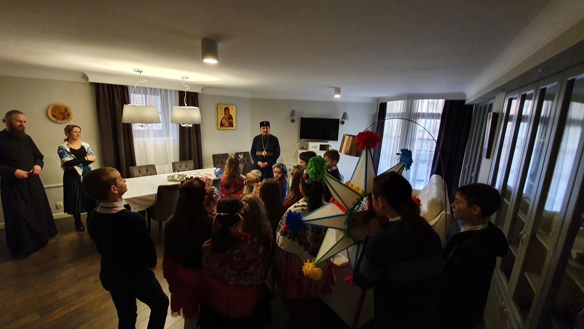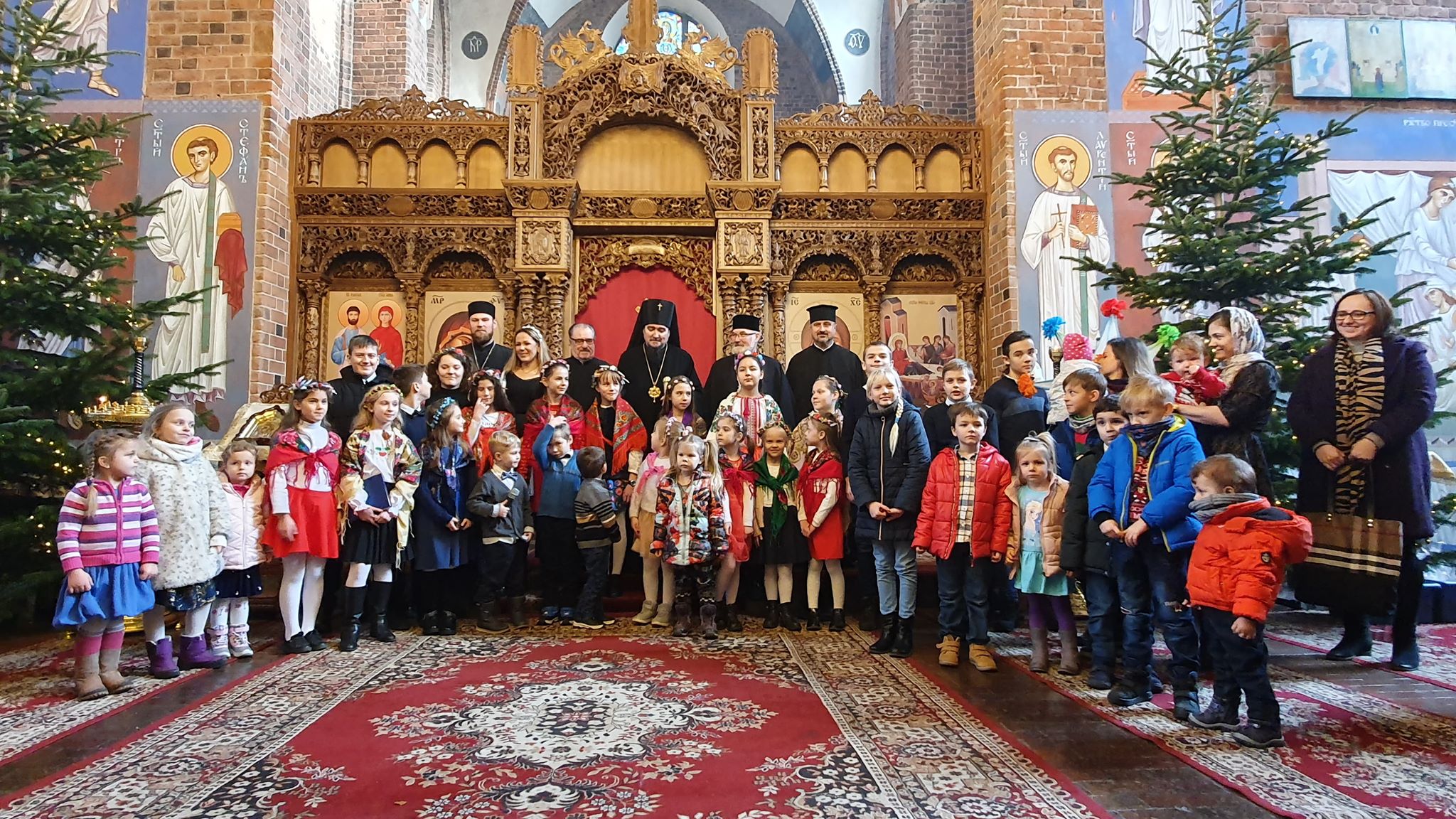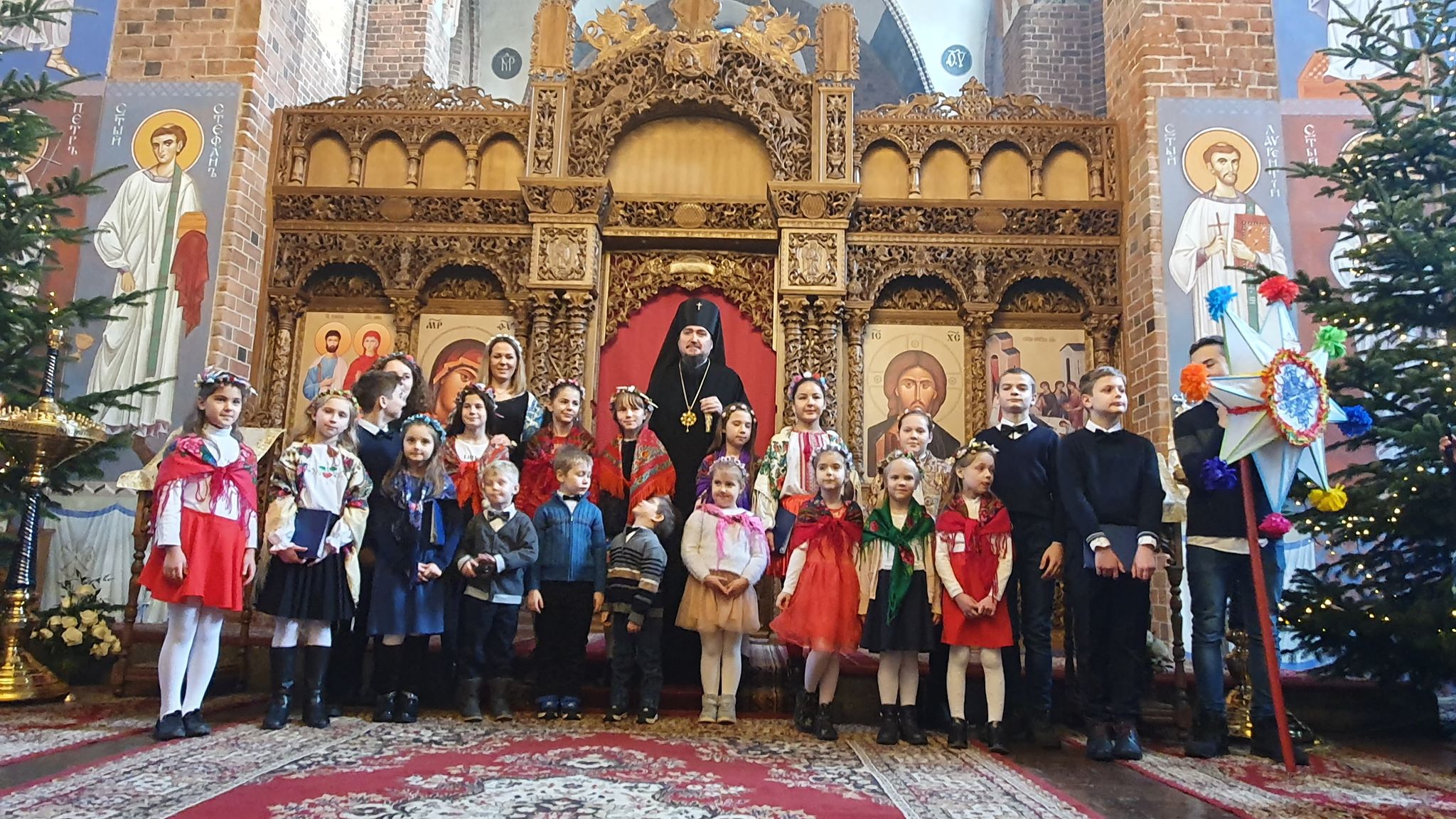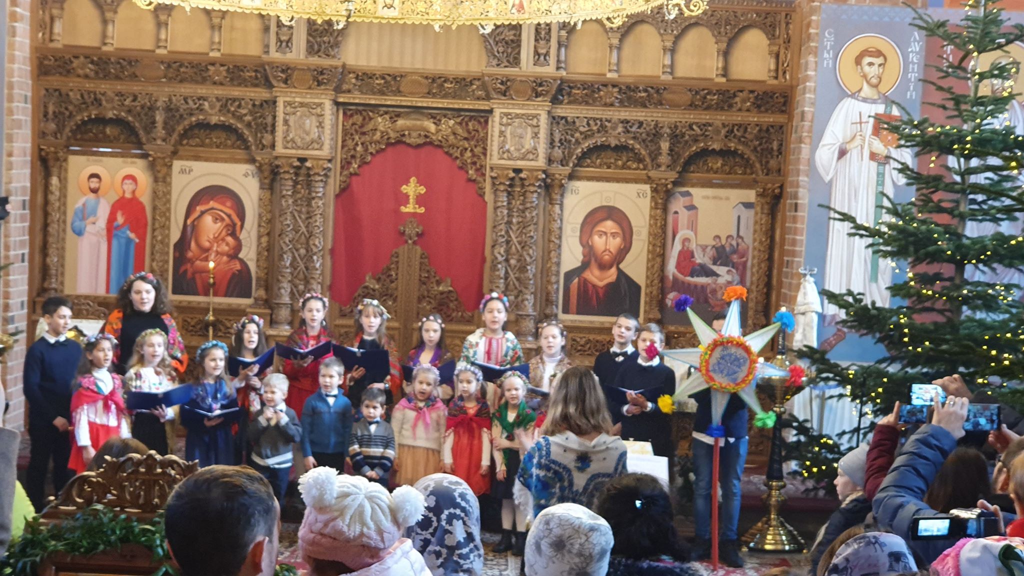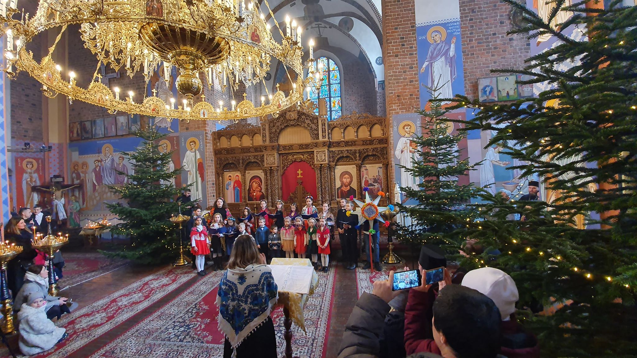 W tym roku dzieci wykonały szereg utworów, rozpoczynając od troparionu święta. Kolędy przeplatane z wierszykami i życzeniami od najmłodszych wywołały podziw i łzy wzruszenia. Dzieci śpiewały w trzech konfiguracjach, grupa młodsza i starsza oraz obie połączone w jeden chór. Pięknym akcentem było wspólne wykonanie przez wszystkich obecnych w Cerkwi kolędy “Nebo i zemla”.
