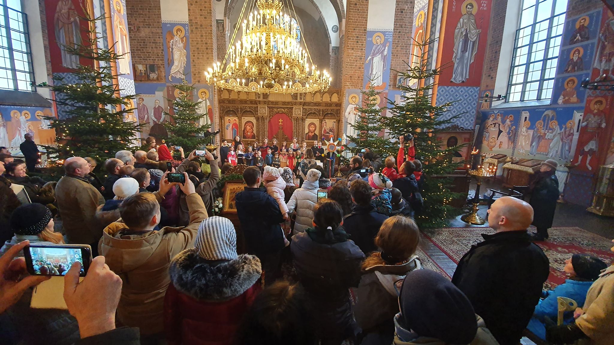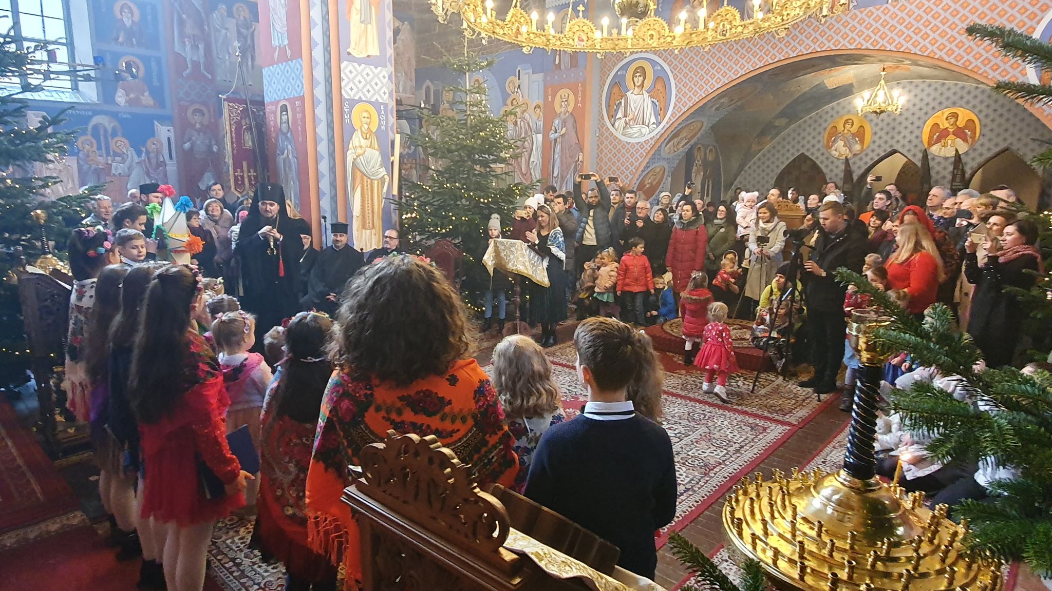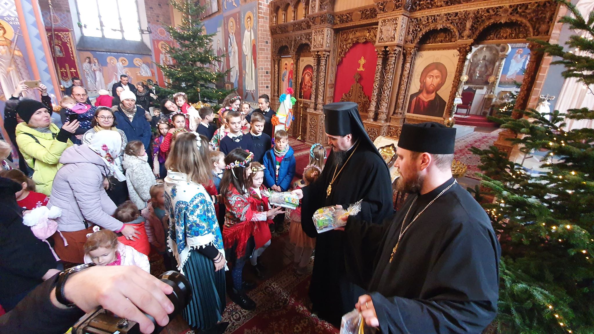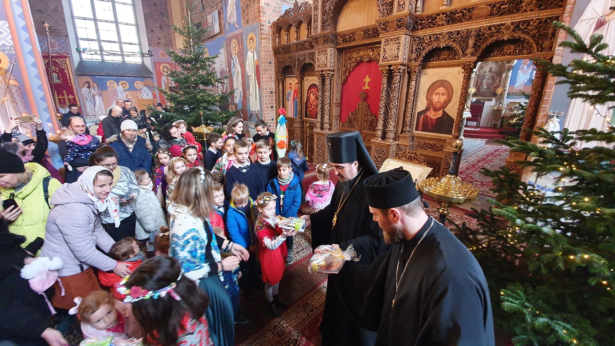 W tym roku dzieci wykonały szereg utworów, rozpoczynając od troparionu święta. Kolędy przeplatane z wierszykami i życzeniami od najmłodszych wywołały podziw i łzy wzruszenia. Dzieci śpiewały w trzech konfiguracjach, grupa młodsza i starsza oraz obie połączone w jeden chór. Pięknym akcentem było wspólne wykonanie przez wszystkich obecnych w Cerkwi kolędy “Nebo i zemla”.