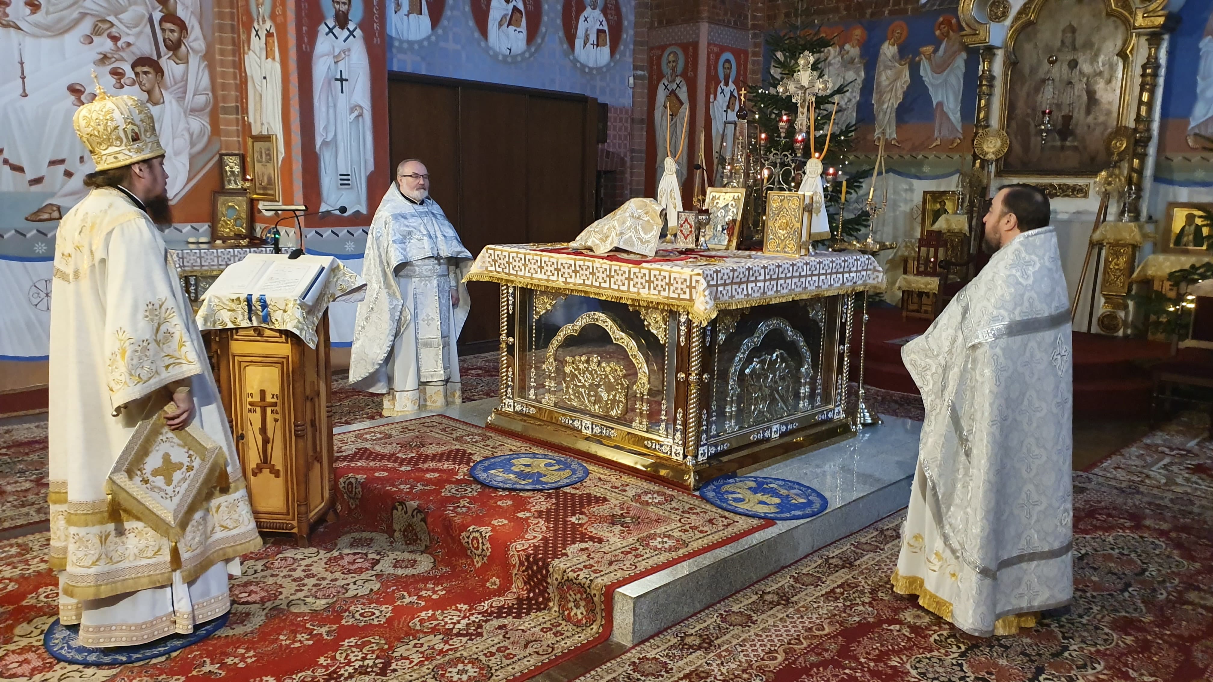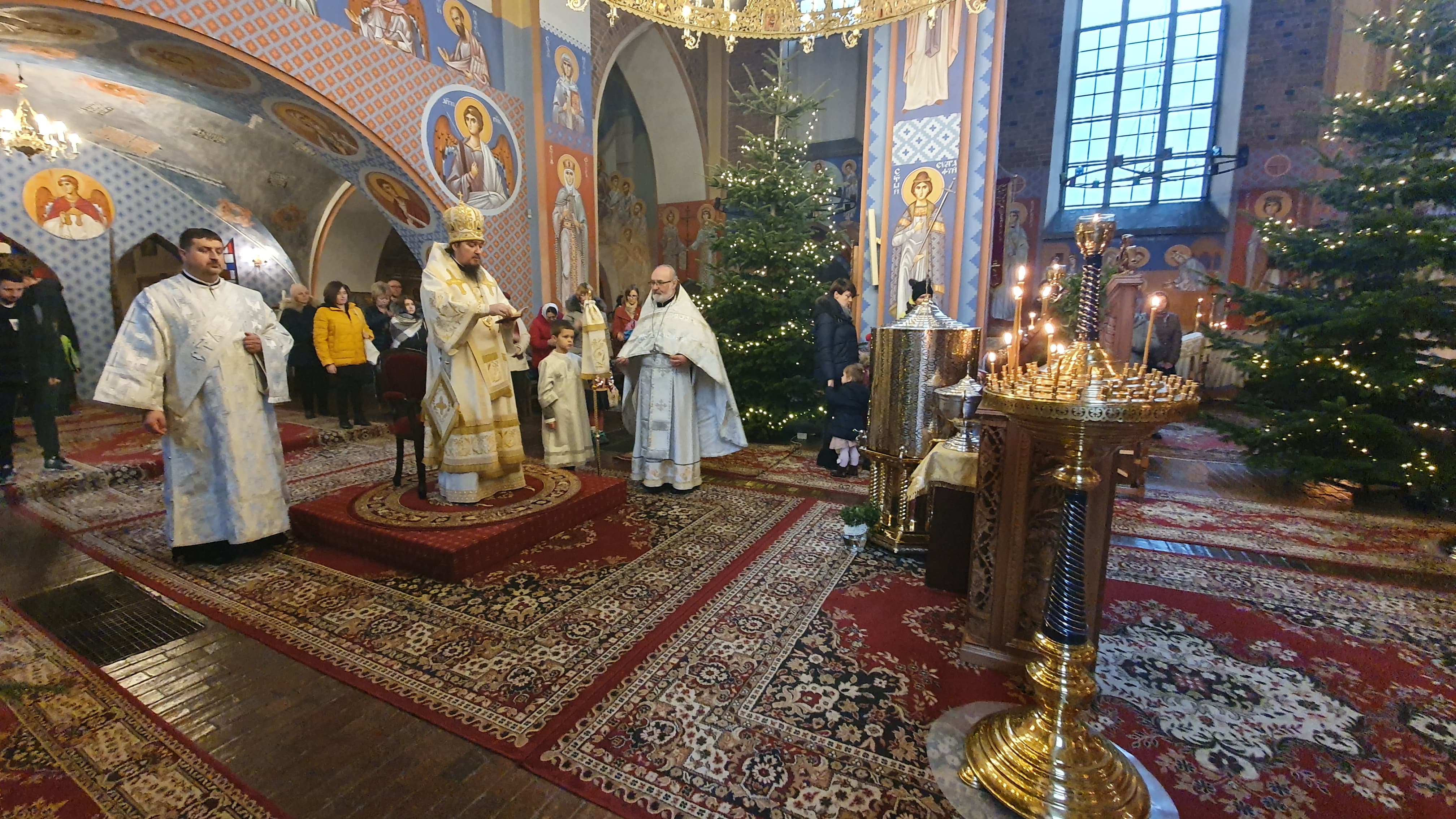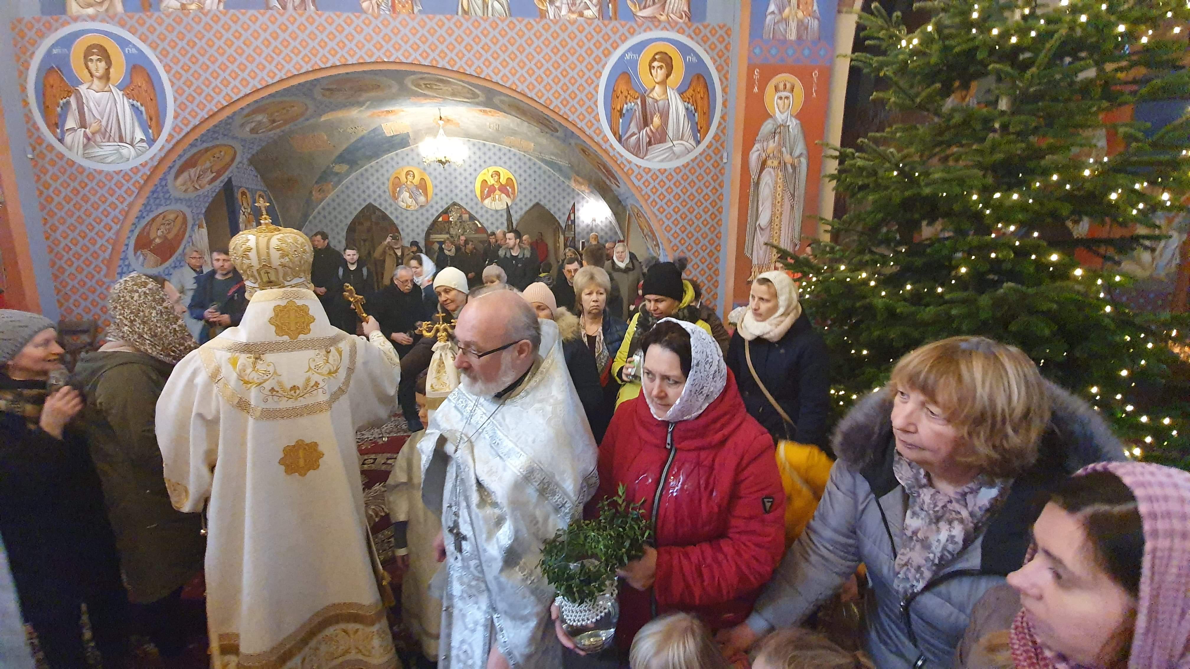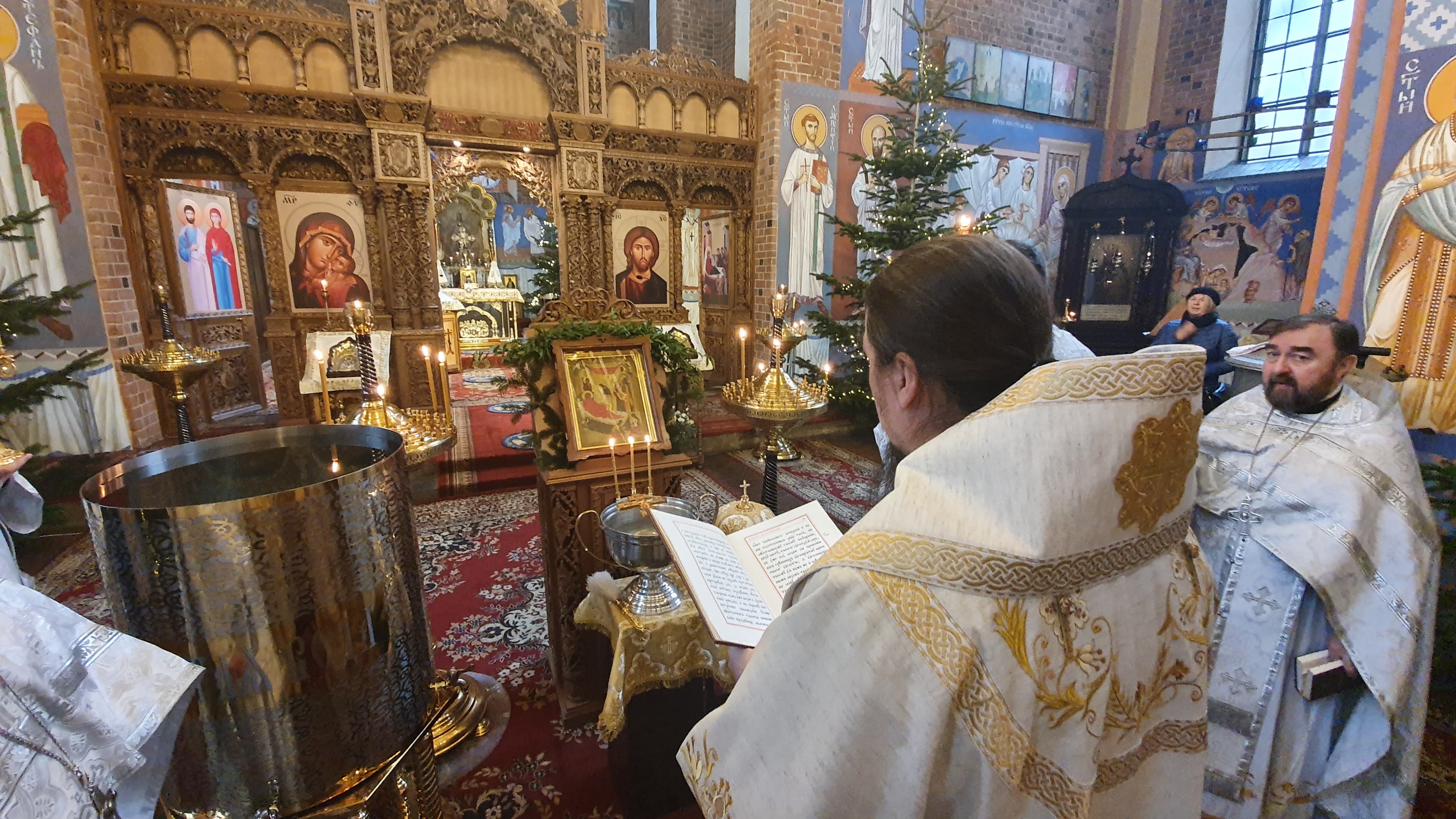 Po nabożeństwie Arcybiskup Jerzy zwrócił się do wiernych z homilią, w której zwrócił uwagę, że do IV wieku Boże Narodzenie i Chrzest Pański stanowiły jedno - święto Epifanii, cs. Bogojawlenija. Zwrócił również uwagę na charakterystykę chrztu Janowego. Podkreślił, że symbolika gołębia, pod postacią którego objawił się Święty Duch ma swoje głębokie biblijne znaczenie. Jest on symbolem nie tylko pokoju, ale również zbawienia, gdyż to właśnie gołębica wypuszczona z arki przez Noego powróciła ze świeżą gałązką, zwiastując tym samym koniec potopu. Arcybiskup zwrócił również uwagę na to, że chrzest dzieli ziemskie życie Chrystusa na „przed” i „po”. Przed chrztem Jezus był nikomu nie znaną osobą, jak mniemano synem cieśli, chrzest Janowy był zaś punktem zwrotnym i zarazem początkiem Mesjańskiej misji Syna Bożego. Władyka podkreślał, że chrzest był momentem, w którym Chrystus, będąc bezgrzesznym, dobrowolnie wziął na siebie brzemię ludzkiego upadku, gdyż właśnie w Jordanie ludzie obmywali się ze swoich grzechów, przychodząc do Jana Chrzciciela. Kończąc swoją homilię, Władyka zwrócił uwagę na wielką świętość wody uświęcanej w przeddzień oraz w dzień Chrztu Pańskiego i przypomniał z jaką czcią, szacunkiem i pobożnością należy z nią postępować.