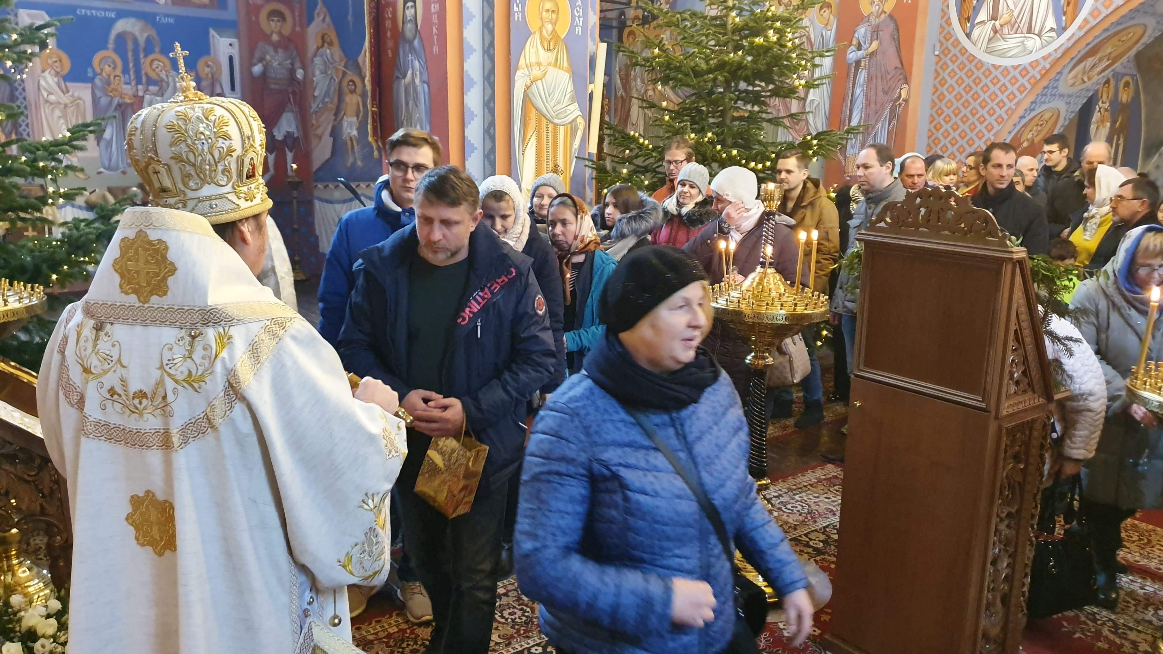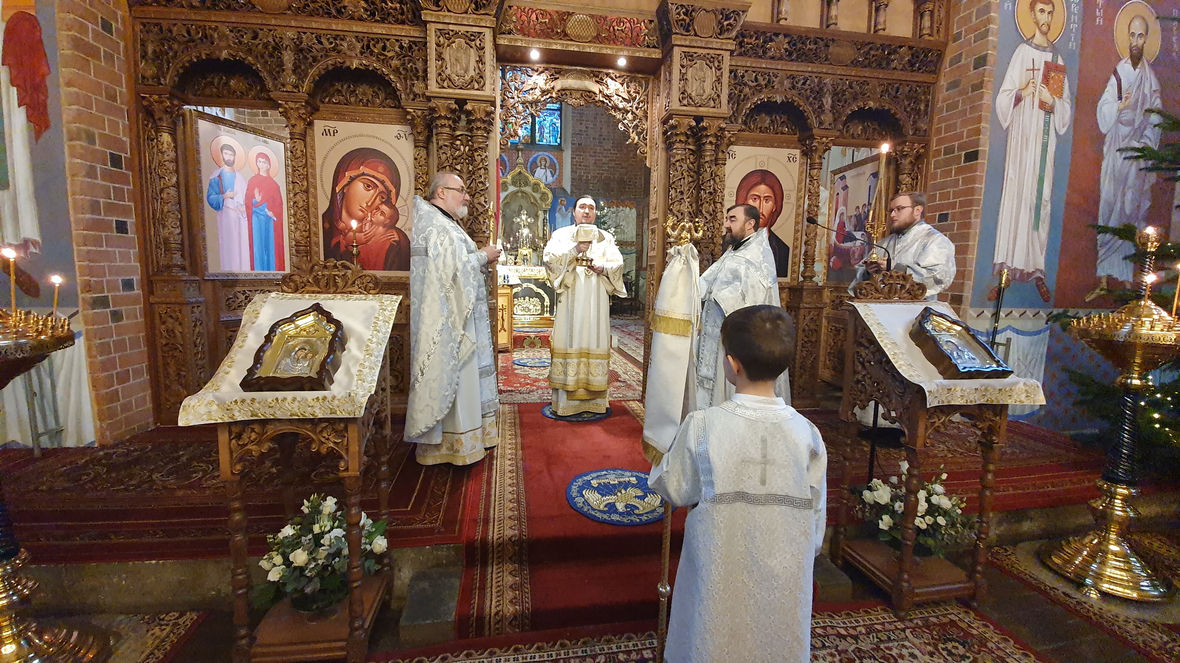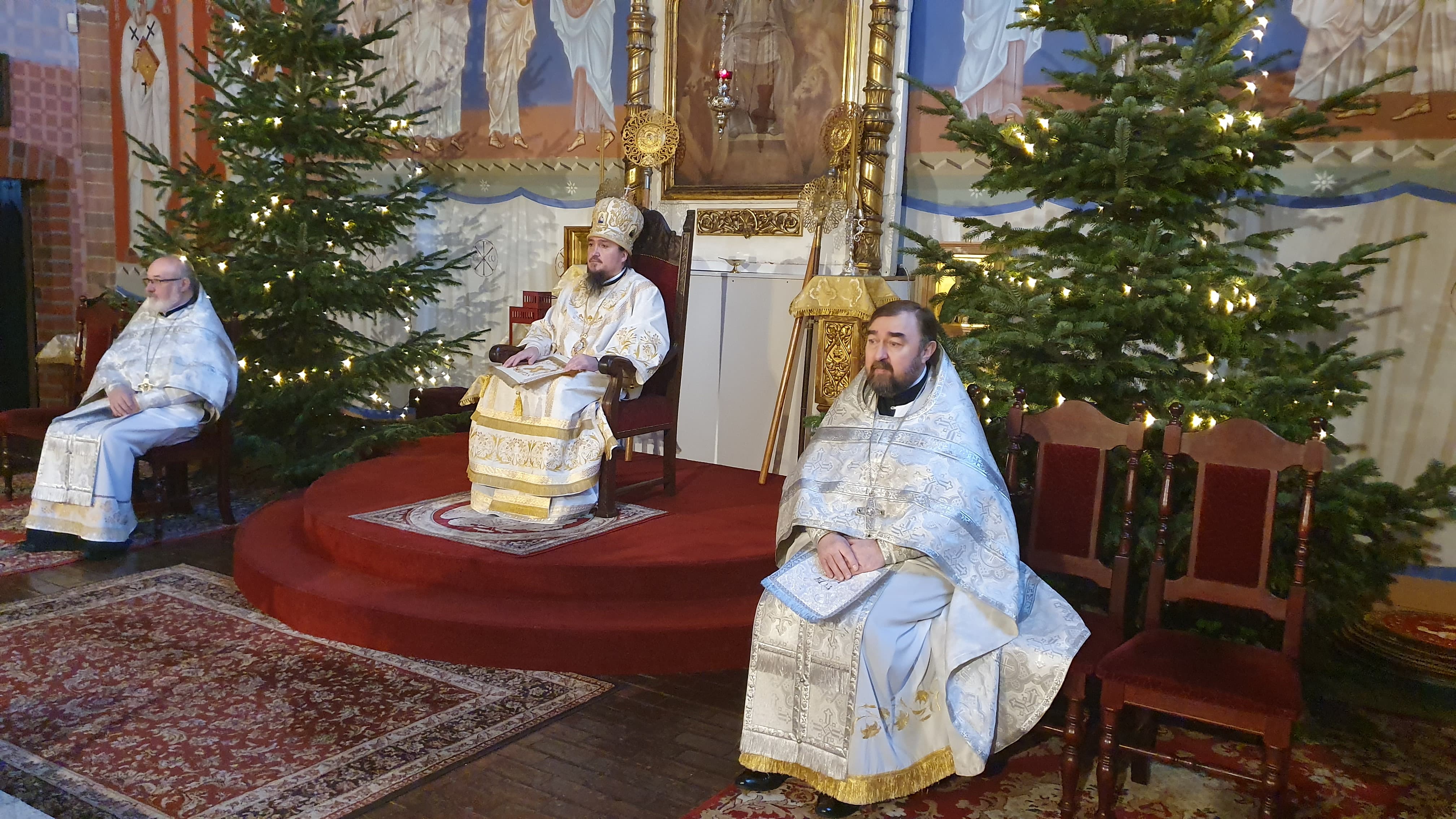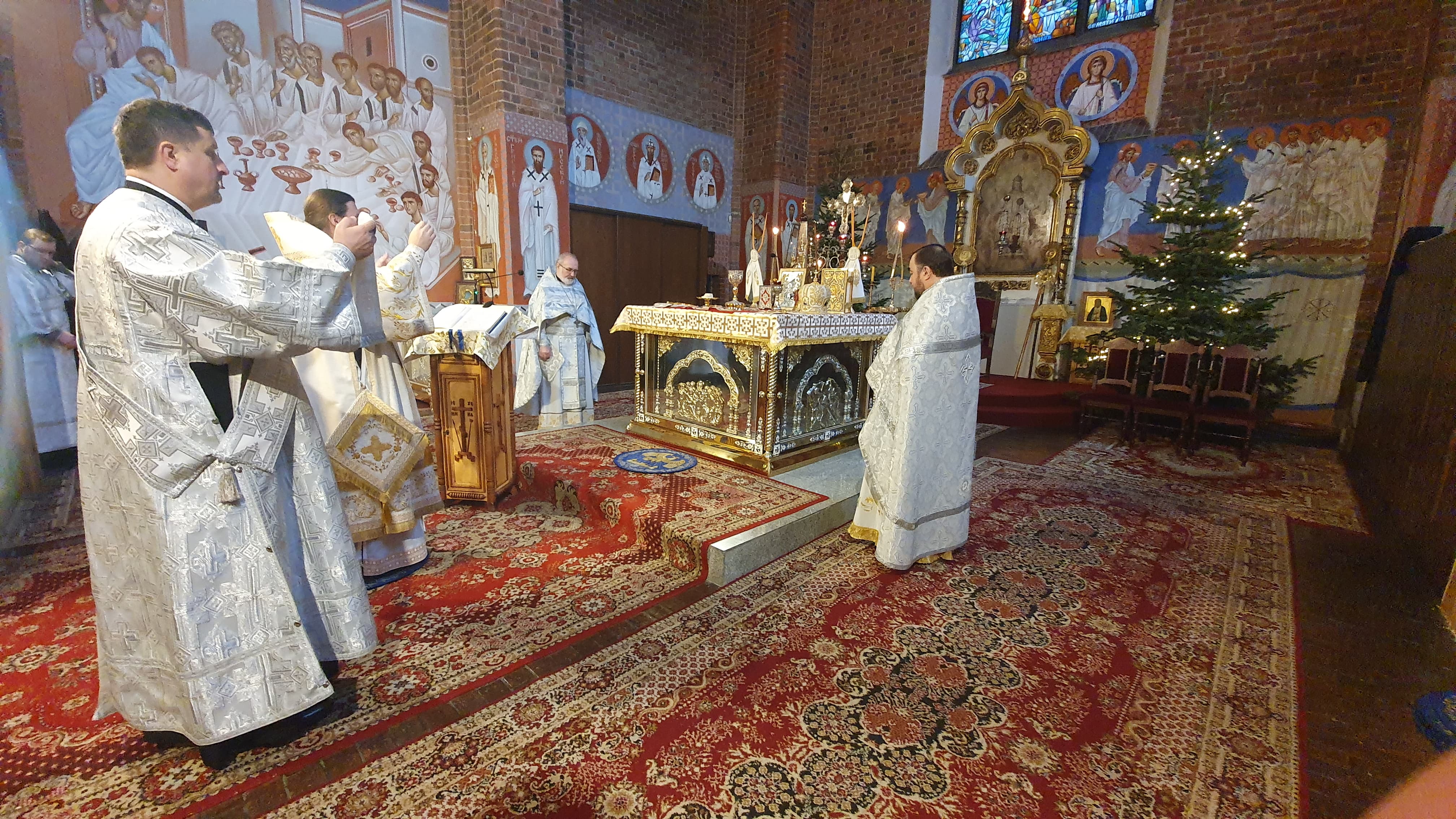 Po nabożeństwie Arcybiskup Jerzy zwrócił się do wiernych z homilią, w której zwrócił uwagę, że do IV wieku Boże Narodzenie i Chrzest Pański stanowiły jedno - święto Epifanii, cs. Bogojawlenija. Zwrócił również uwagę na charakterystykę chrztu Janowego. Podkreślił, że symbolika gołębia, pod postacią którego objawił się Święty Duch ma swoje głębokie biblijne znaczenie. Jest on symbolem nie tylko pokoju, ale również zbawienia, gdyż to właśnie gołębica wypuszczona z arki przez Noego powróciła ze świeżą gałązką, zwiastując tym samym koniec potopu. Arcybiskup zwrócił również uwagę na to, że chrzest dzieli ziemskie życie Chrystusa na „przed” i „po”. Przed chrztem Jezus był nikomu nie znaną osobą, jak mniemano synem cieśli, chrzest Janowy był zaś punktem zwrotnym i zarazem początkiem Mesjańskiej misji Syna Bożego. Władyka podkreślał, że chrzest był momentem, w którym Chrystus, będąc bezgrzesznym, dobrowolnie wziął na siebie brzemię ludzkiego upadku, gdyż właśnie w Jordanie ludzie obmywali się ze swoich grzechów, przychodząc do Jana Chrzciciela. Kończąc swoją homilię, Władyka zwrócił uwagę na wielką świętość wody uświęcanej w przeddzień oraz w dzień Chrztu Pańskiego i przypomniał z jaką czcią, szacunkiem i pobożnością należy z nią postępować.