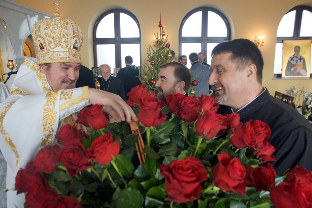 W imieniu duchowieństwa oraz wiernych diecezji wrocławsko - szczecińskiej Władyce Jerzemu życzenia złożyli proboszcz wrocławskiej katedry ks. Jerzy Szczur oraz sekretarz kancelarii arcybiskupiej protodiakon Mieczysław Oleśniewicz.
