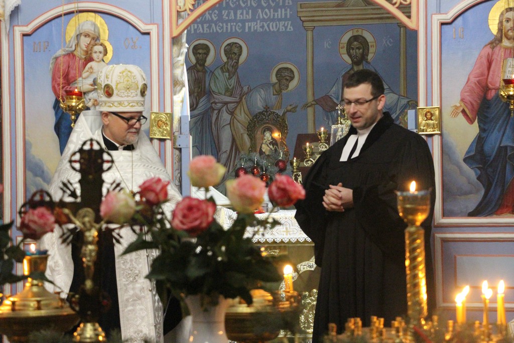 Wieczernię celebrowali ks. Marek Bonifatiuk, proboszcz Parafii Prawosławnej w Zgorzelcu, ks. dr Dariusz Ciołka, proboszcz Parafii Prawosławnej w Rudnej i Głogowie oraz ks. prot. Sławomir Sorokanycz, proboszcz Parafii Prawosławnej w Studzionkach.