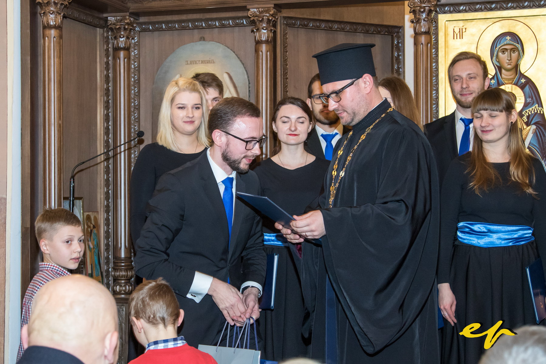 Koncert kolęd w stargardzkiej cerkwi poprowadził proboszcz prawosławnej parafii ks. Jarosław Biryłko. Jak powiedział: “Czas Świąt Bożego Narodzenia, Nowego Roku, Święta Epifanii to szczególny czas szczególnej miłości, pokoju, nadziei i wiary. Już po raz dziesiąty tu, w stargardzkiej cerkwi św. Apostołów Piotra i Pawła, na ziemiach tak różnorodnych kulturowo spotykamy się, by dzielić radość wcielenia Syna Bożego w kolędach. Kolędy są często folklorem wzbogaconym i oświęconym przez świętą tradycję. Koncert jest ważnym wydarzeniem, ponieważ odbywa się w szczególnym okresie, w okresie tygodnia modlitw o jedność chrześcijan. Rokrocznie tym koncertem kończymy tydzień modlitw. My także chcemy rokrocznie zanosić nasze modlitwy, spotykać się i jednoczyć w duchu jedności chrześcijańskiej”.