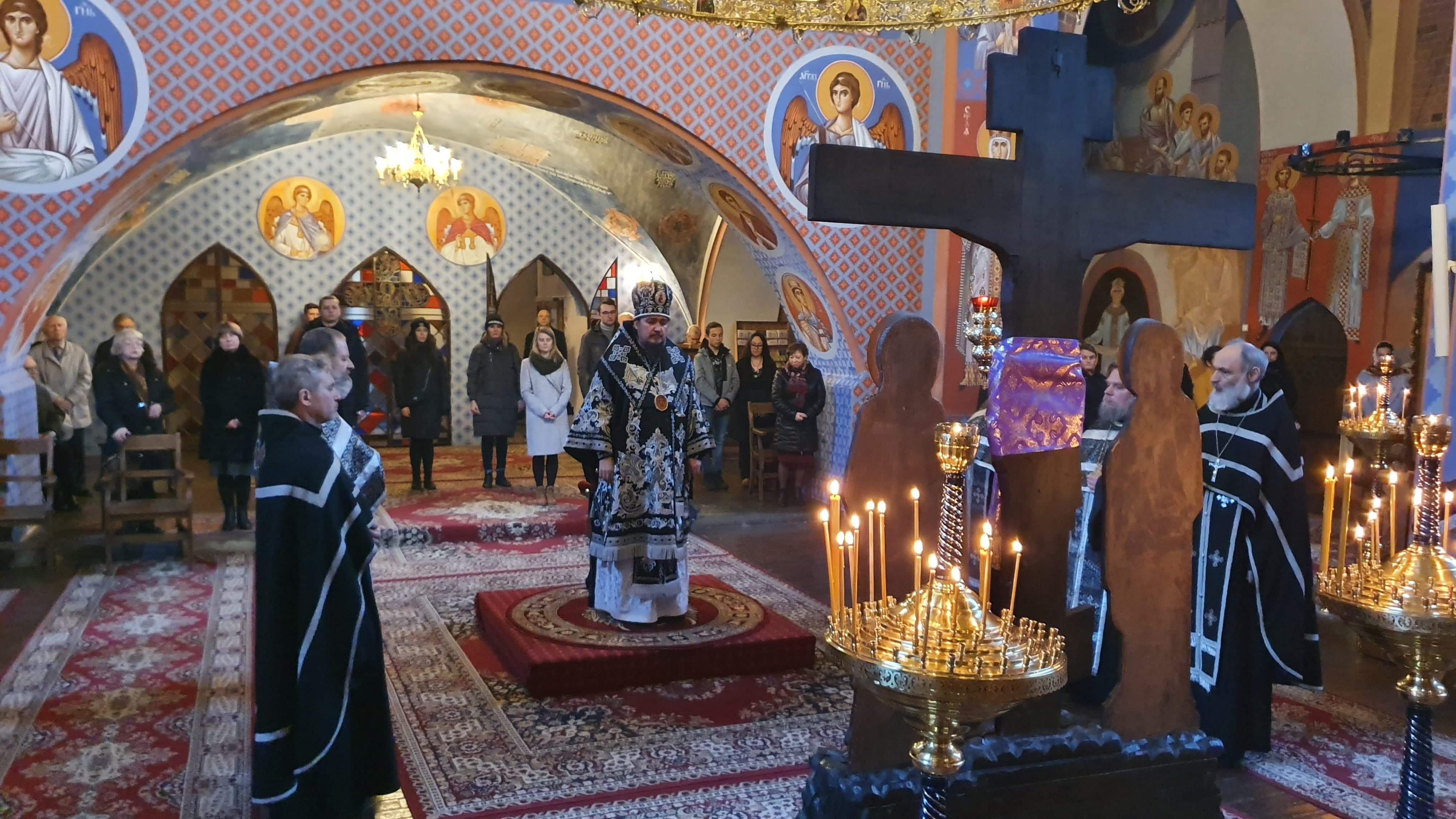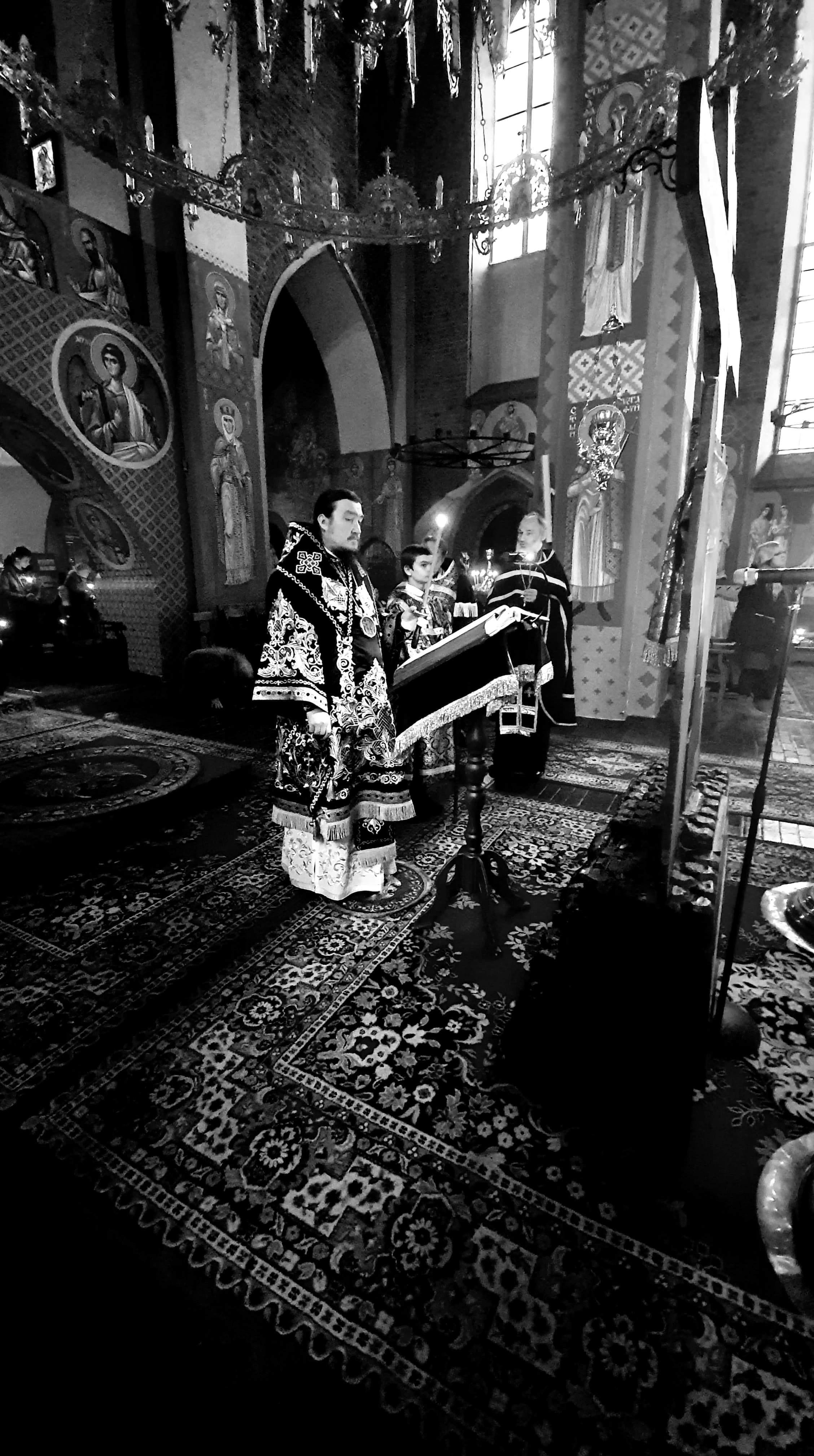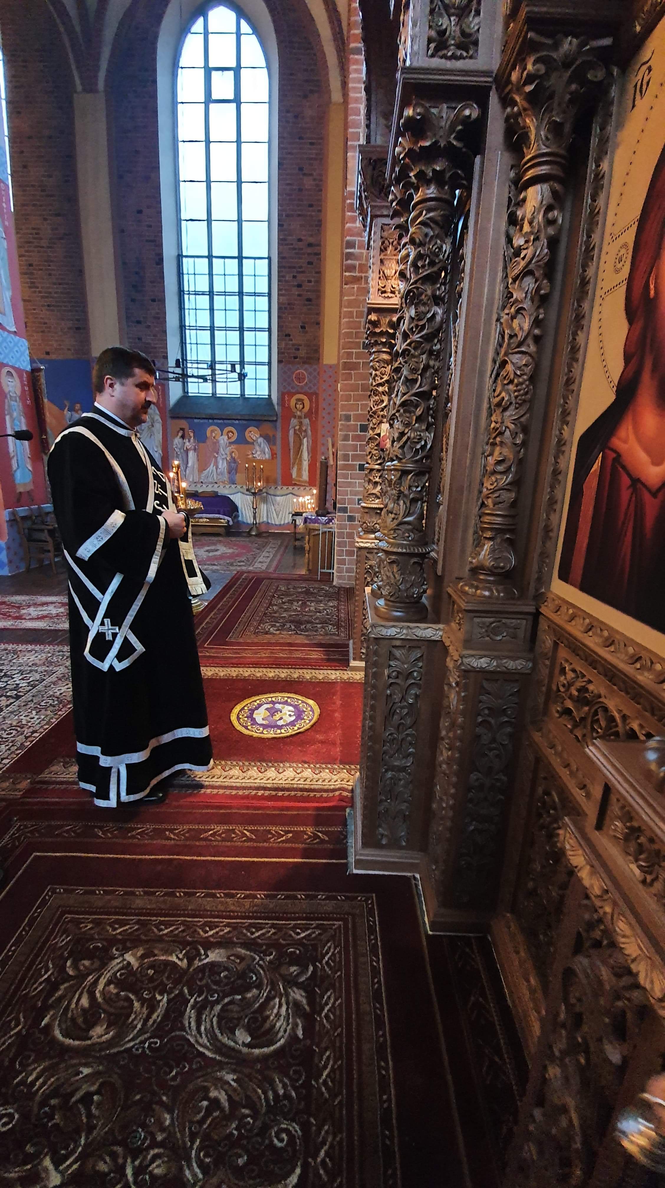 Hierarsze asystowało duchowieństwo obu wrocławskich parafii. Podczas nabożeństwa, na środku świątyni przed Ukrzyżowaniem (Raspiatiem), Władyka odczytał fragment z Ewangelii wg św. Mateusza.