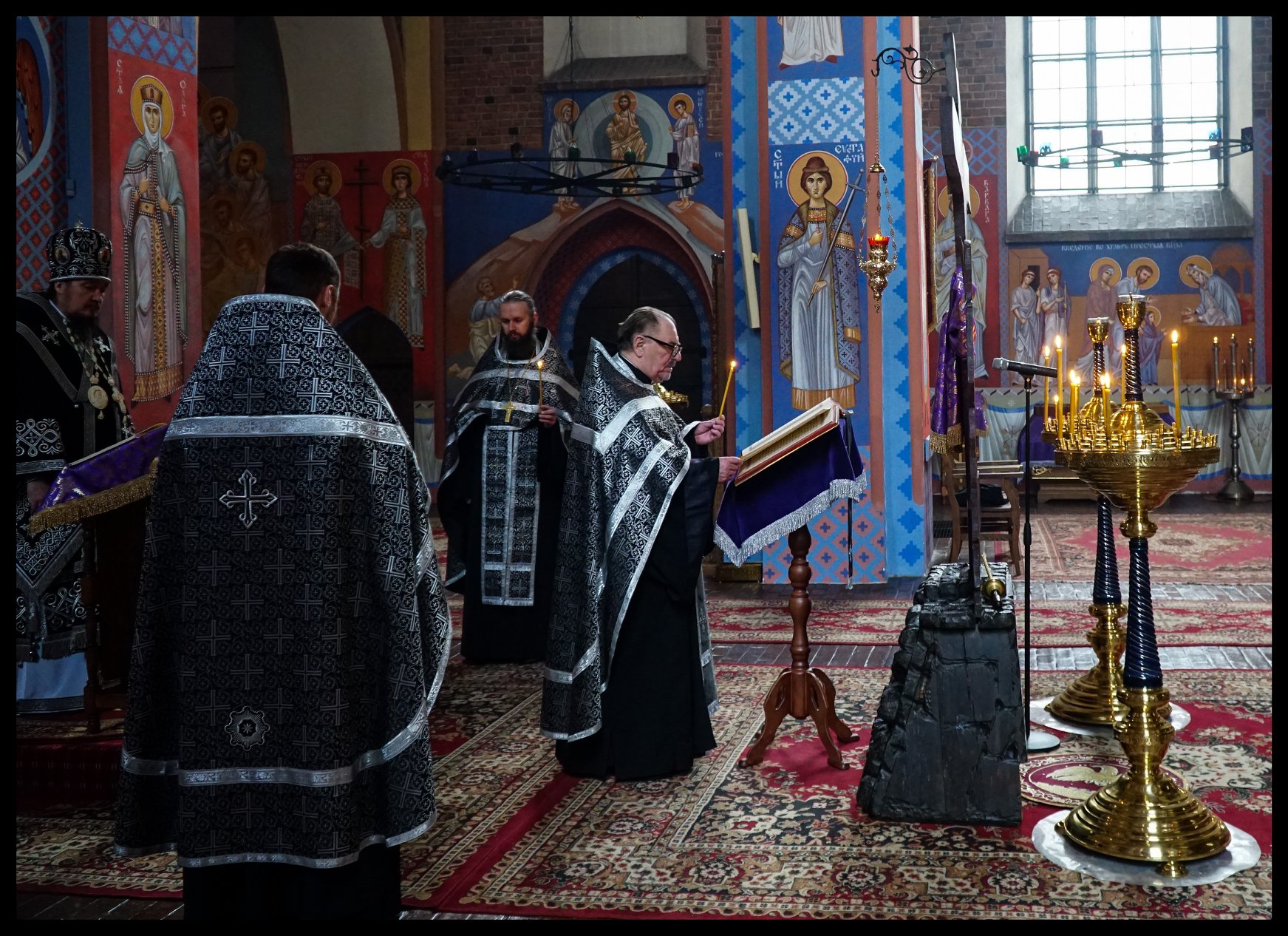 Wieczorem Władyka przewodniczył nabożeństwu jutrzni z czytaniem 12 fragmentów Ewangelii opowiadających o ostatnich godzinach życia Chrystusa. To wyjątkowe nabożeństwo rozpoczyna Triduum Paschalne Cerkwi Prawosławnej. Jutrznia Wielkiego Piątku, sprawowana zwyczajowo wieczorem poprzedzającego dnia, jest wprowadzeniem w przeżywanie dramatycznych wydarzeń Wielkiego Piątku. Czytane fragmenty Ewangelii mówią o ostatniej wieczerzy, pojmaniu Jezusa w ogrodzie Getsemani, procesie przed żydowskim Sanhedrynem i Piłatem oraz Śmierci na Krzyżu. Ostatnia z czytanych Ewangelii mówi o złożeniu ciała Mesjasza do grobu i zapieczętowaniu go przez strażników.