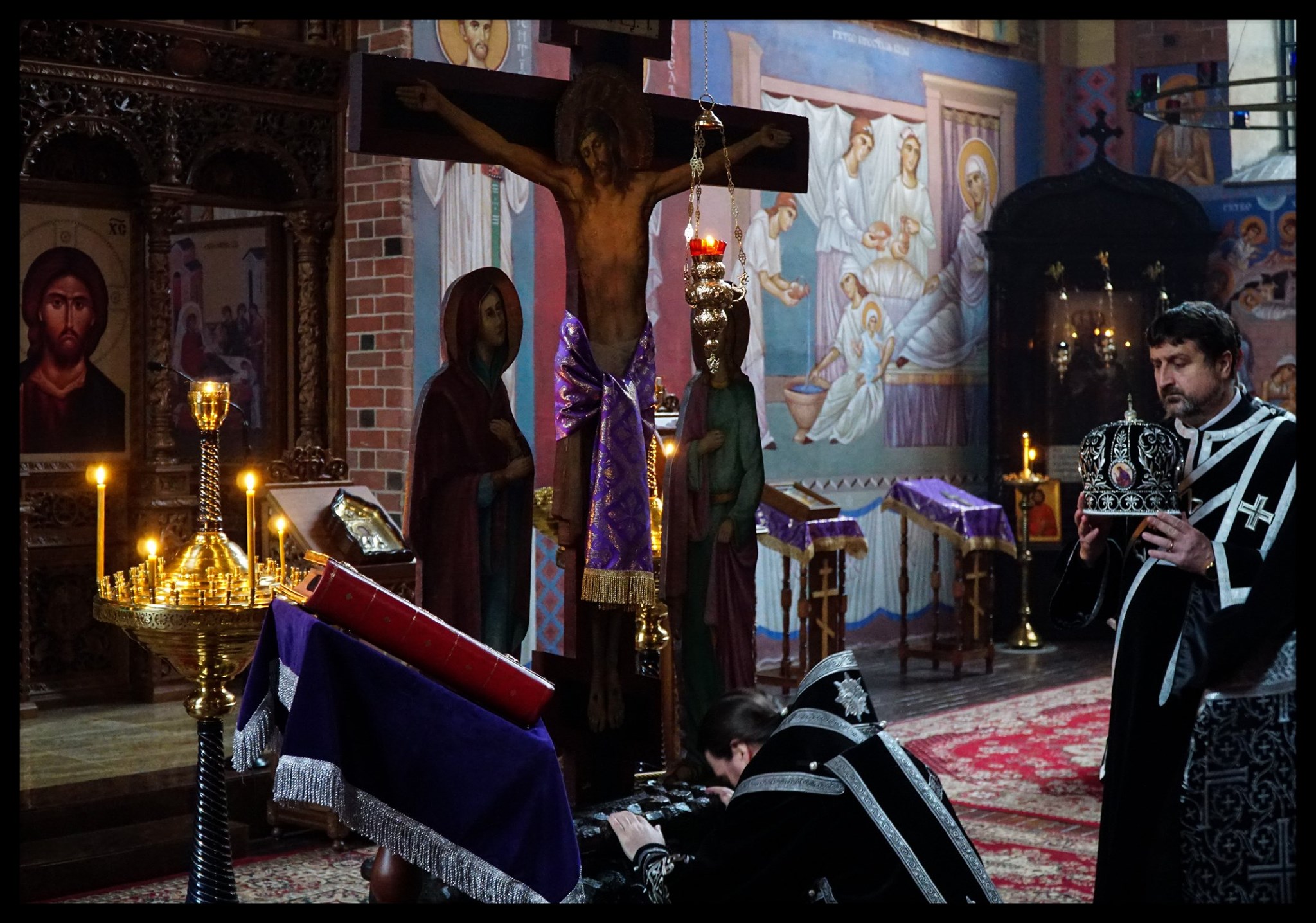 Po zakończeniu nabożeństwa wierni, w ciszy i skupieniu podchodzili do stojącego na środku Cerkwi Ukrzyżowania, aby w milczeniu pokłonić się strasznemu cudowi - Bogu, który przyszedł umrzeć dla zbawienia zbuntowanych przeciwko Niemu ludzi.