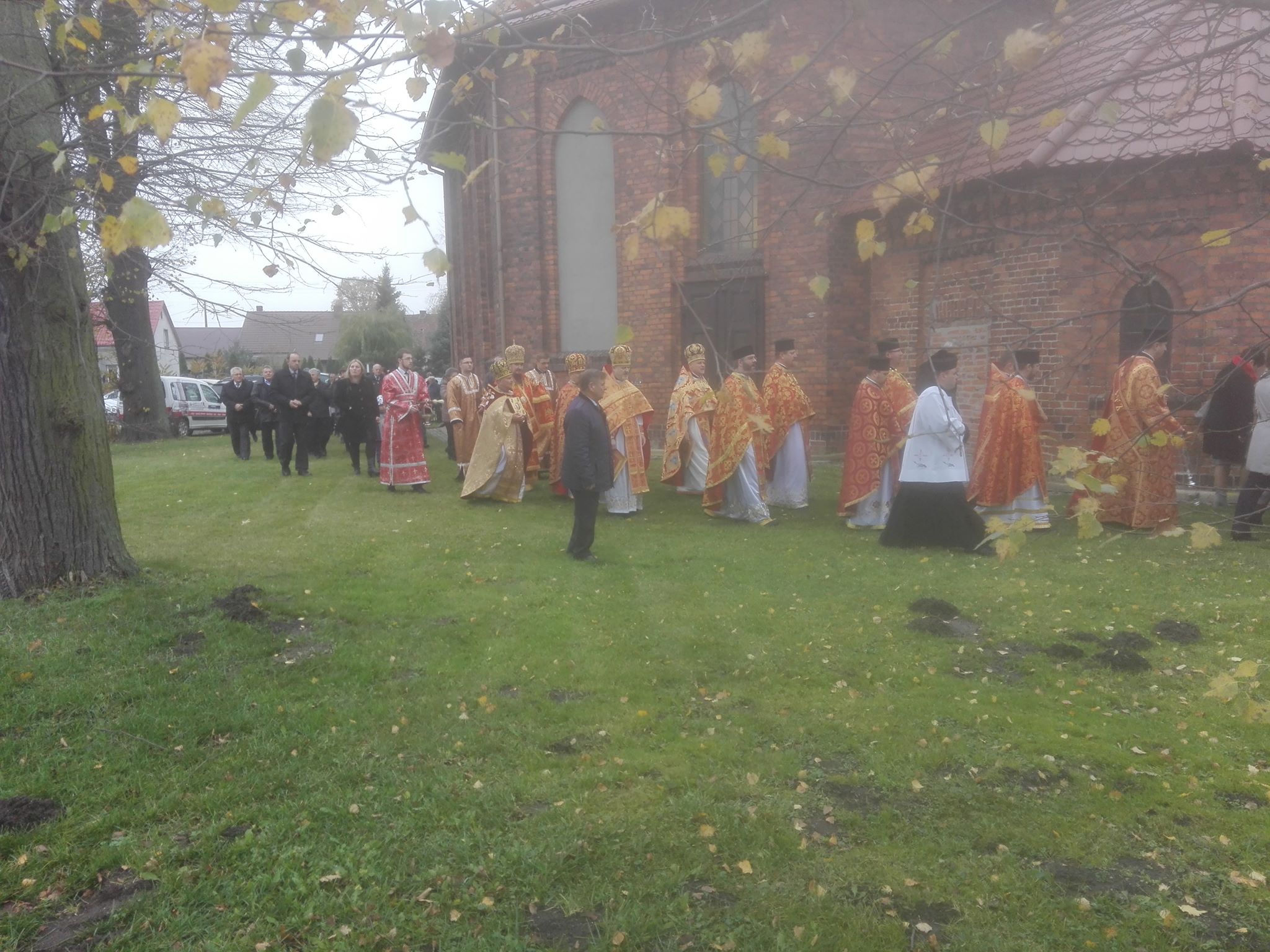 Po zakończeniu nabożeństwa odbyła się uroczysta procesja wokół świątyni, w trakcie której Jego Ekscelencja Arcybiskup Jerzy dokonał poświęcenia pamiątkowej tablicy upamiętniającej 70 rocznicę akcji „Wisła”, ludności przymusowo deportowanej w 1947r. z terenów Podkarpacia na Ziemie Odzyskane. Ekscelencja, w słowie skierowanym do zgromadzonych podkreślił rolę i znaczenie pokolenia tych ludzi, którzy po przesiedleniu na ziemie zachodnie odbudowywali własną tożsamość. Nie zważając na przeciwności losu, w pierwszej kolejności starali się organizować i budować społeczności parafialne.