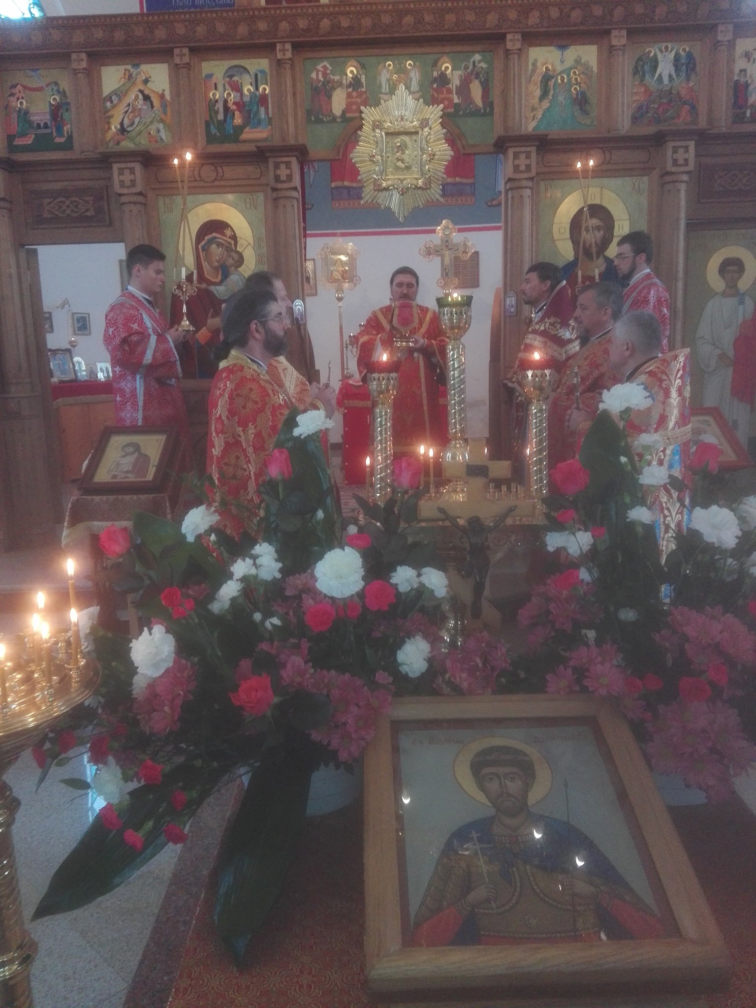 Świąteczną homilię wygłosił ks. Sławomir Sorokanycz, nawiązując do pamięci golgoty łemkowskiego narodu, przesiedleńczej akcji „Wisła” z 1947r., skierował myśli do życia świętego męczennika Dymitra Sołuńskiego, jako wzoru do naśladowania, przykładu wielkiej, niezłomnej wiary i powołania do chrześcijańskiego życia. Modlitewny nastrój podczas nabożeństwa wypełniał śpiewem chór parafialny.