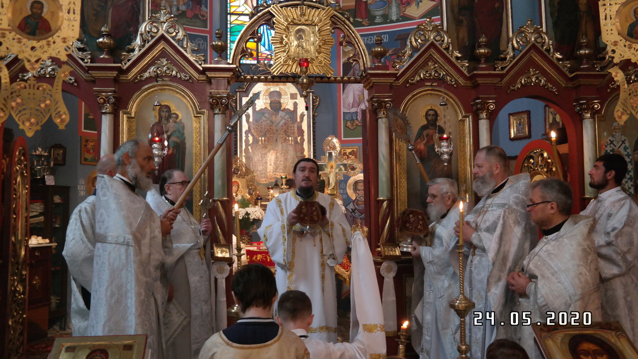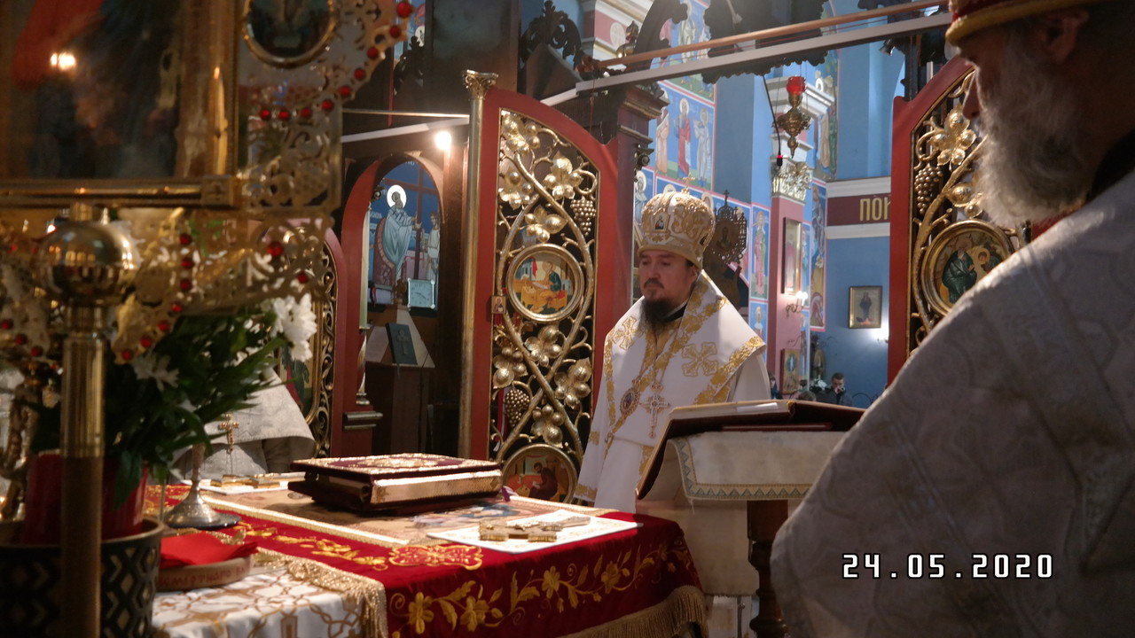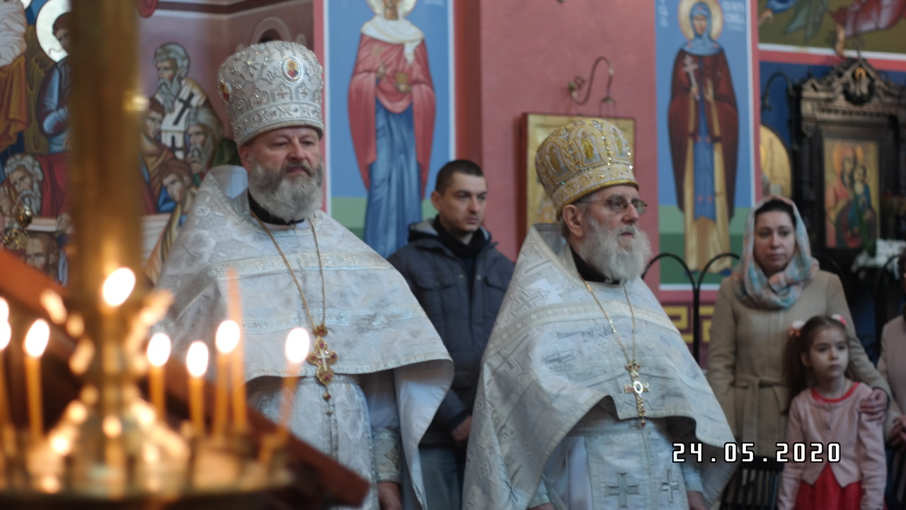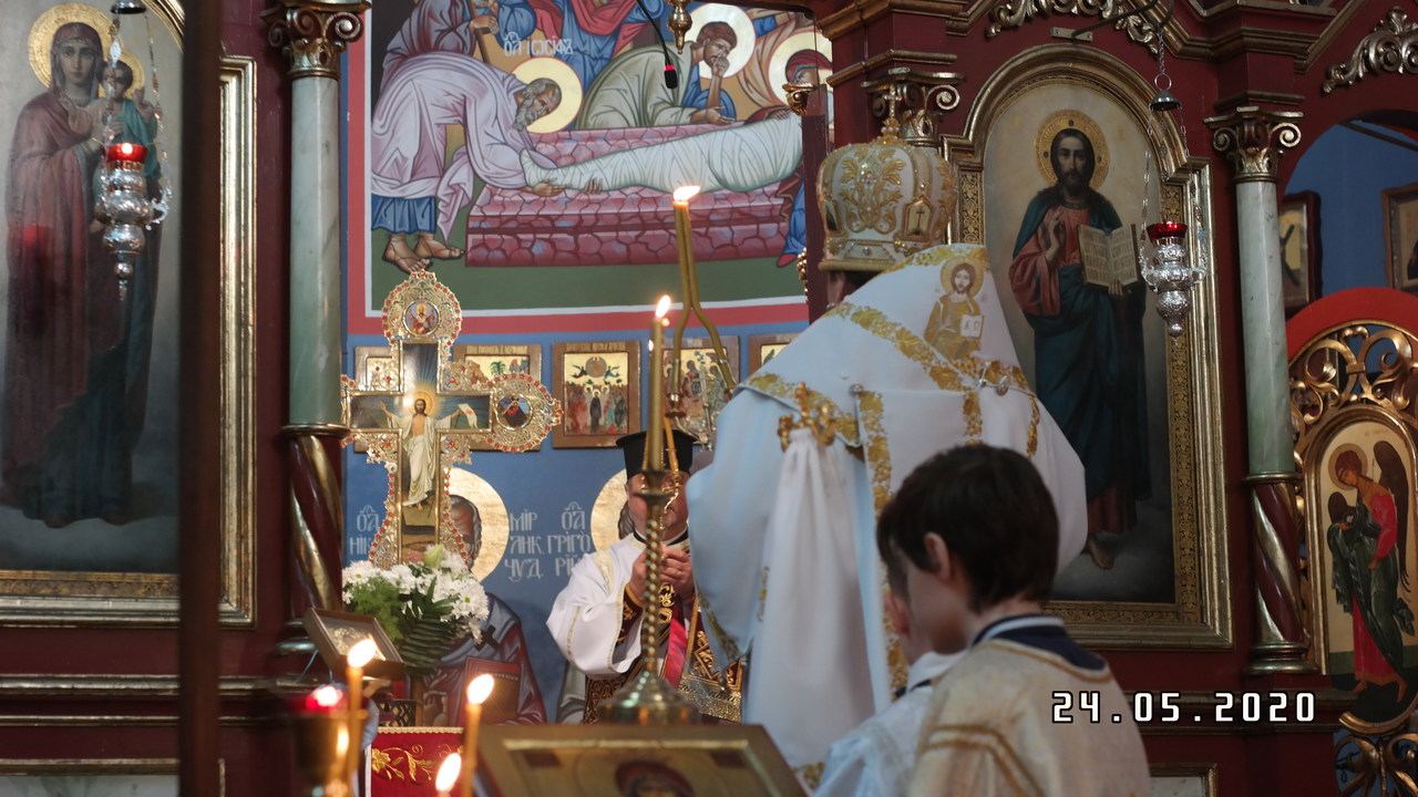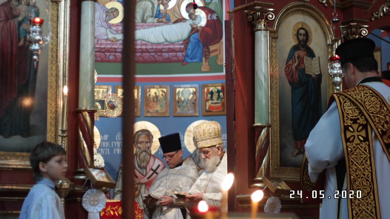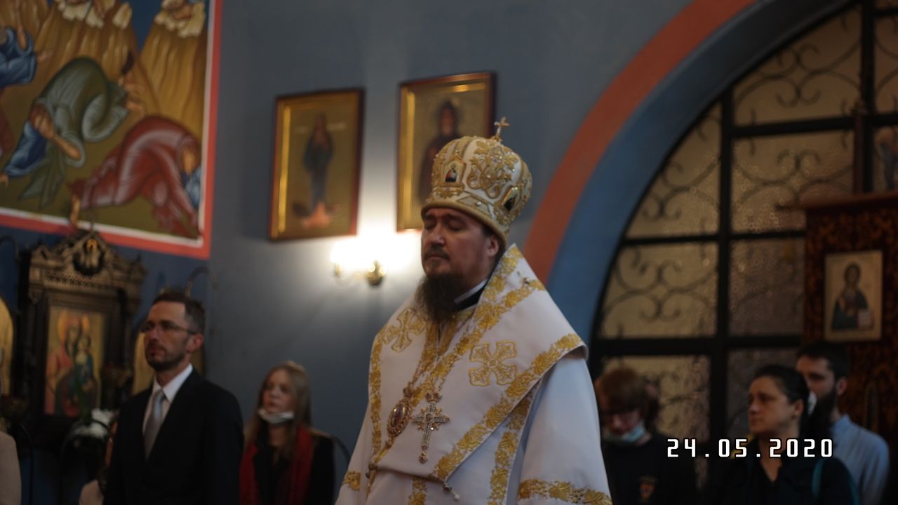U wejścia do świątyni, licznie zgromadzone dzieci, wraz ze starostą parafii ppłk Edwardem Dziewońskim, powitali Arcypasterza, którego następnie proboszcz parafii ks. mitrat płk rez. dr Eugeniusz Bójko, poprosił o przewodniczenie świątecznej Liturgii dla zgromadzonych wiernych, jak i w intencji nieobecnych z powodu trwającej epidemii.