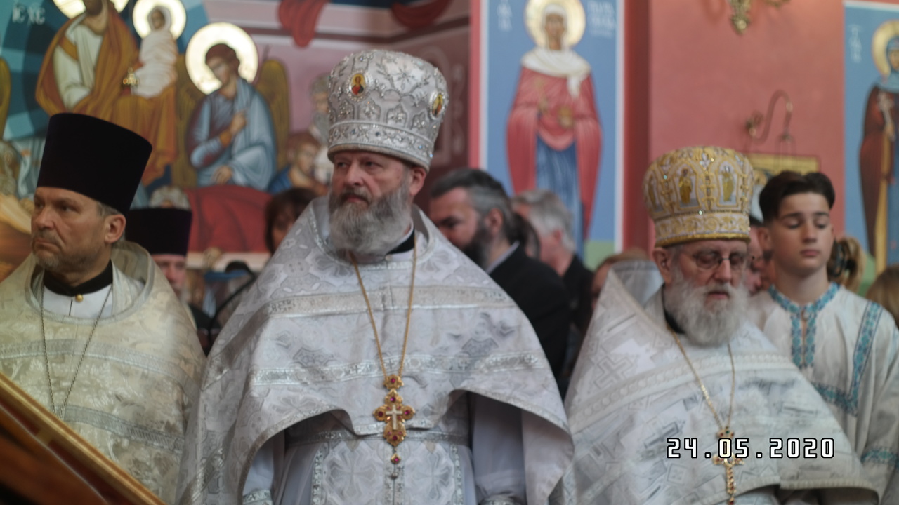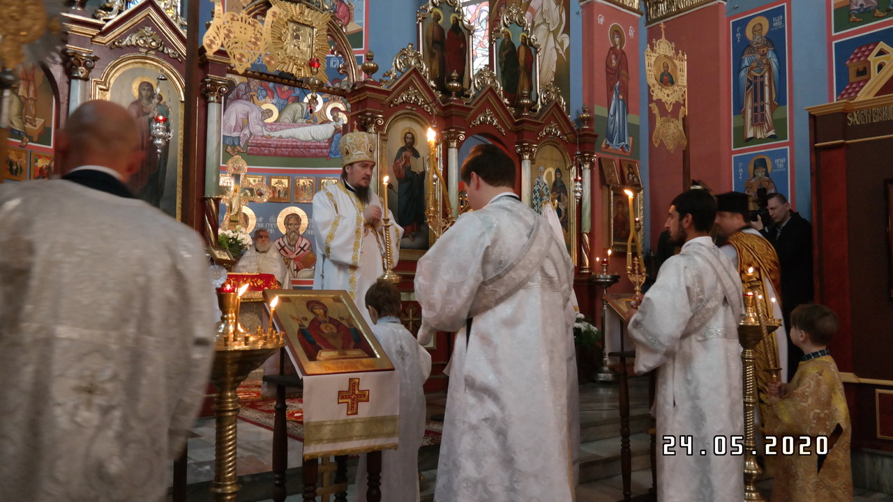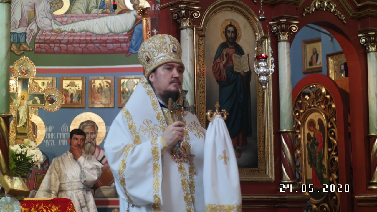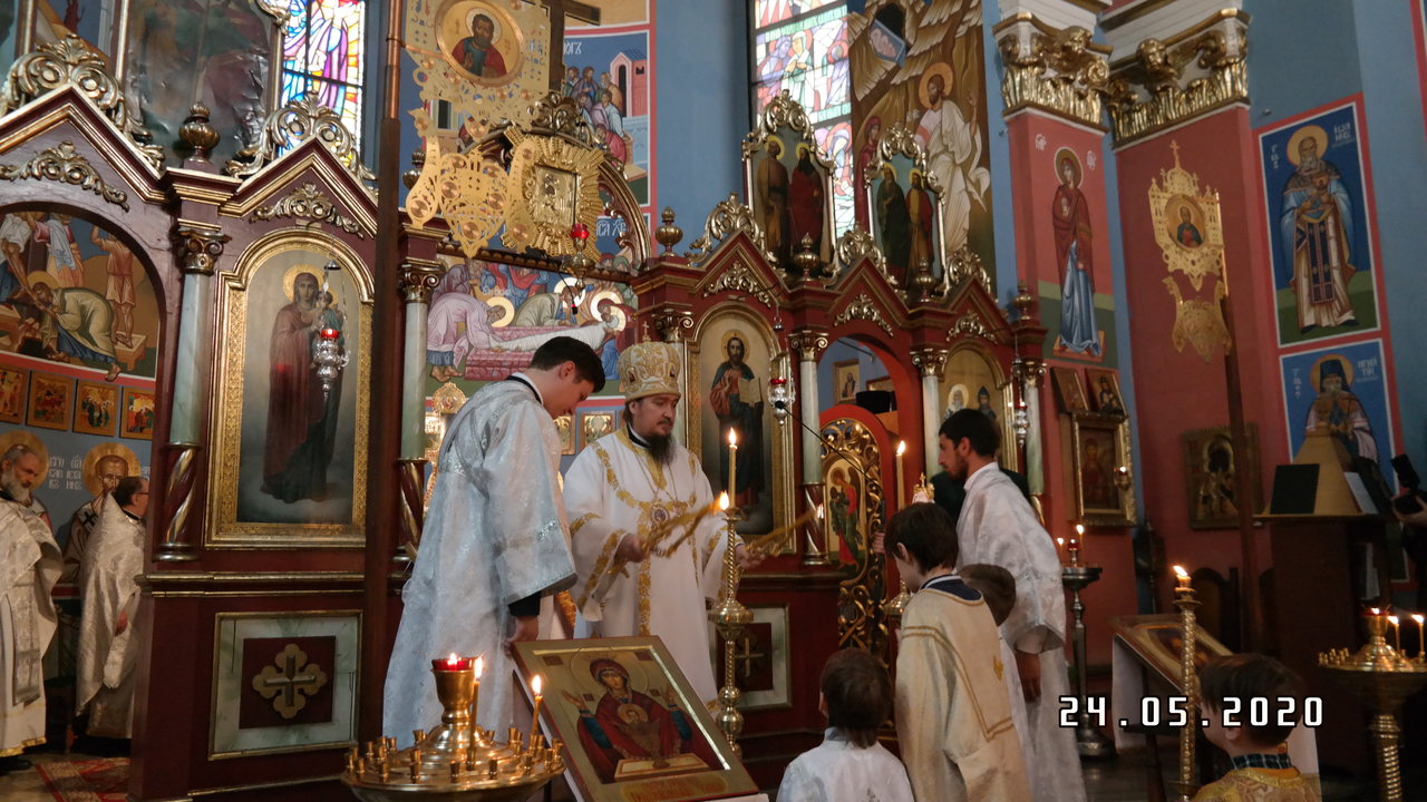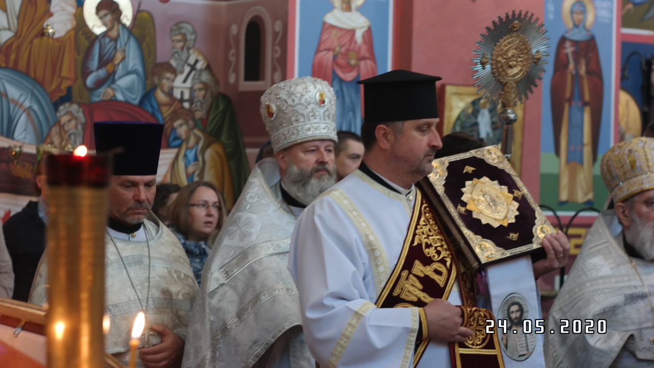 U wejścia do świątyni, licznie zgromadzone dzieci, wraz ze starostą parafii ppłk Edwardem Dziewońskim, powitali Arcypasterza, którego następnie proboszcz parafii ks. mitrat płk rez. dr Eugeniusz Bójko, poprosił o przewodniczenie świątecznej Liturgii dla zgromadzonych wiernych, jak i w intencji nieobecnych z powodu trwającej epidemii.