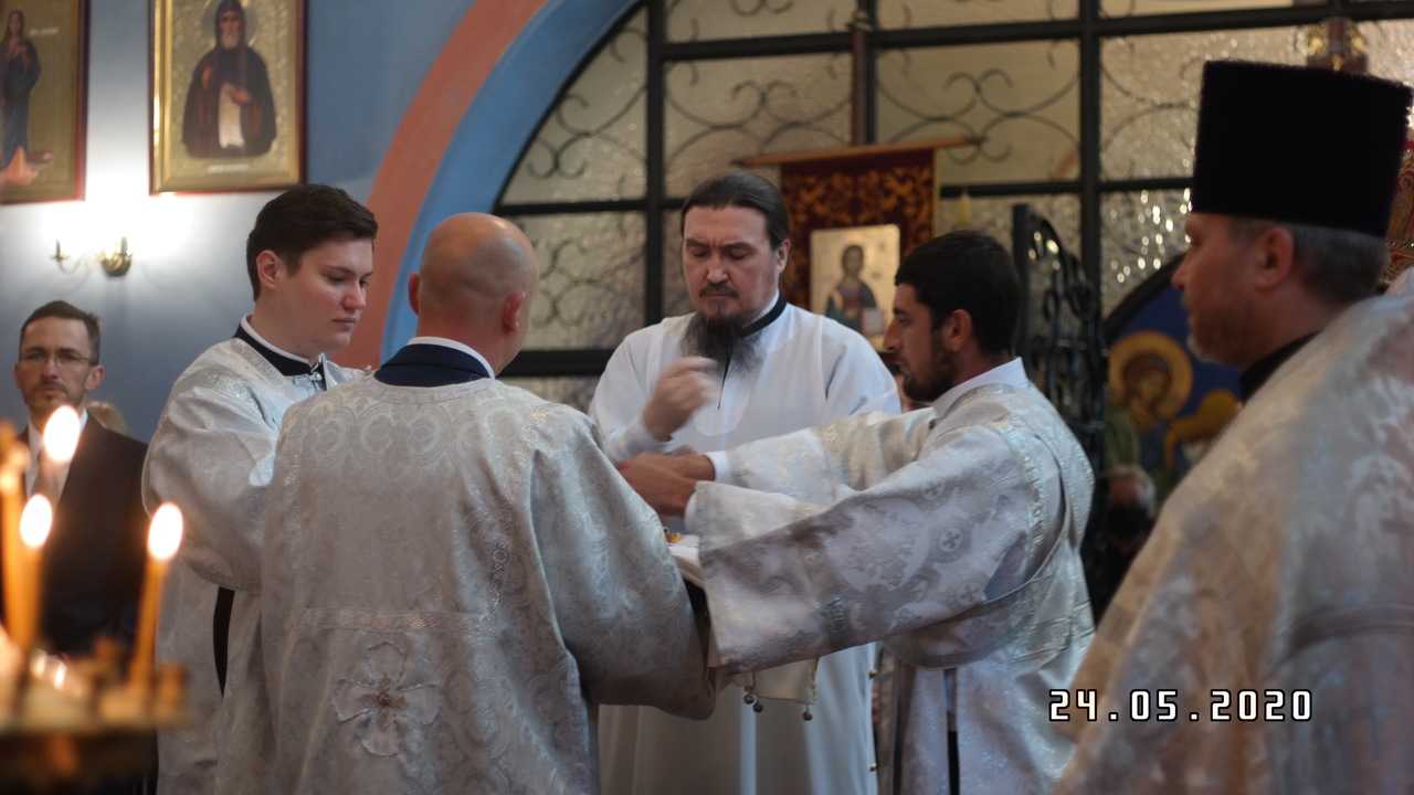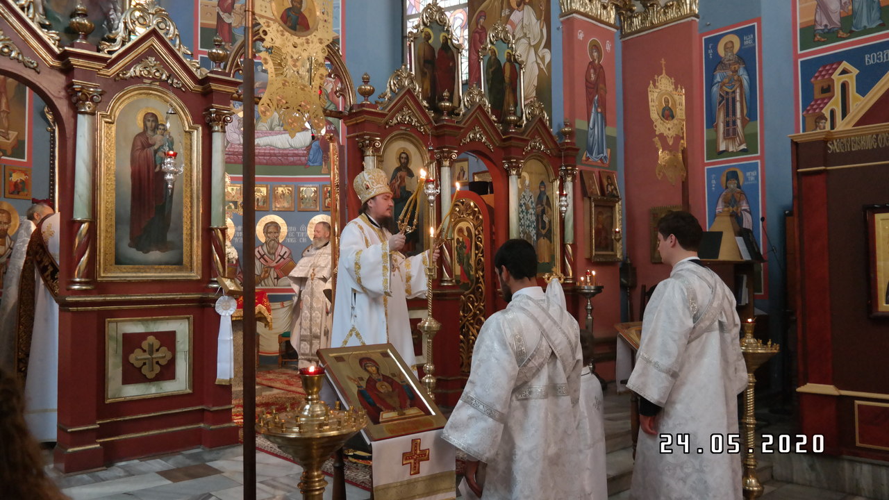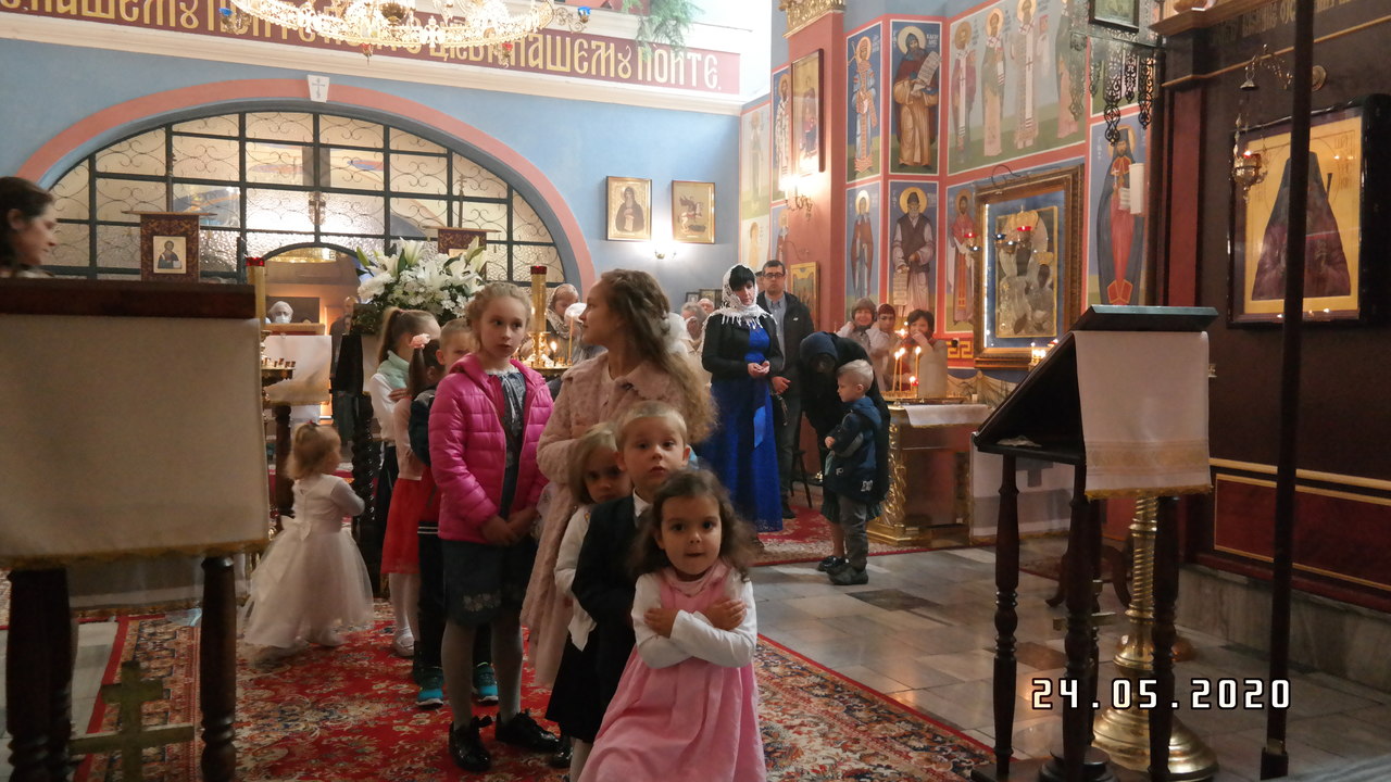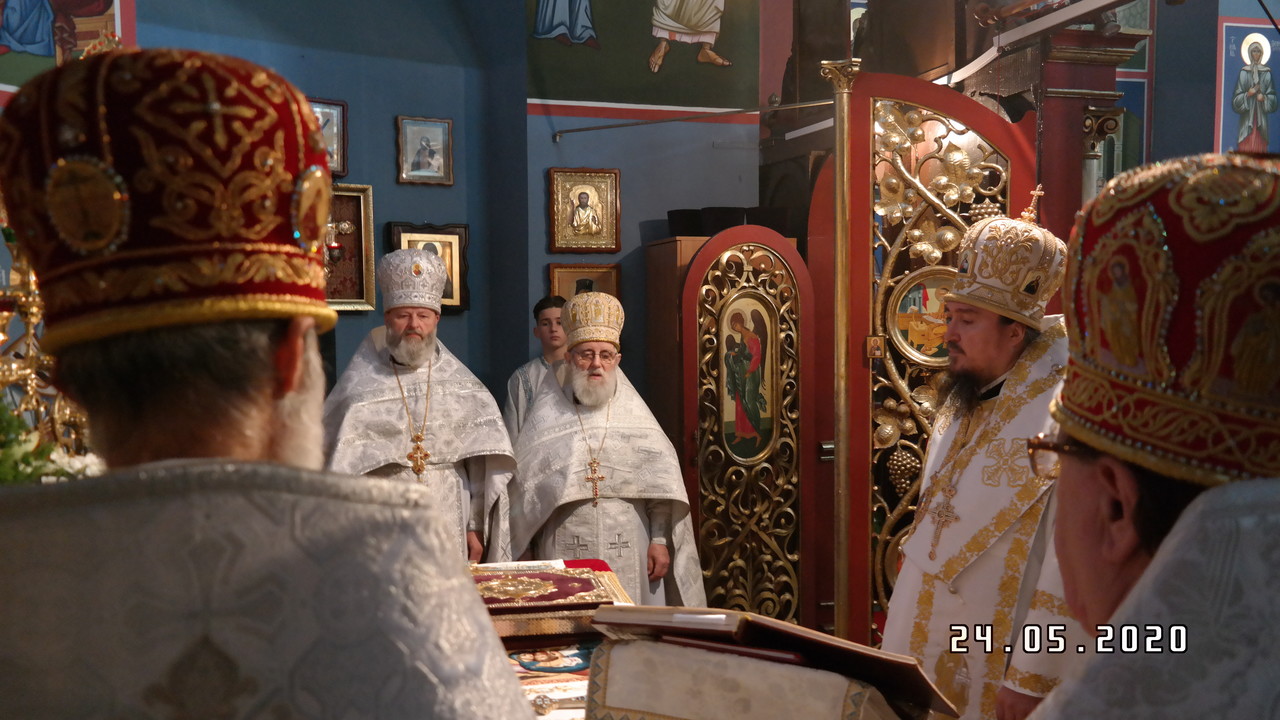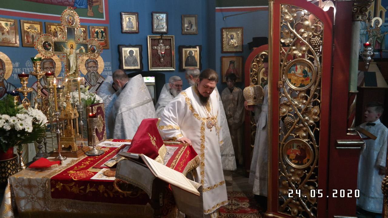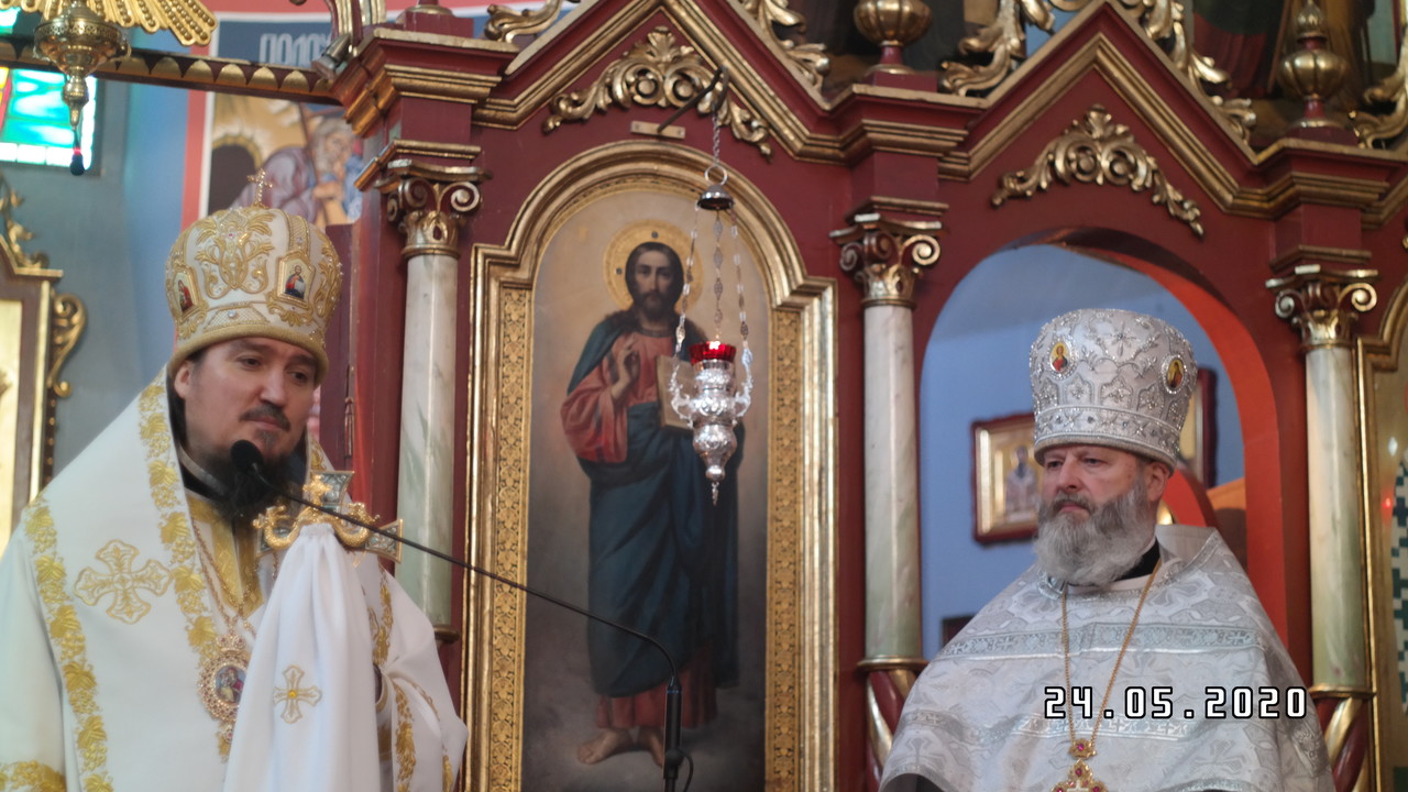 U wejścia do świątyni, licznie zgromadzone dzieci, wraz ze starostą parafii ppłk Edwardem Dziewońskim, powitali Arcypasterza, którego następnie proboszcz parafii ks. mitrat płk rez. dr Eugeniusz Bójko, poprosił o przewodniczenie świątecznej Liturgii dla zgromadzonych wiernych, jak i w intencji nieobecnych z powodu trwającej epidemii.