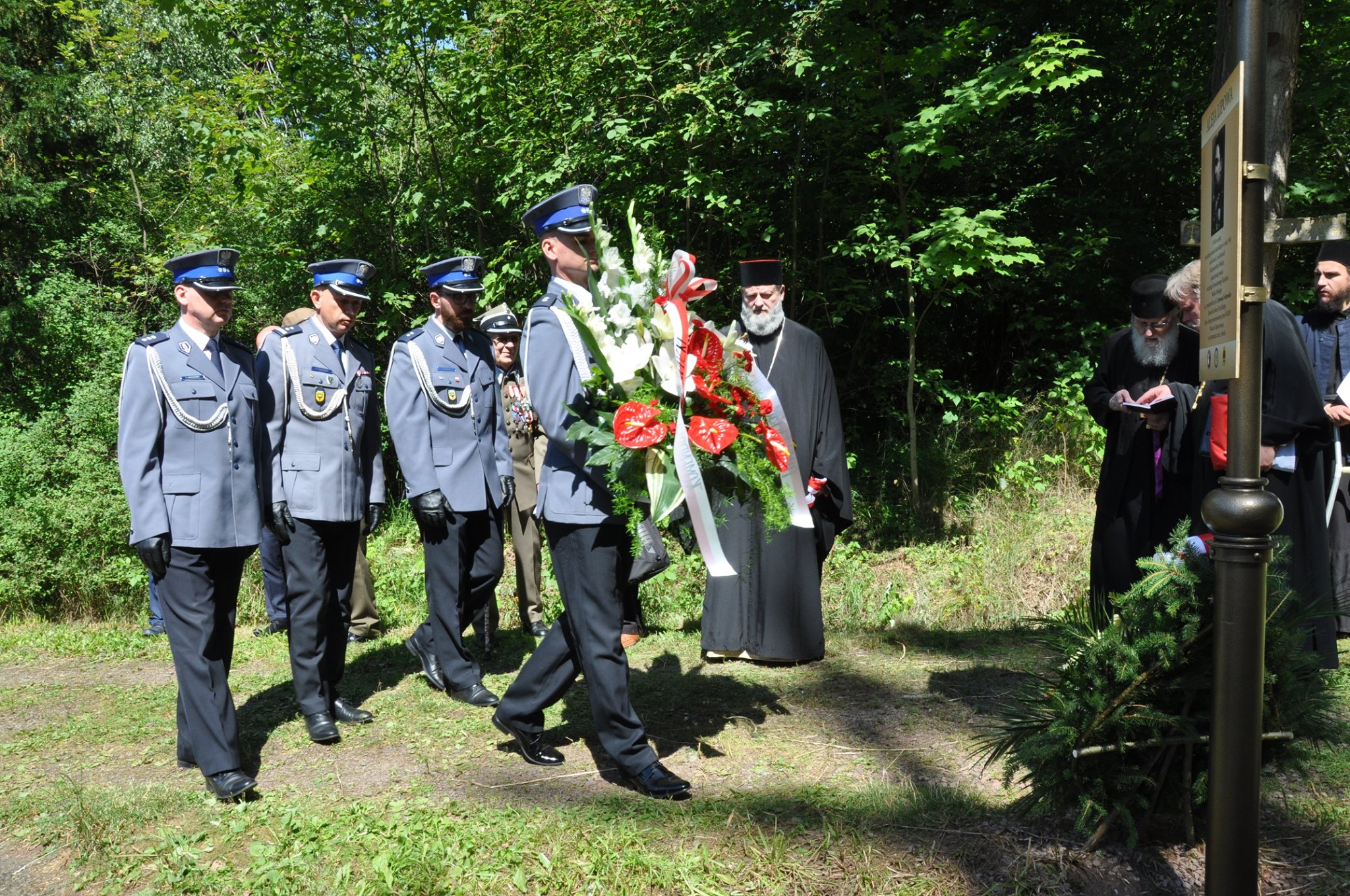 Po wysłuchaniu przemówienia i laudacji, odbyło się odsłonięcie pamiątkowej tablicy, którego dokonali trzej najwyżsi rangą oficerowie WP. Modlitwę żałobną wspominającą pomordowanych i poległych za Ojczyznę, wygłosił ks. mitrat Eugeniusz Cebulski, następnie złożono kwiaty. Zgromadzeni odwiedzili cerkiew św. Archanioła Michała, po czym zostali ugoszczeni obiadem przez Państwa Andreja i Ludmiłę Wowków, prowadzących Dom św. męcz. Elżbiety Fiodorownej.