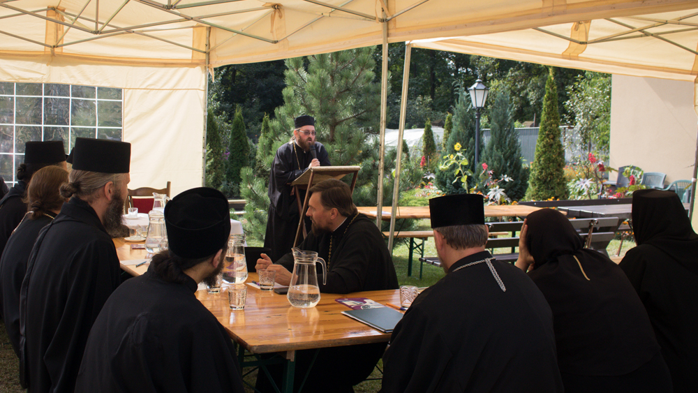 Następnie głos zabrał gospodarz – arcybiskup Abel, który jeszcze raz powitał zebranych i podkreślił fakt, że temat, który został podjęty na tegorocznym spotkaniu bardzo koresponduje z sytuacją powstałą w wyniku epidemii, w której przyszło nam żyć. Hierarcha zaznaczył też, iż mimo trudnych i ciężkich czasów powinniśmy się cieszyć, że nasz monastycyzm się rozwija i życzył wszystkim, by owo spotkanie przyniosło duchowe owoce. Władyka podkreślił, że bycie mnichem to szczególna posługa w Cerkwi, to życie w Bogu, które wymaga poważnego i duchowego wysiłku. Zaznaczył, także, że to właśnie mnisi powinni swoim życiem i przykładem dodawać otuchy i wsparcia ludziom.