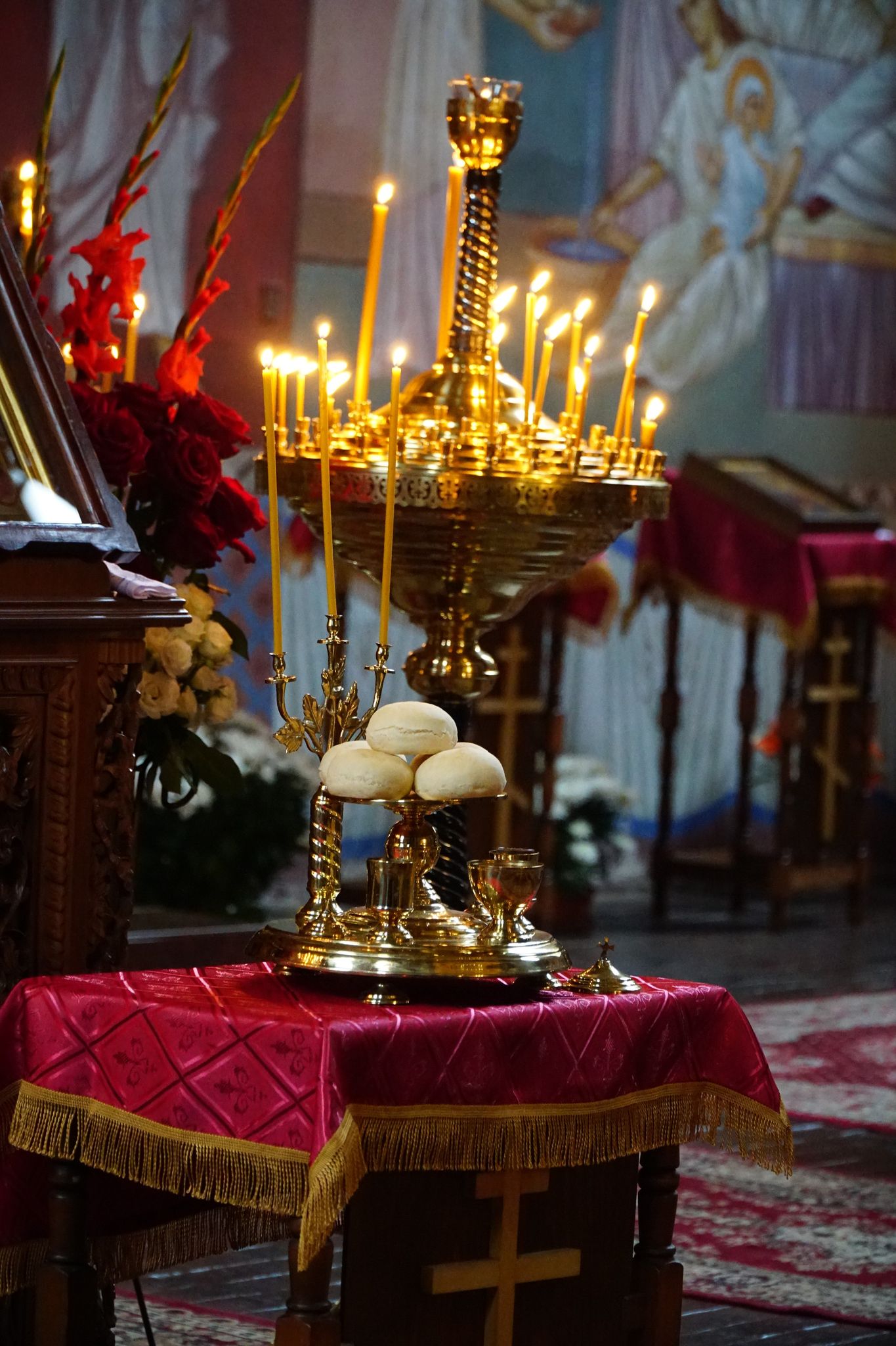 Zgodnie z liturgicznym porządkiem Cerkwi, w przeddzień święta przed rozpoczęciem wieczerni, przy śpiewie troparionu święta, upiększony żywymi kwiatami Krzyż, przenoszony jest procesyjnie z żertwiennika na prestoł, gdzie pozostaje do Wielkiej Doksologii. Przed Krzyżem umieszczana jest zapalona świeca.
