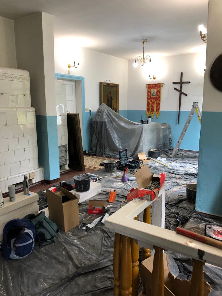 Kolejnego dnia prac remontowych na zaproszenie miejscowego proboszcza przebieg remontu wizytował ks. prot. mgr Jarosław Biryłko, Diecezjalny Konserwator Zabytków i chociaż nasza cerkiew zabytkiem nie jest to z ramienia Arcybiskupa Jerzego, ks. Jarosław nadzoruje i wspiera swoim doświadczeniem wszystkie remonty na terenie naszej Wrocławsko-Szczecińskiej Diecezji. Łobeska cerkiew usytuowana jest na parterze kamienicy i jest częścią wspólnoty mieszkaniowej. Chociaż została powołana w 1948 r. do dnia dzisiejszego nie były prowadzone w jej wnętrzu większe prace remontowe. Parafialna społeczność Łobza jest kilkuosobową parafią, w większości ludzi starszych, jednakże Ich wkład w życie tutejszej społeczności i rozwoju kultywowania Świętego Prawosławia spowodował podjęcie decyzji o trudnym wyzwaniu. Trudnym ze względu na to, że jesteśmy częścią wspólnoty mieszkaniowej i nasze możliwości o składanie wniosków do Instytucji Państwowych są bardzo ograniczone, bo nie jesteśmy zabytkiem, a większość budynku i przynależnego placu pozostaje częścią wspólną. Nie przeszkadza nam to jednak sprawować św. Liturgii i nieść pomoc tym, którzy tego potrzebują.