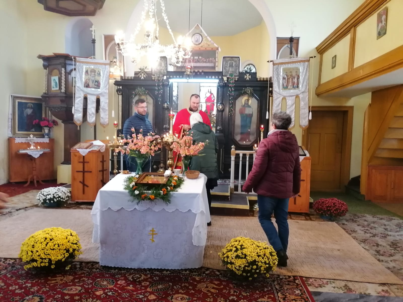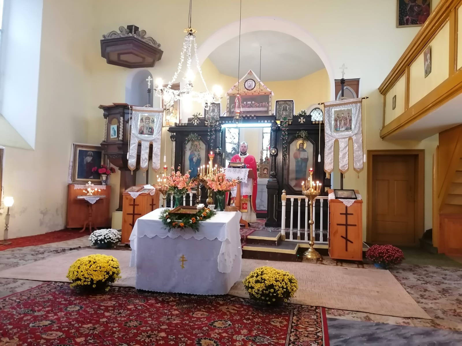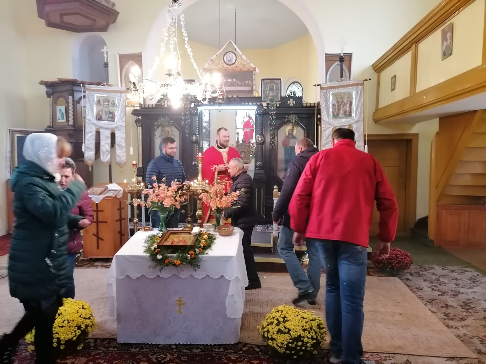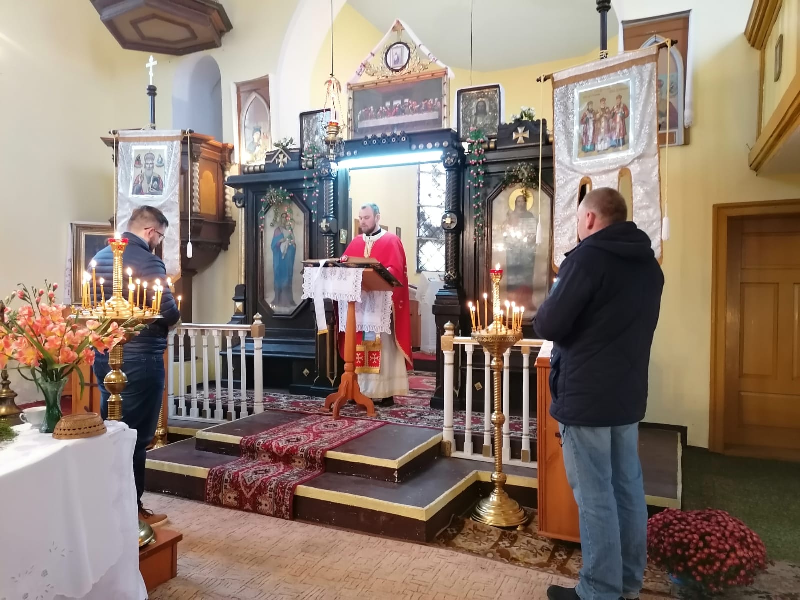 W słowie skierowanym do wiernych ks. Habura zwrócił uwagę na to, co łączy wszystkich chrześcijan ze św. Dymitrem. Greckie słowo męczennik- μάρτυς (mártus) oznacza dosłownie “świadka”, a więc tego kto swoim życiem świadczy o tym, że jest uczniem Chrystusa. Świadkiem - dającym świadectwo swoją postawą można być na wiele sposobów. Jednym z nich jest trwanie, pomimo wszelkich przeciwności, przy Chrystusie. Taka postawa jest szczególnie mocno widoczna w małych parafiach, jak chociażby Wołów. Często zdarza się, że społeczność wiernych czuje się zasmucona tym, że parafia jest nieliczna, że boryka się z problemami. Należy jednak koniecznie pamiętać o tym, że pomimo kłopotów, niedostatków, małej ilości wiernych i wszelkich innych przeciwności, ta parafia trwa w wierze - daje świadectwo. Nasza diecezja widziała już wiele parafii, które były na skraju zamknięcia, a jednak dzięki świadectwu wiary odrodziły się i istnieją do dziś. Gdyby nie wytrwałość wiernych, gdyby nie ich świadectwo i poświęcenie, w tych miejscowościach nie rozbrzmiewałby już dziś dźwięk prawosławnej modlitwy. Wielkim dziełem jest zbudować Cerkiew, ale równie wielkim, jeśli nie nawet większym, jest nie dopuścić, aby ta Cerkiew przestała istnieć. To jest właśnie świadectwo - trwanie w wierze pomimo przeciwności, które łączy nas ze św. Dymitrem, a co szczególnie mocno widać i czuć w Starym Wołowie.