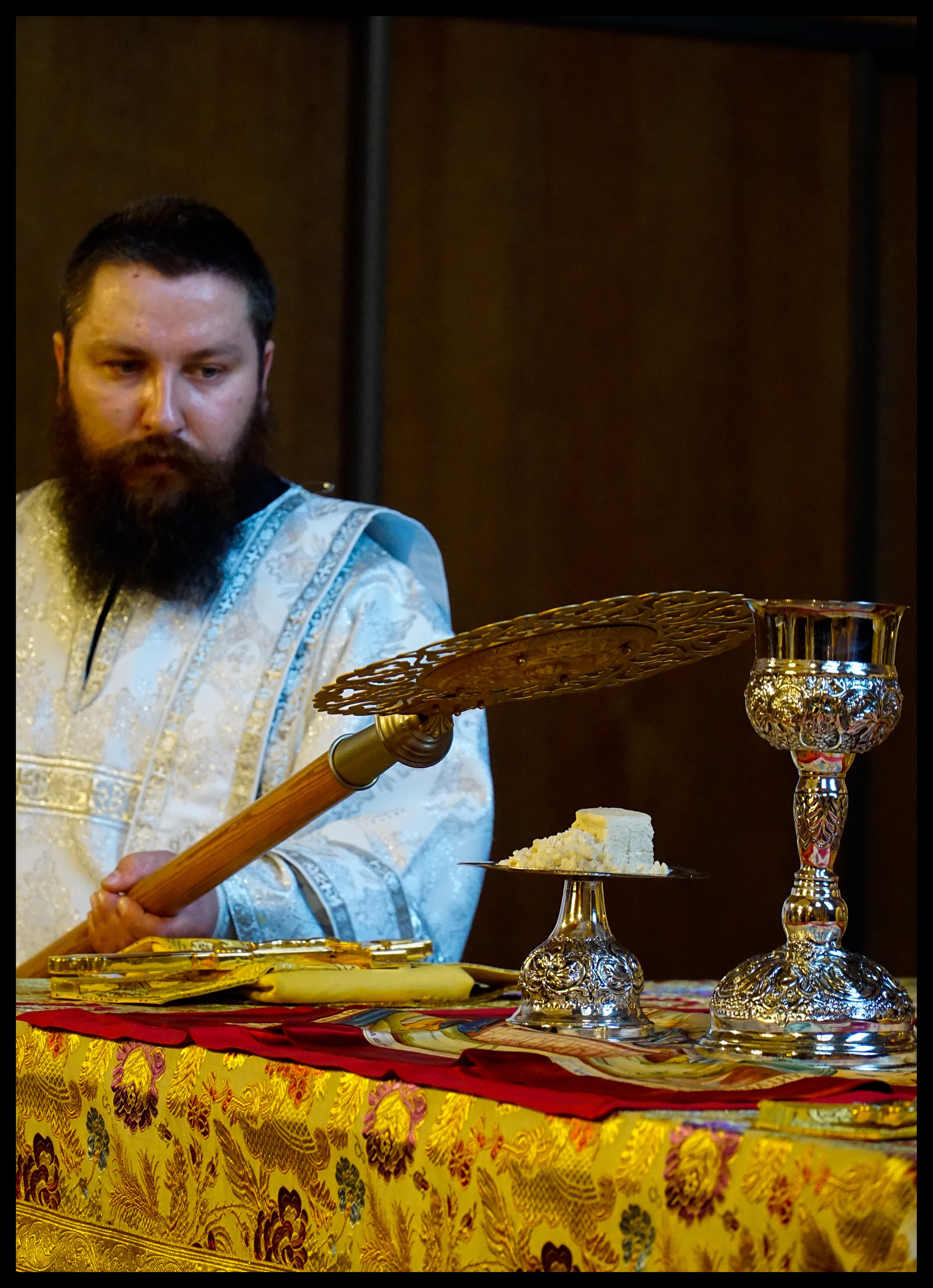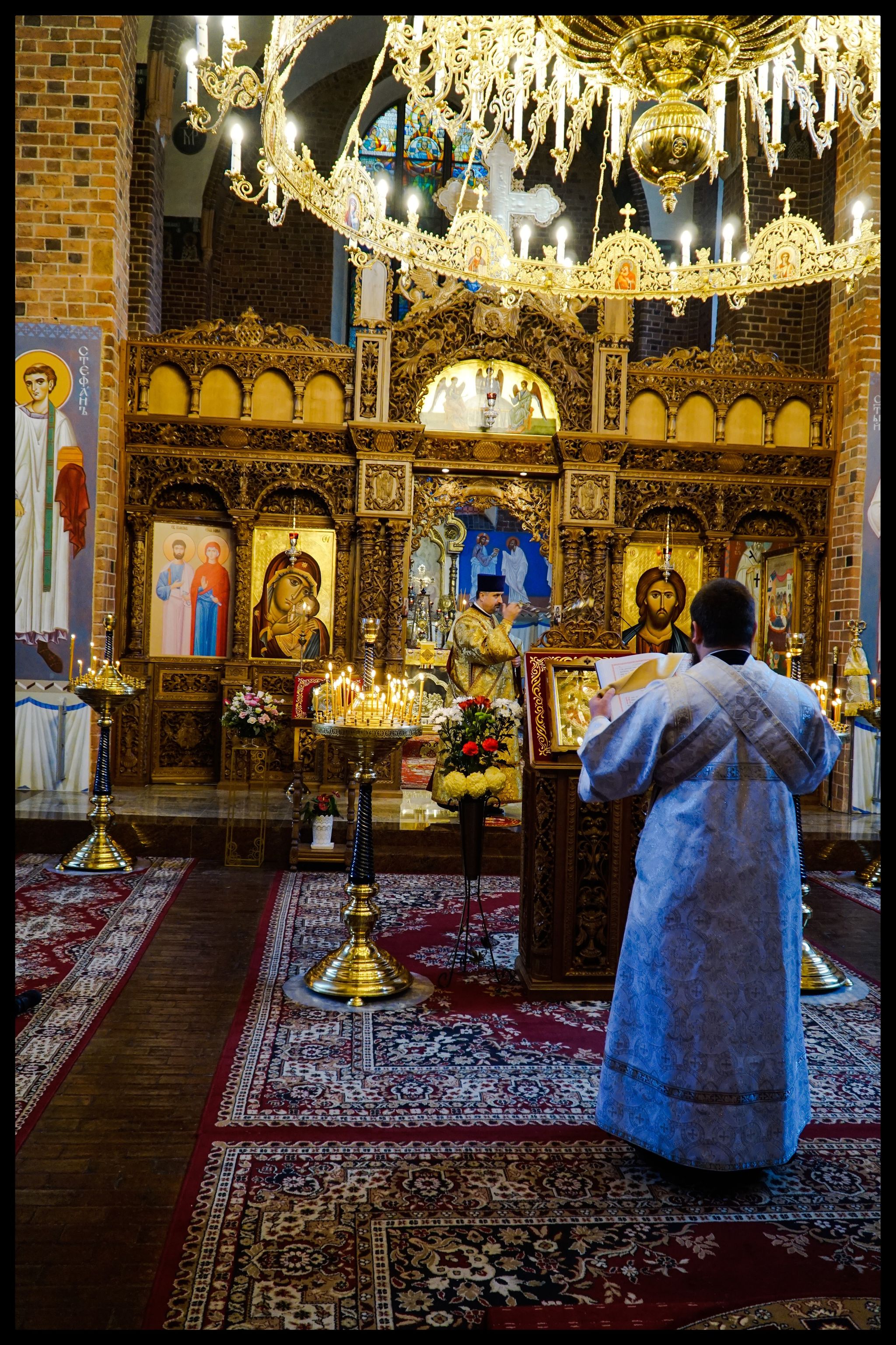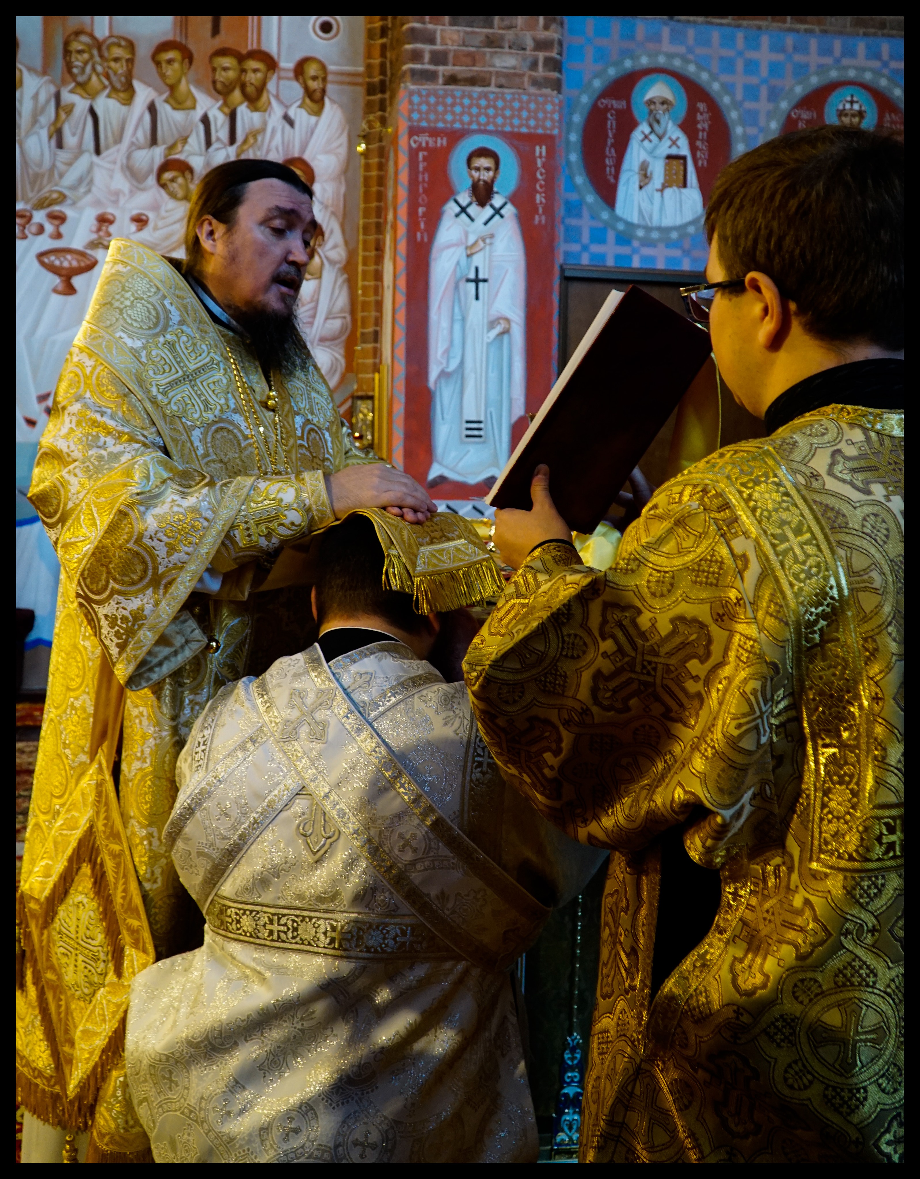 “Święcenia diakońskie odbywają się podczas św. Liturgii przed ektenią błagalną po kanonie eucharystycznym. Subdiakoni prowadzą kandydata ze środka cerkwi, w otwartych, królewskich wrotach przejmuje go protodiakon. Biskup siedzący po lewej stronie ołtarza trzykrotnie błogosławi go. Następnie wyświęcany trzykrotnie oprowadzany jest wokół ołtarza, całuje jego rogi i rękę biskupa, natomiast chór śpiewa 3 pieśni “Święci męczennicy” (Swiatii muczenicy), “Chwała Tobie, Chryste Boże” (Sława Tiebie, Christie Boże) i “Wesel się, Izajaszu” (Isaije likuj). Po trzykrotnym pokłonie przed ołtarzem wyświęcany klęka, kładąc ręce na ołtarz, biskup nakrywa jego głowę omoforionem i wygłasza sakramentalne słowa “Boska łaska, zawsze chorych uzdrawiająca i cierpiących niedostatek uzupełniająca, przez nasze ręce okazuje najpobożniejszego subdiakona N., diakonem, pomódlmy się przeto za niego, aby zstąpiła nań łaska Najświętszego Ducha. (Bożestwiennaja btahodat wsiegda niemoszcznaja wraczujuszczi i oskudiewajuszczaja wospołniajuszczi proroczestwujet … błagogowiejnoho ipodiakona wo diakona, pomolimsia ubo o niem da priidiet na nieho błtihodat wsieswiataho Ducha). Po odczytaniu przez biskupa stosownych modlitw wkłada on na wyświęcanego szaty diakońskie, wygłaszając po grecku “aksios” to znaczy “godzien” Nowo wyświęconemu diakonowi wręcza się ripidę i aż do czasu Komunii kapłanów wachluje on nią nad św. Darami. Komunię Świętą przyjmuje on jako pierwszy wśród diakonów i zwykle wygłasza krótką końcową ektenię” - ks. Konstanty Bondaruk.