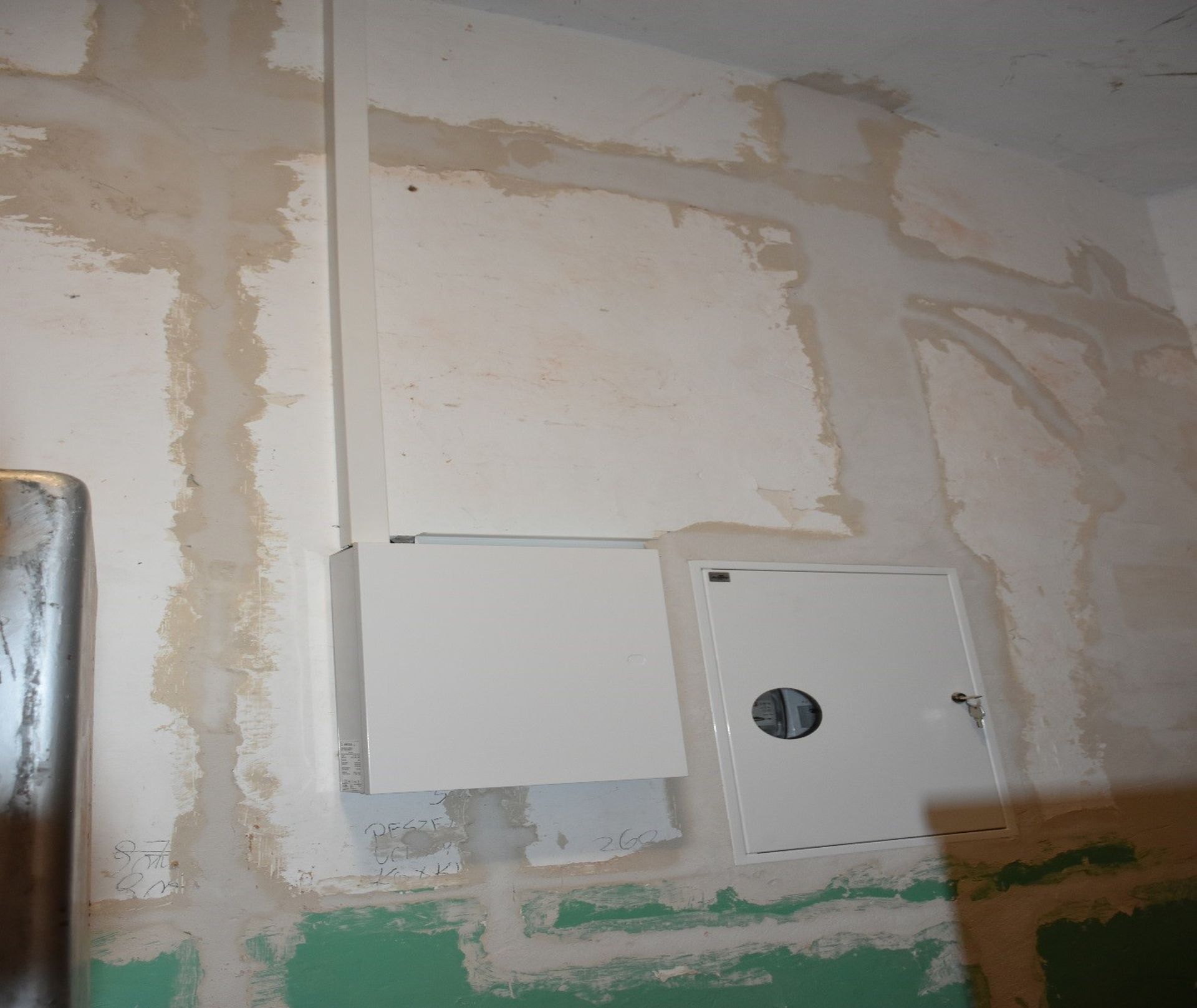 Prace wewnętrzne: remont uszkodzonych belek stropowych wraz ze stropem drewnianym, wymianę instalacji elektrycznej, skucie uszkodzonych tynków, zszycia murów, remont drabin i podestów na wieży.