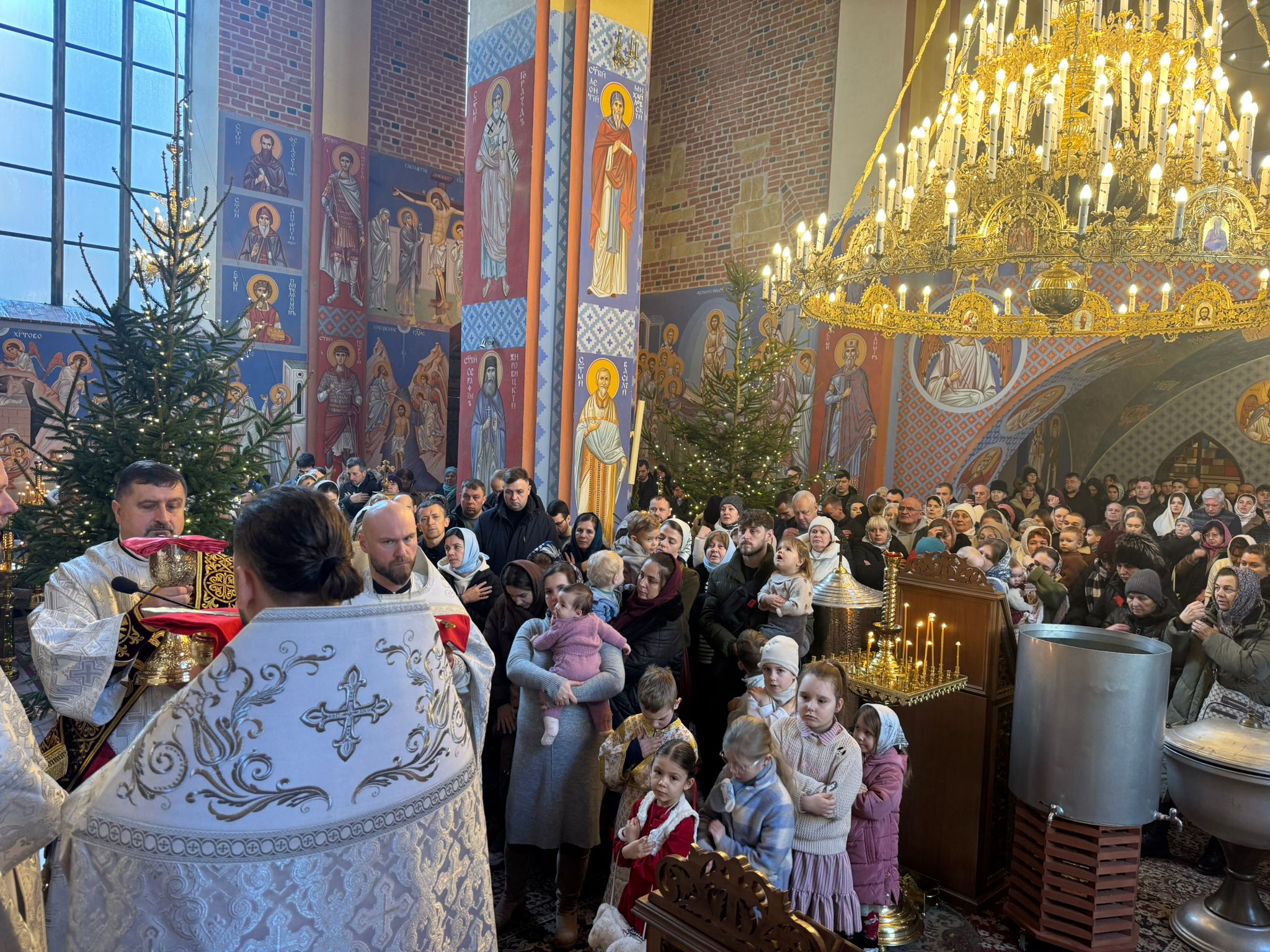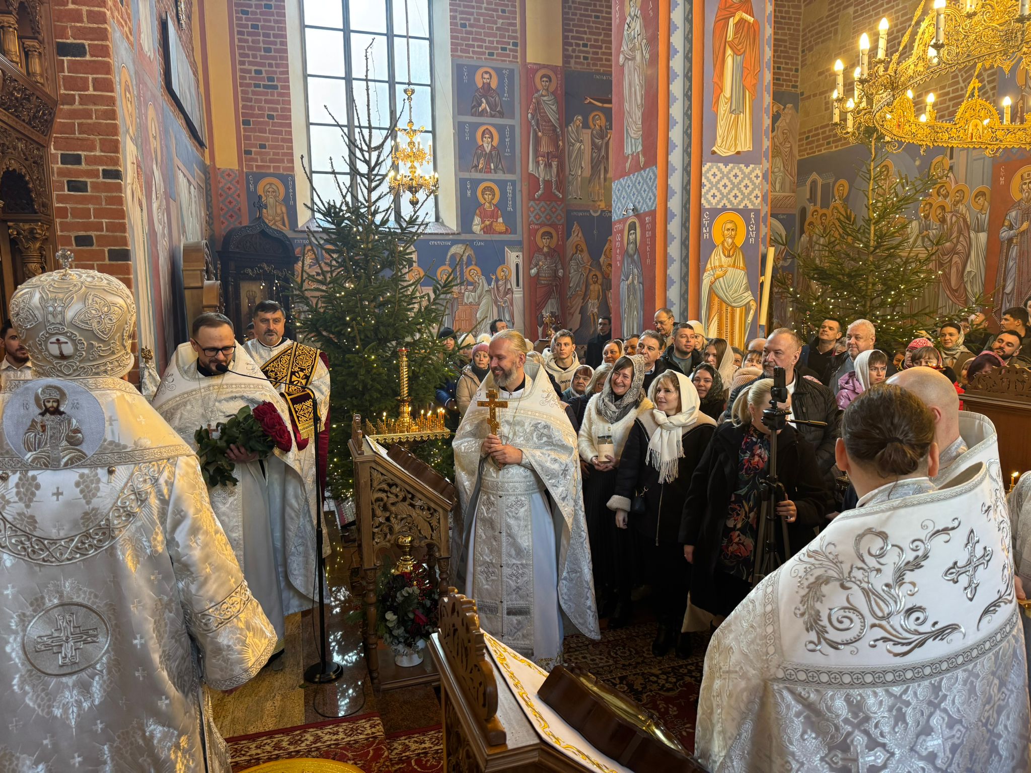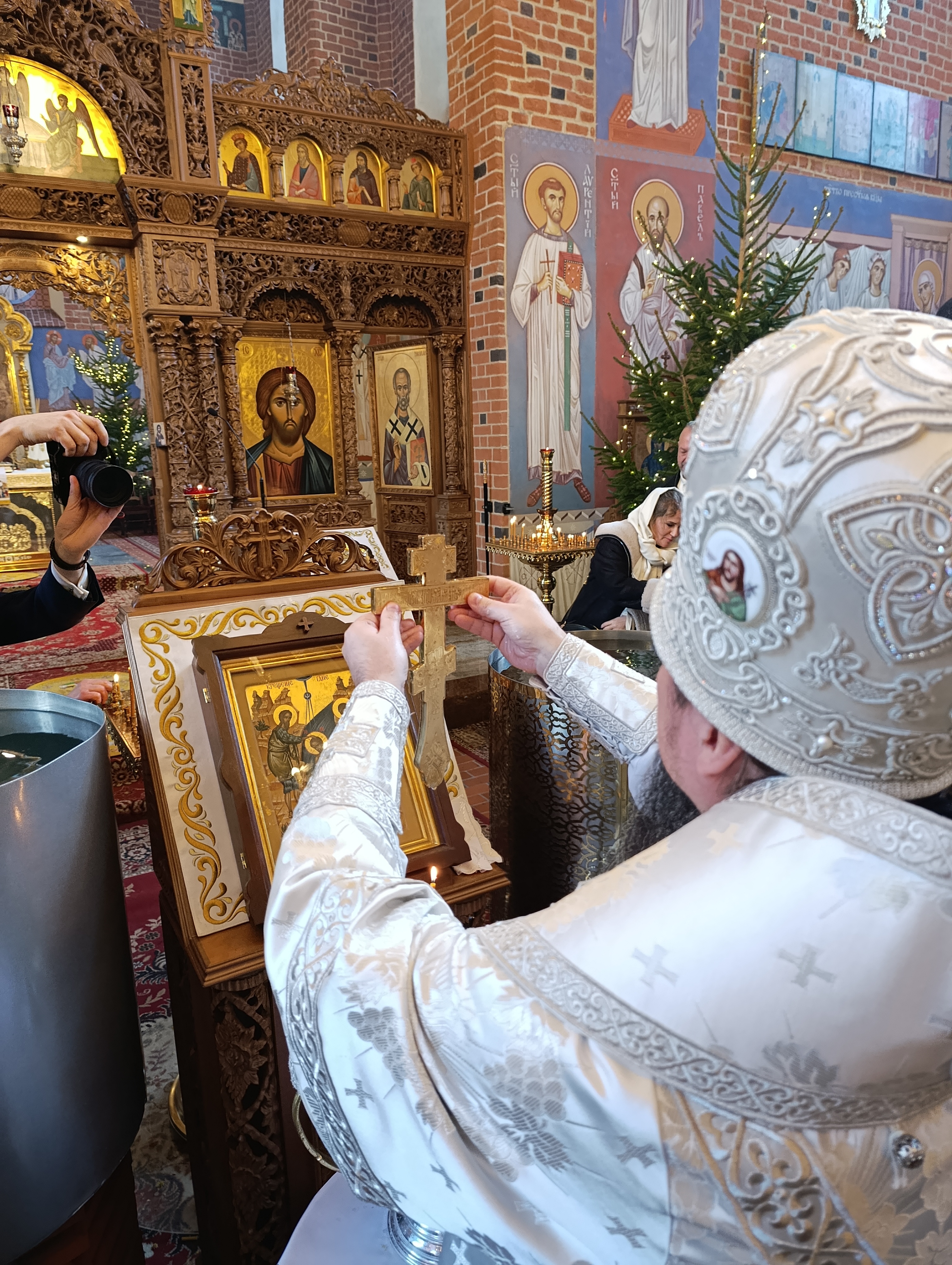 Po zakończeniu Świętej Liturgii miał miejsce obrzęd Wielkiego Oświęcenia Wody. W trakcie Oświęcenia czytane są teksty starotestamentowych proroctw, specjalne modlitwy oraz ektenie, w których wyrażana jest prośba o to, aby Bóg w swojej niezmierzonej miłości do człowieka zesłał z niebios Łaskę Świętego Ducha. Oświęcona w ten sposób woda staje się Wielką Hagiasmą, specjalną wodą oświęcaną tylko i wyłącznie z okazji święta Chrztu Pańskiego. Po zakończeniu nabożeństw Władyka Jerzy jeszcze raz zwrócił się z pozdrowieniem do wiernych dziękując im za wspólną modlitwę. Następnie w związku z przypadającym wkrótce dniem niebiańskiego patrona Władyki - św. Jerzego Chozewity, ks. Adam Góralczuk w imieniu wiernych oraz duchowieństwa złożył Jego Ekscelencji imieninowe życzenia. Dziękując za arcypasterską służbę, modlitwę oraz duchową opiekę wręczył Władyce bukiet kwiatów a chór oraz wszyscy zgromadzeni zaśpiewali gromkie “Mnohaja leta”.